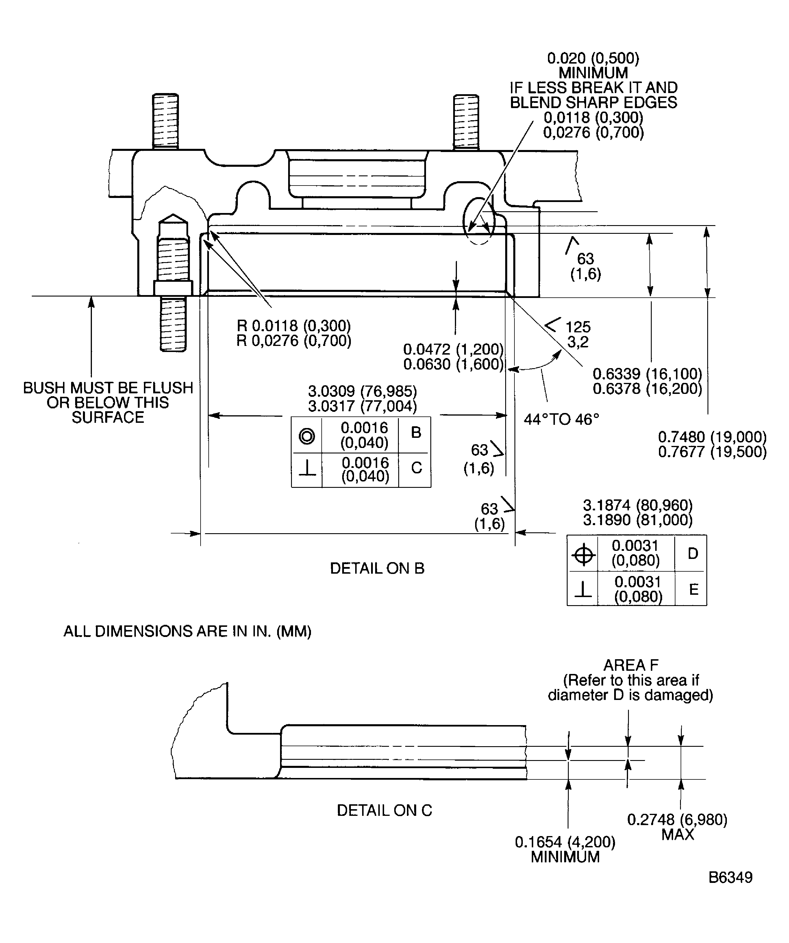 Give sufficient back-up support at bushing bore area, to prevent casing distortion when you install the bushing.