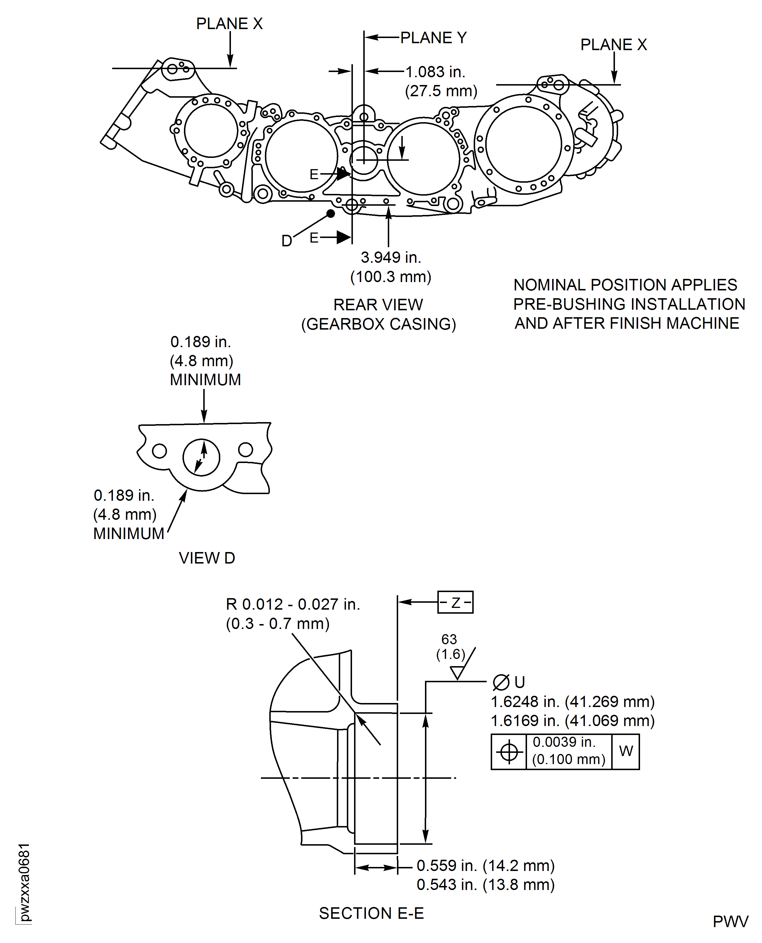 Machine the surface of the bushing flush to 0.005 in. (0.127 mm) below the surface of the Gearbox Casing.