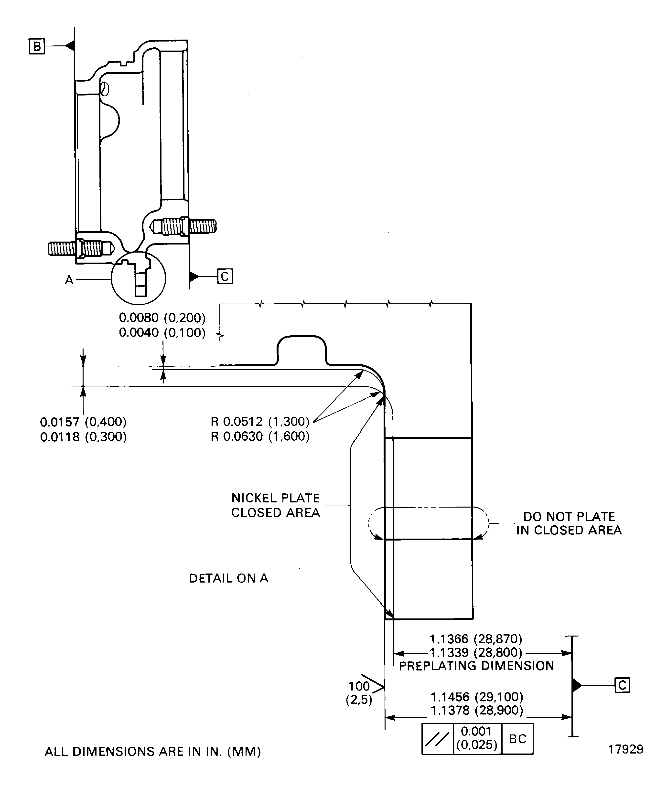 Plate to a sufficient thickness to permit the machining to the last dimensions. The plating out of the mounting face area is permitted but must be removed.