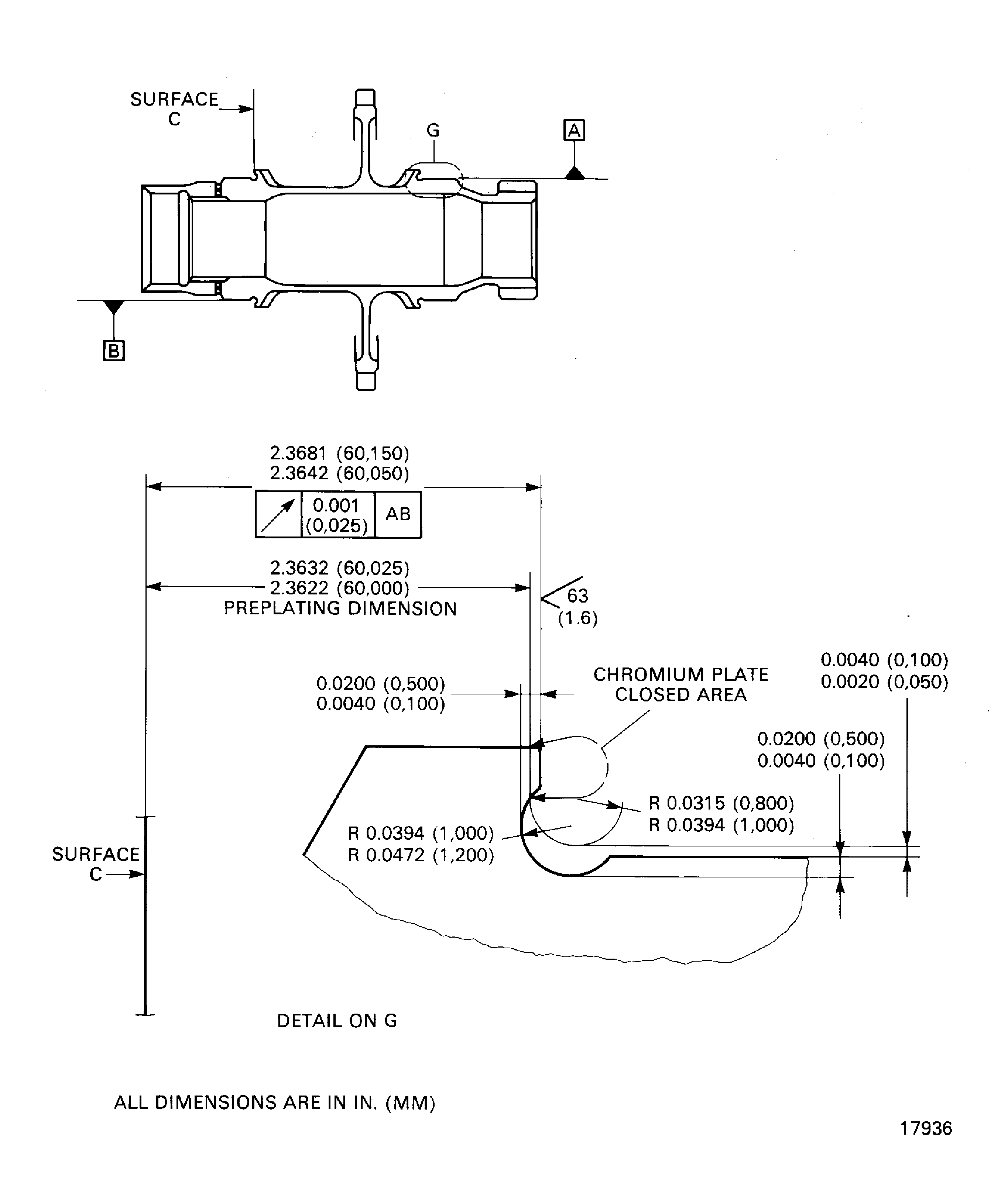 Plate to a sufficient thickness to permit the machining to the last dimensions. The plating out of the front bearing shoulder is permitted but must be removed.
