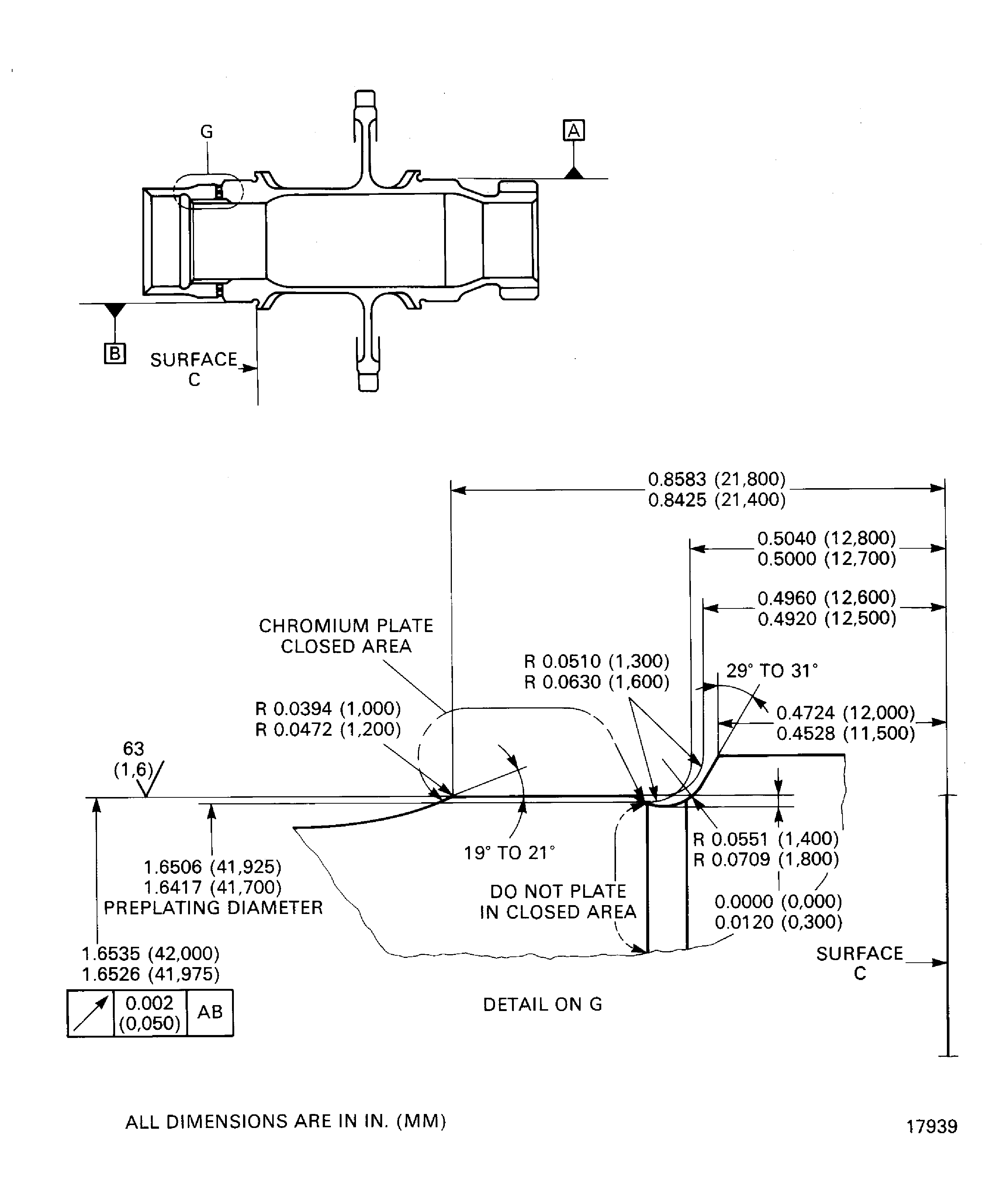 Plate to a sufficient thickness to permit the machining to the last dimensions. The plating out of the rotating ring journal is permitted but must be removed.