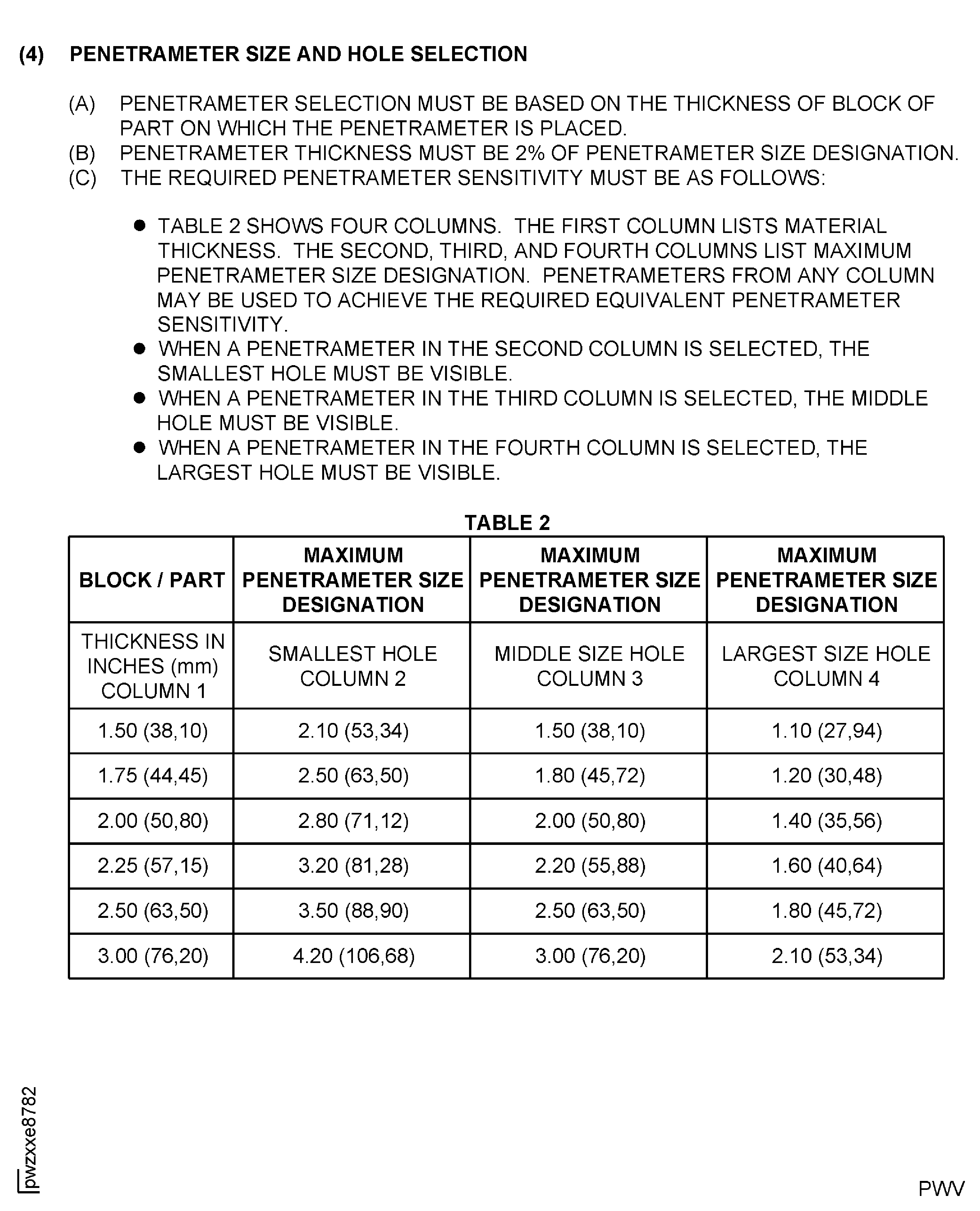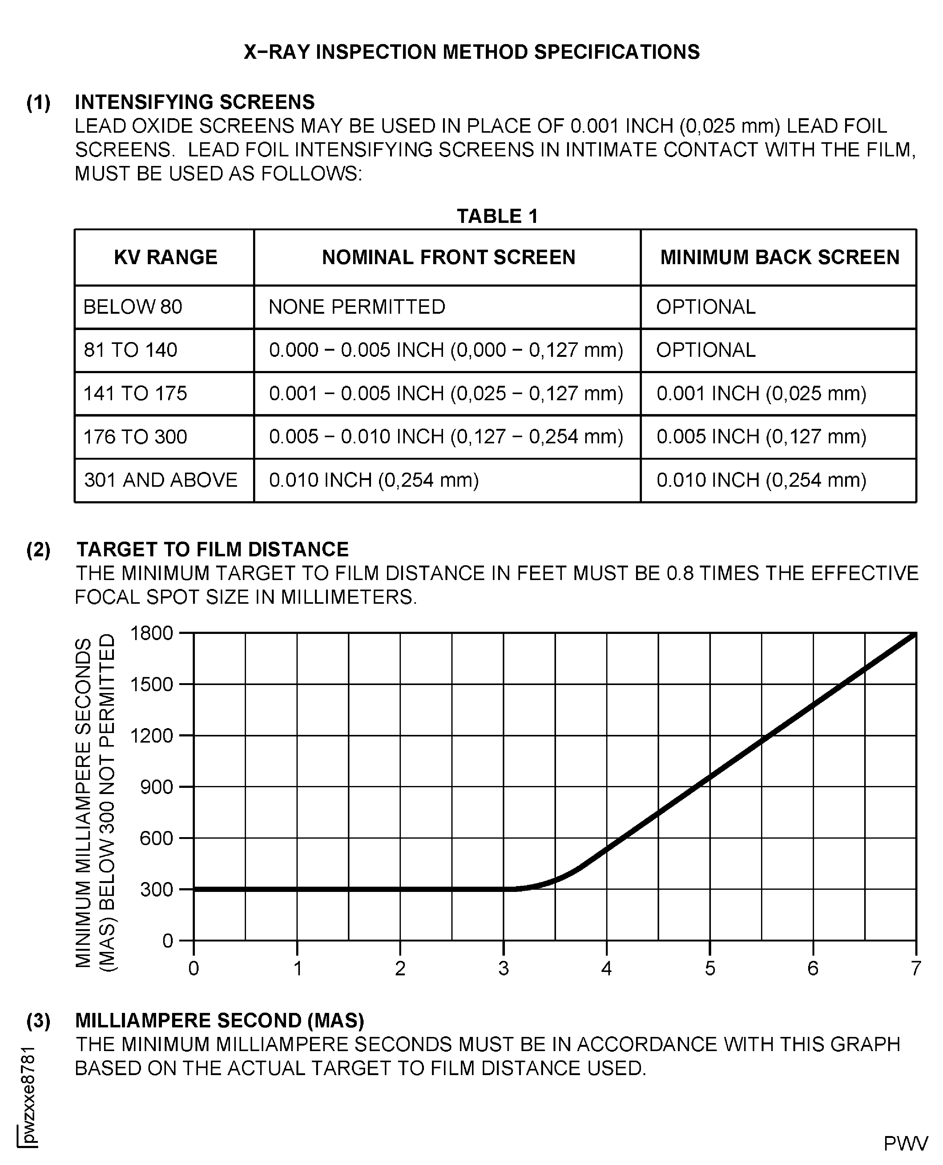 X-ray machine procedures can be obtained from the machine manufacturer. The necessary X-ray machine settings must be developed with the machine manufacturer's parameters and by the X-ray inspection method specifications as stated in Table 1 and Table 2 in Figure and Figure. Refer to SPM TASK 70-26-00-260-501.