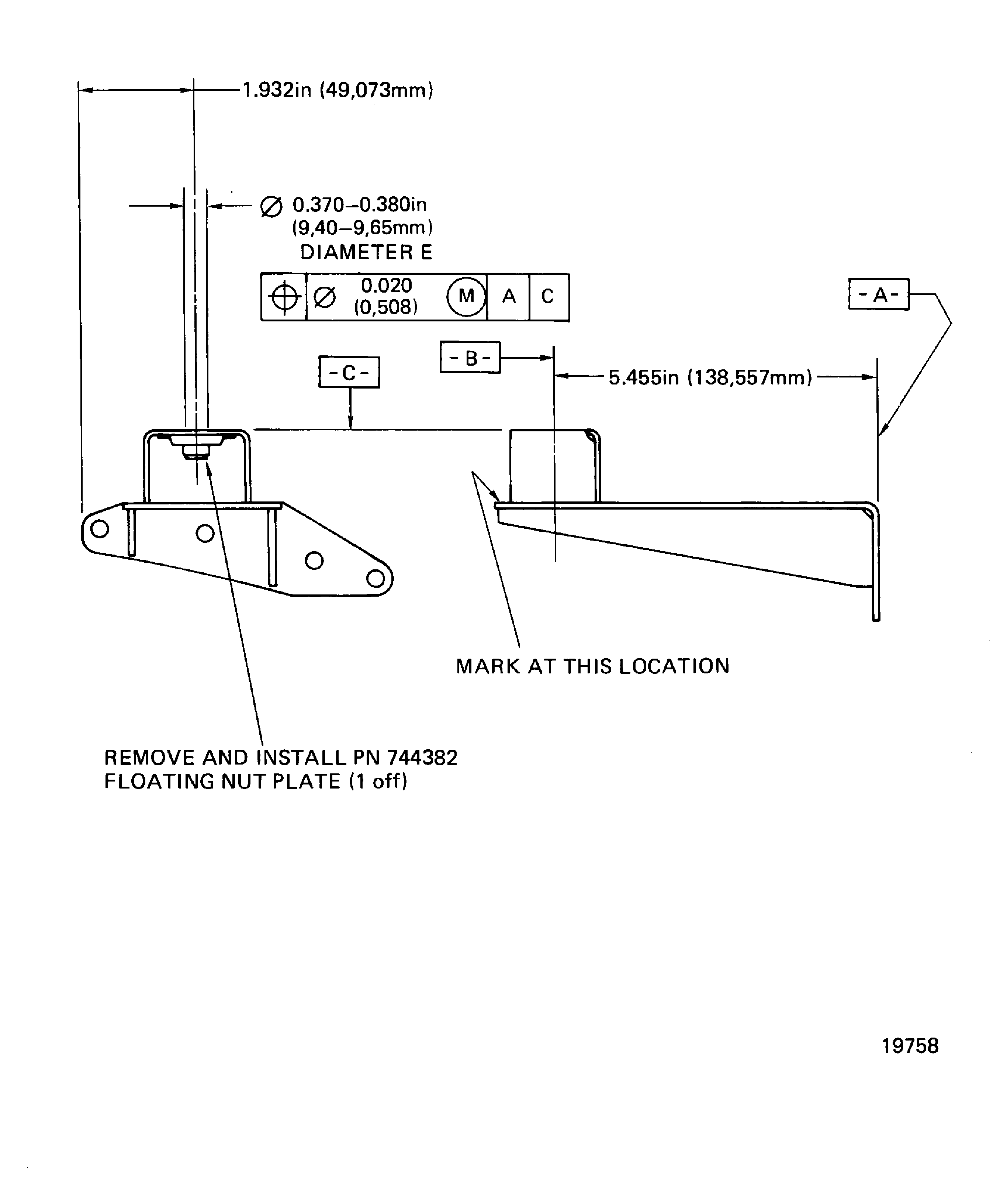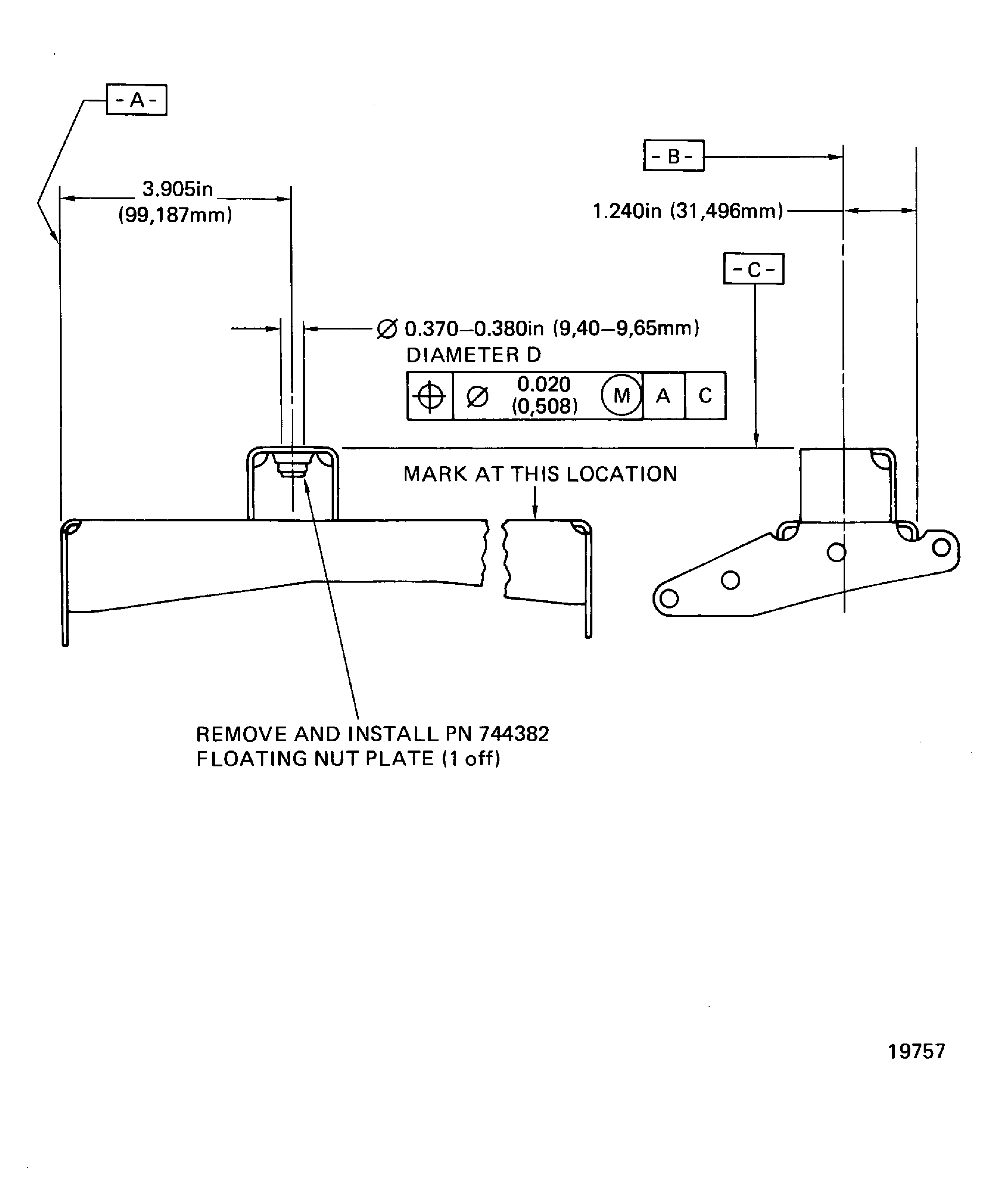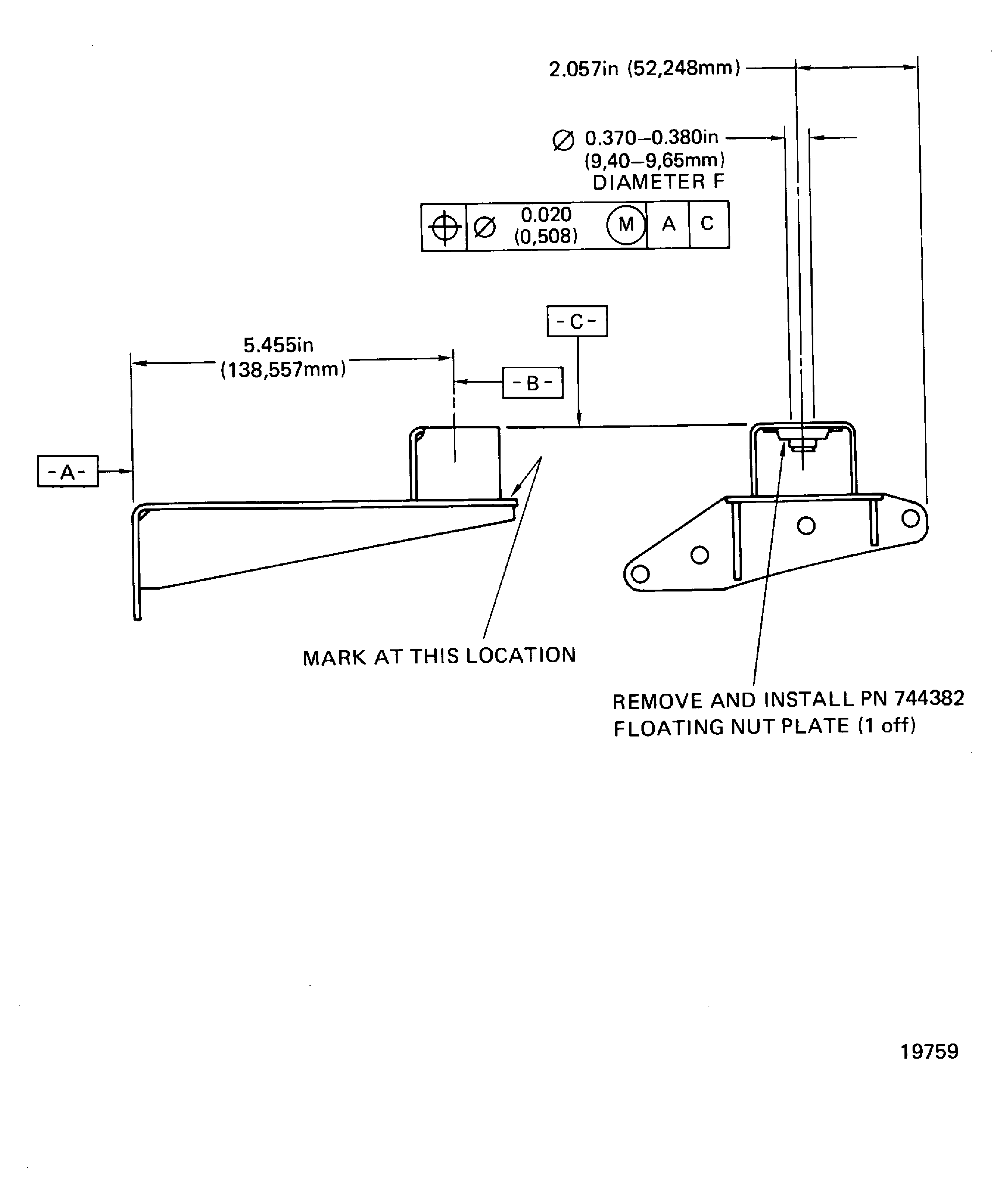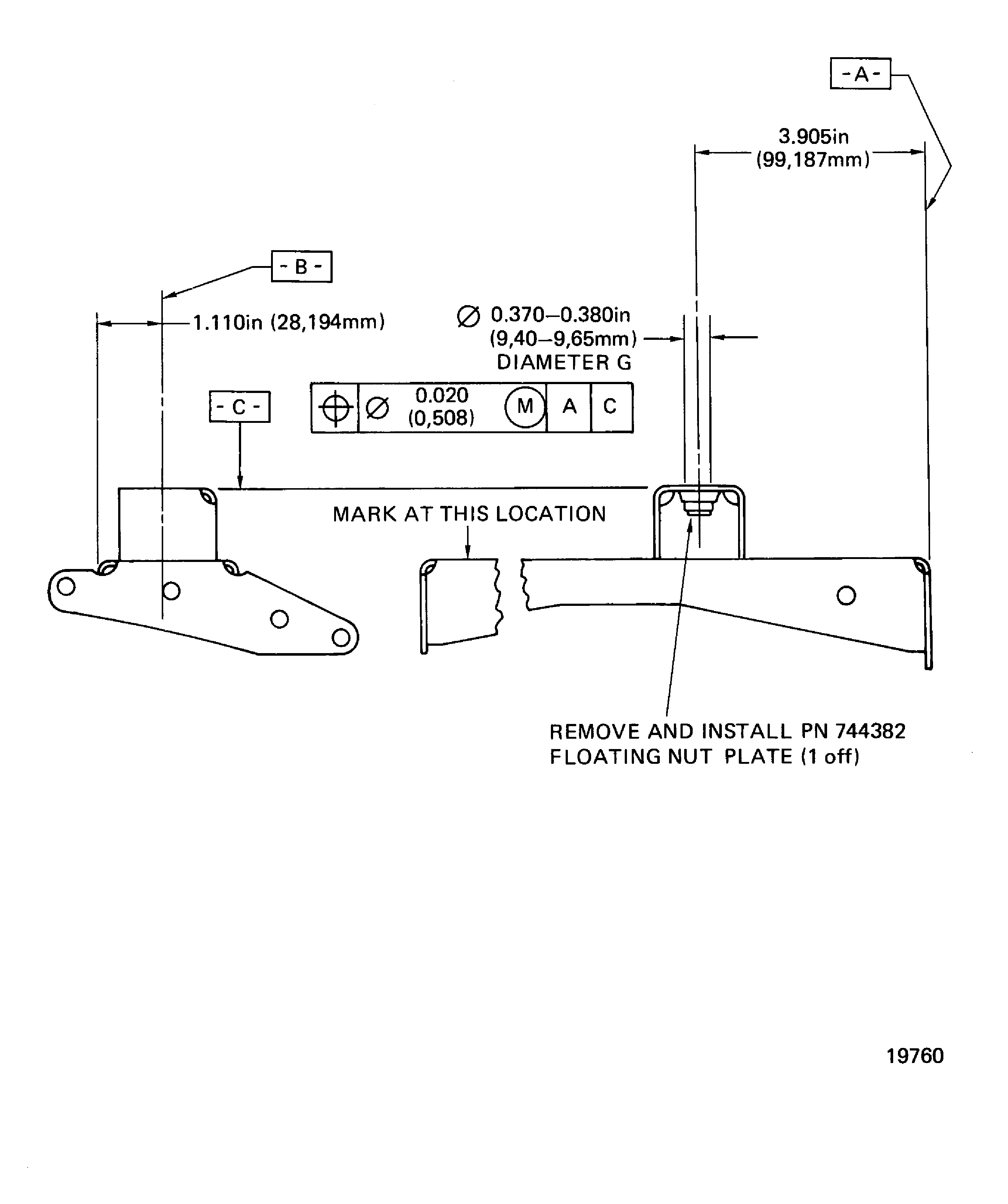 Install the PN 744382 floating nut plate 1 off on the support with PN AS3228-102 rivets 2 off.