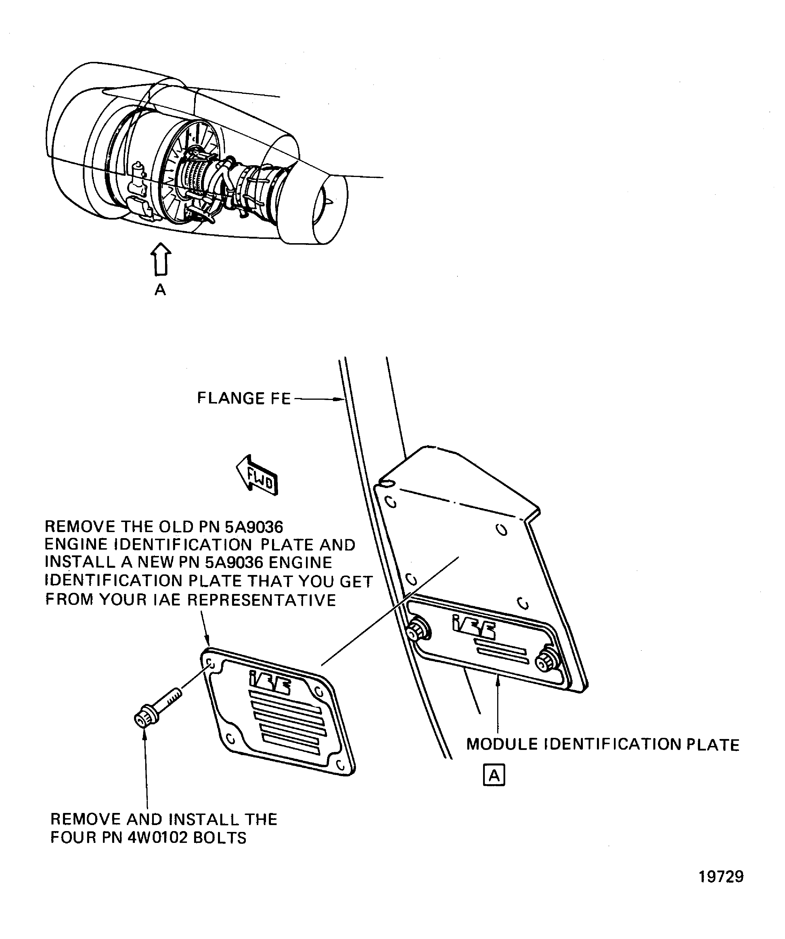 Get the new 5A9036 engine identification plate from your IAE representative with the correct engine serial number, and take-off rating for your engine.