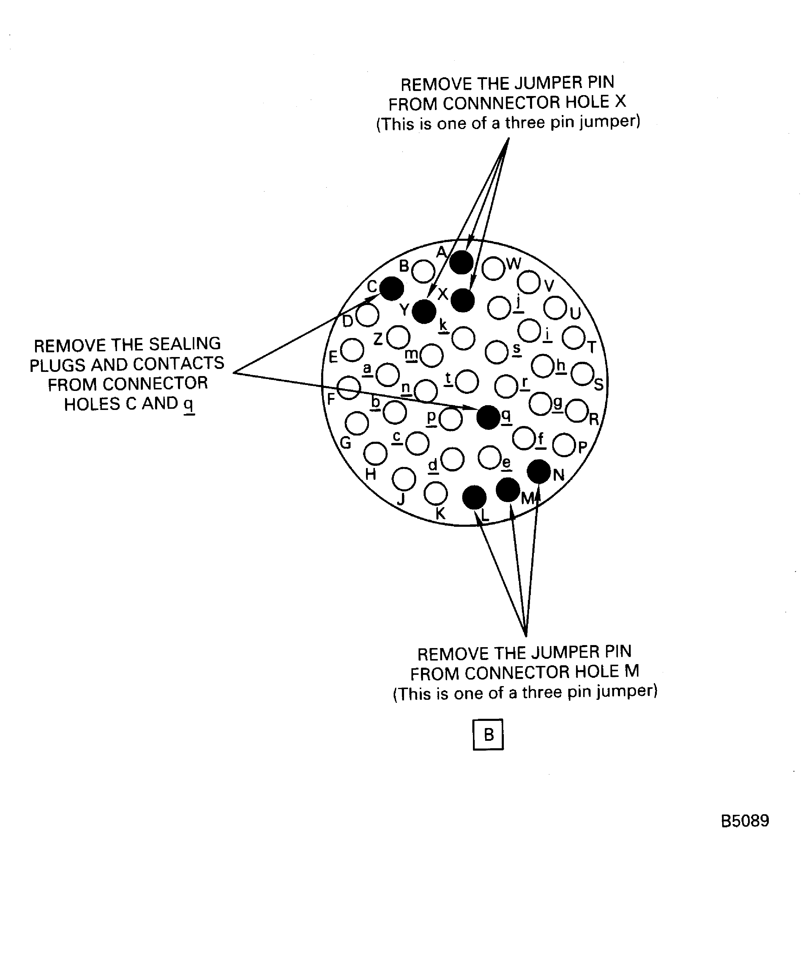 Figure: Modification Of The Data Entry Plug Assembly (Remove The Sealing Plugs, Contacts And Jumper Pins)