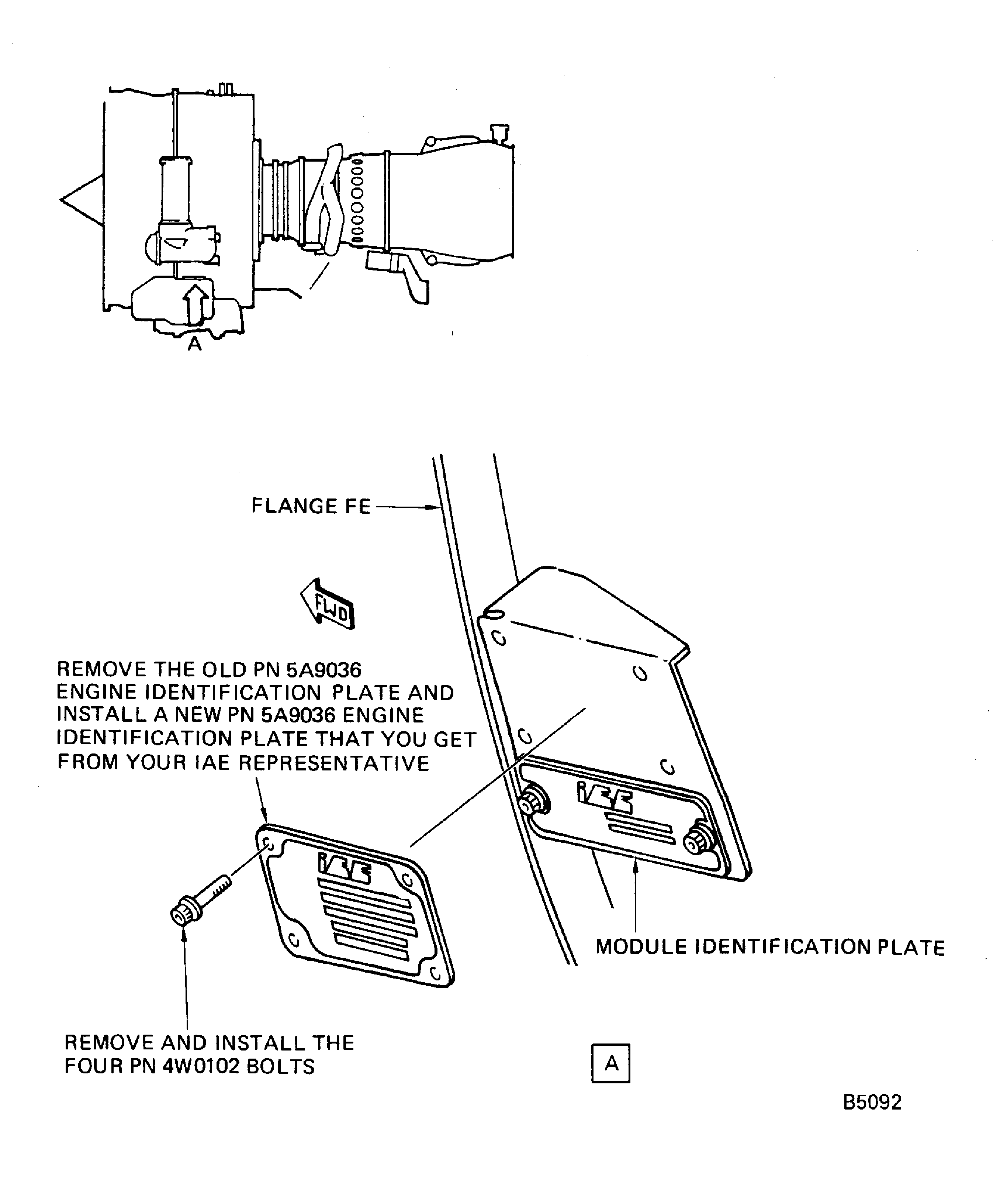 Get the new 5A9036 engine identification plate from your IAE representative