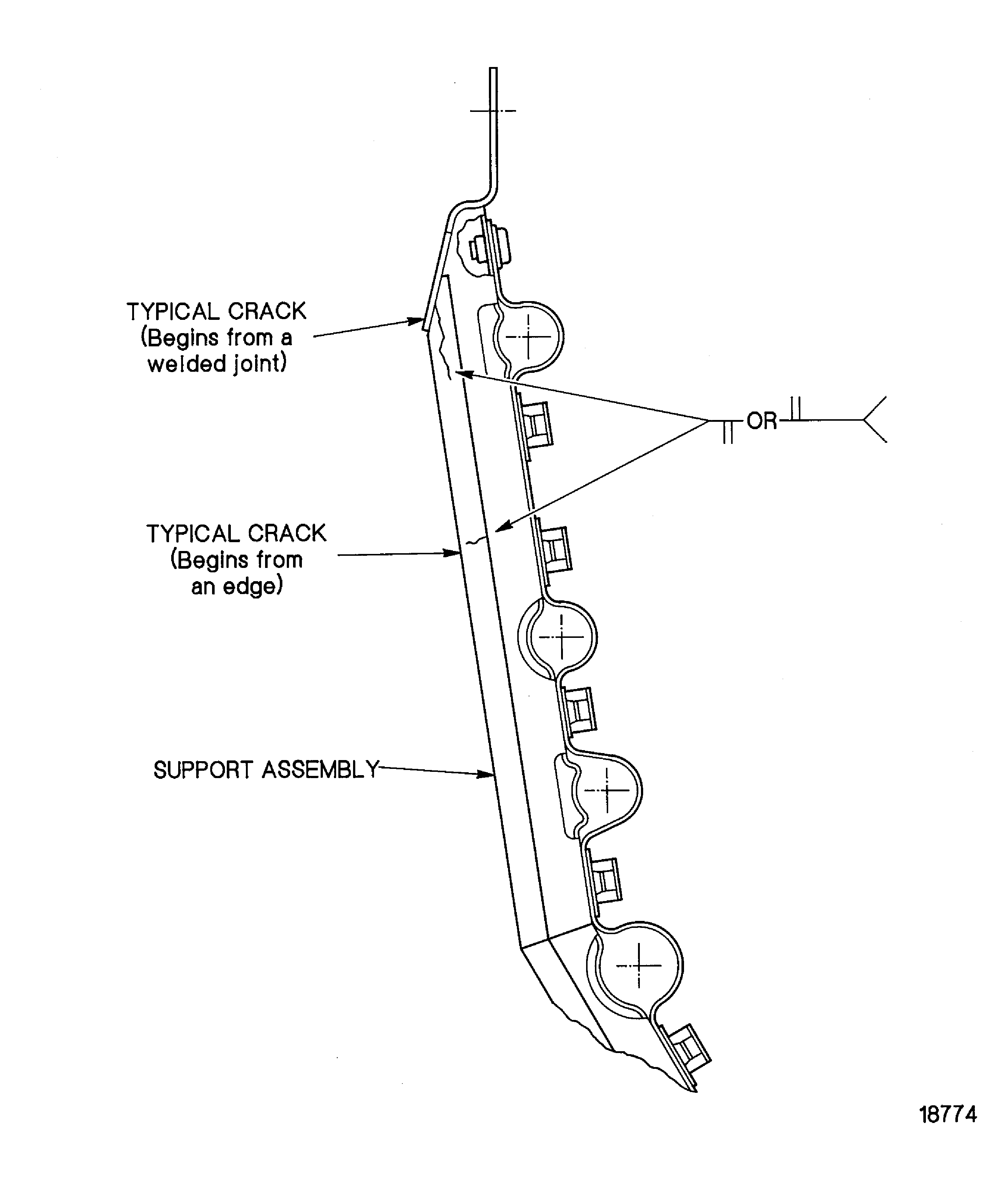 Clean the areas around the cracks on both sides of the support assembly if possible.