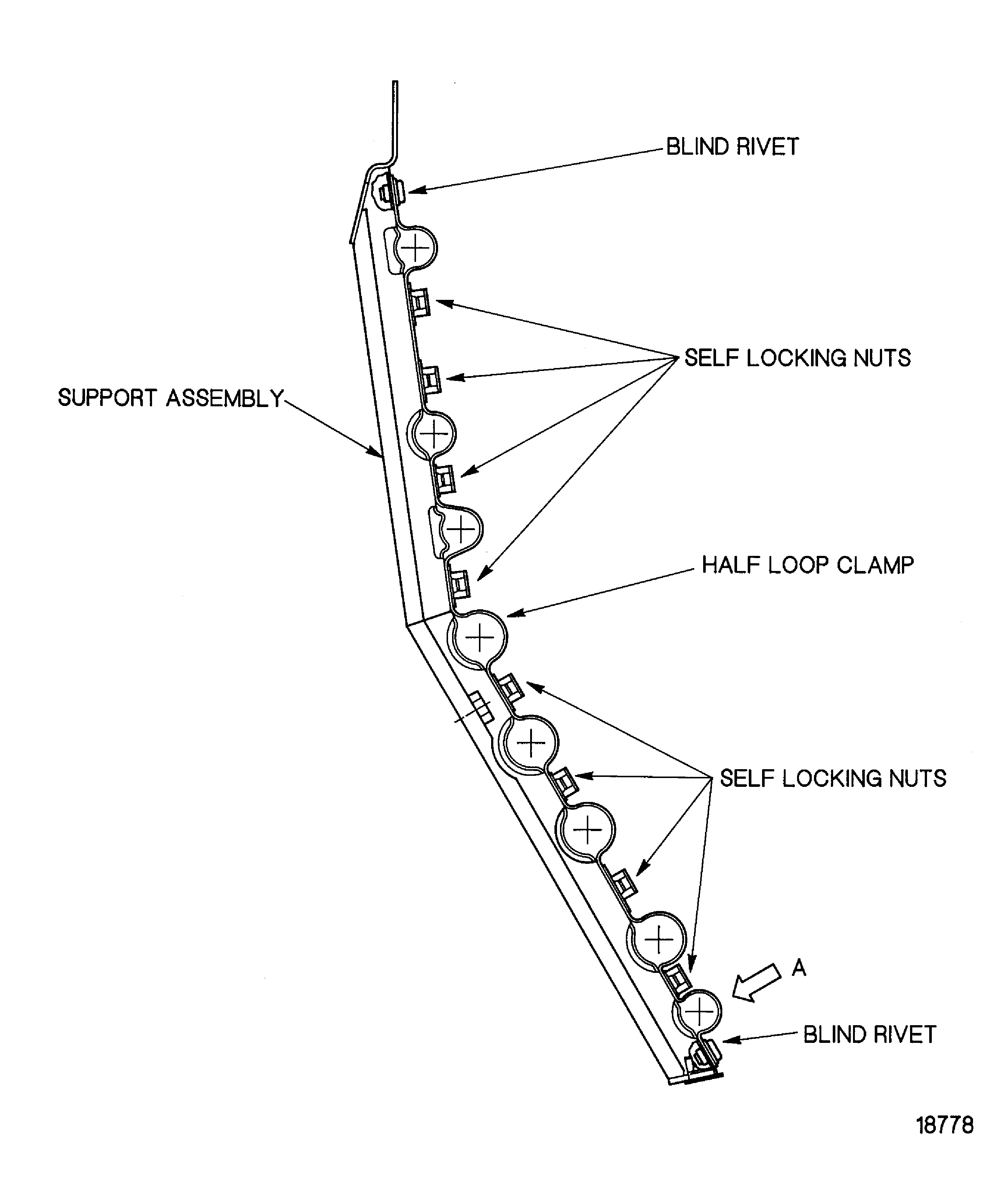 Install the half loop clamp assemblies with the ST1300-14 RIVET - BLIND on to the support assemblies.