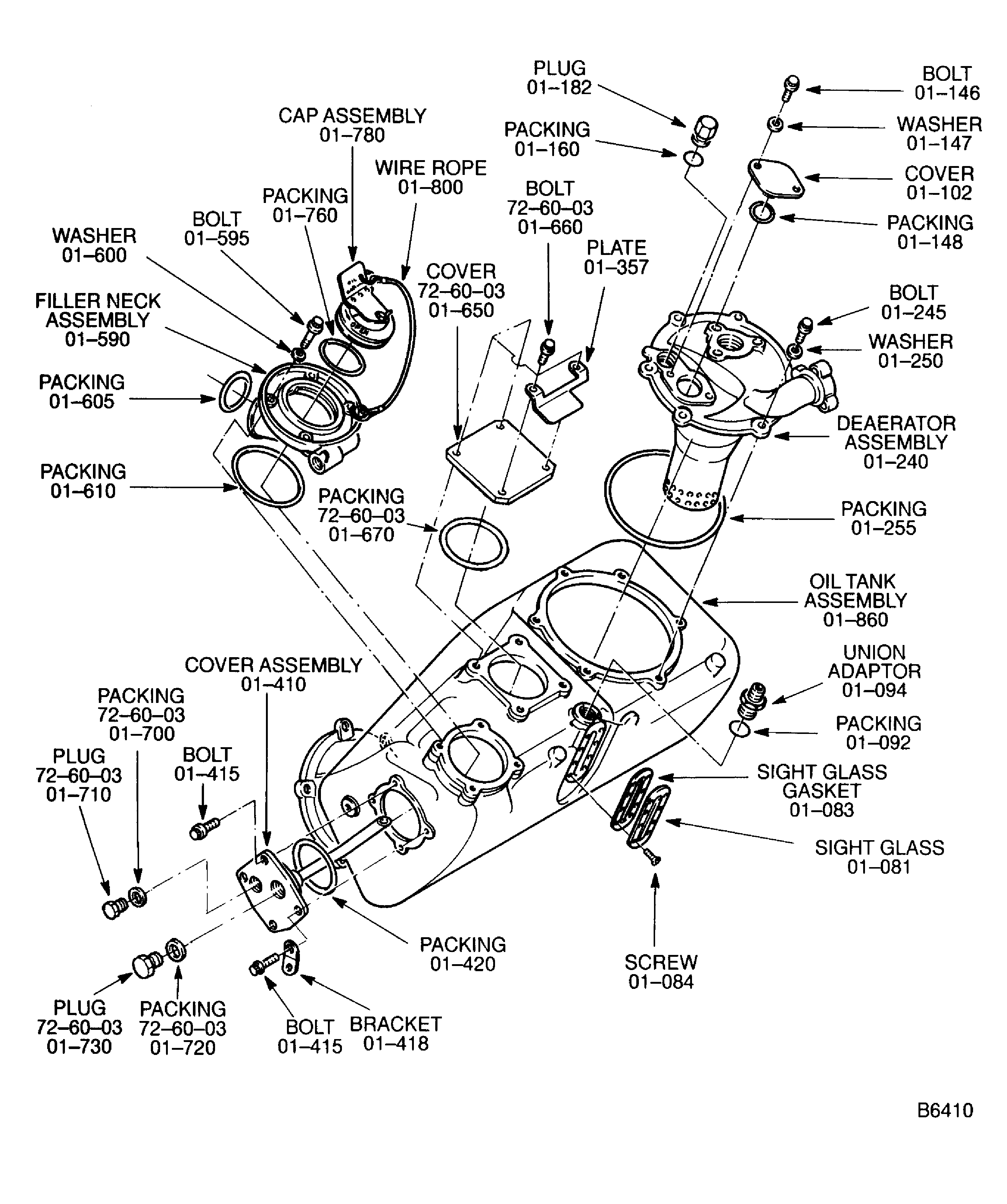 Remove the six bolts and washers that attach the deaerator assembly to the oil tank assembly.
