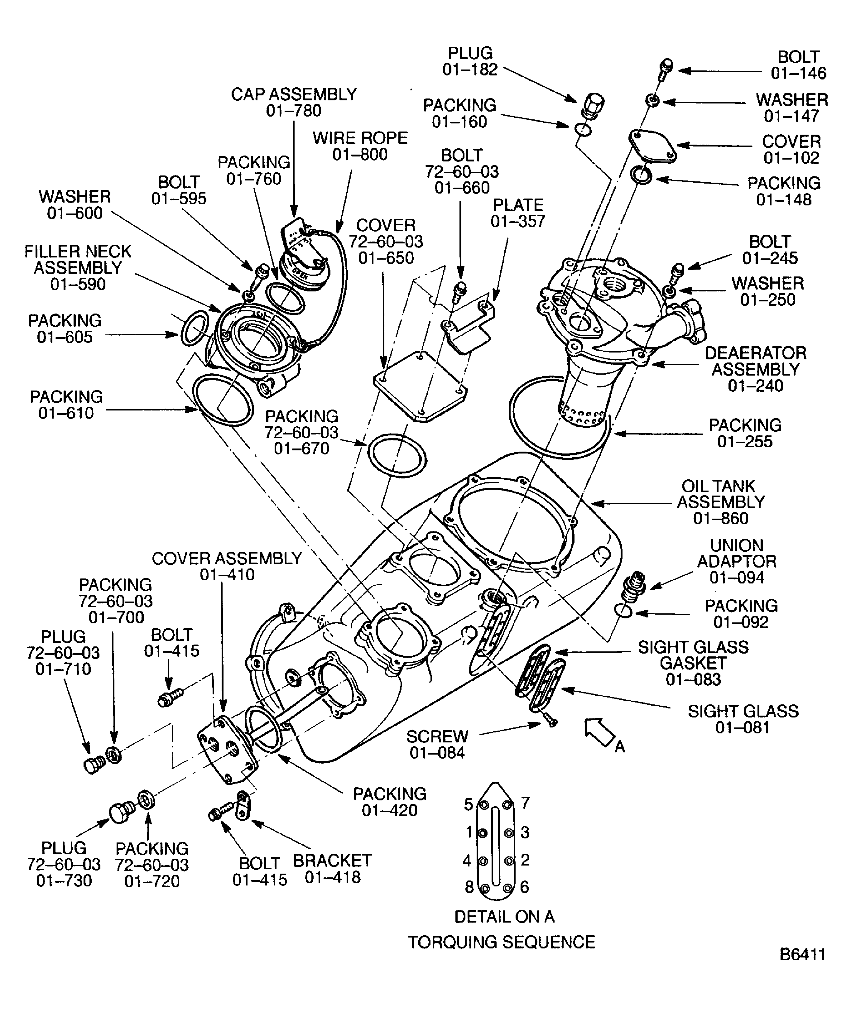 Install OIL-OIL TANK (79-11-41, 01-255) packing on the deaerator assembly groove.
