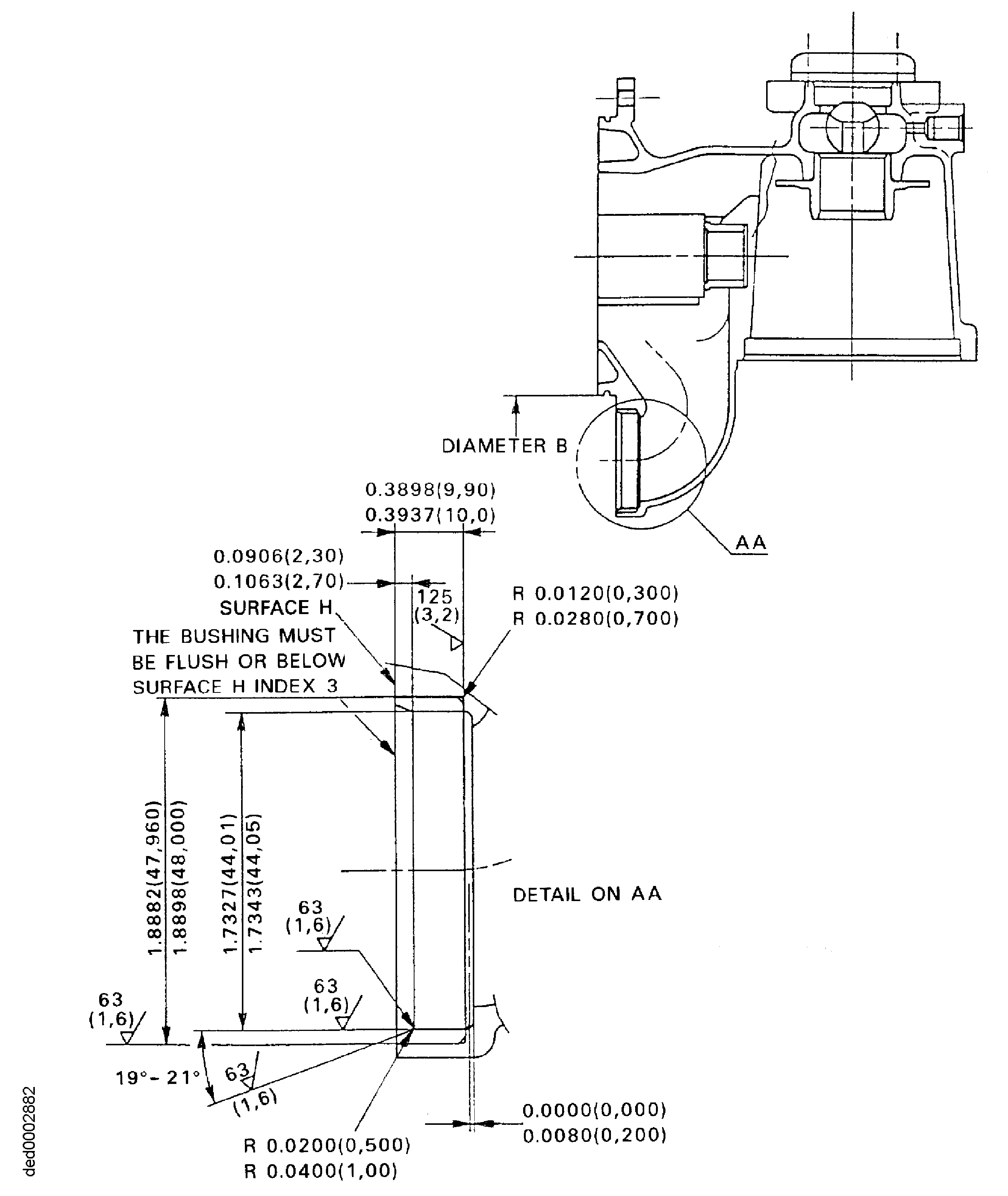 The diameter of the bore must be between 1.8882 and 1.8898 in. (47.960 and 48.000 mm) after removal of the damage.