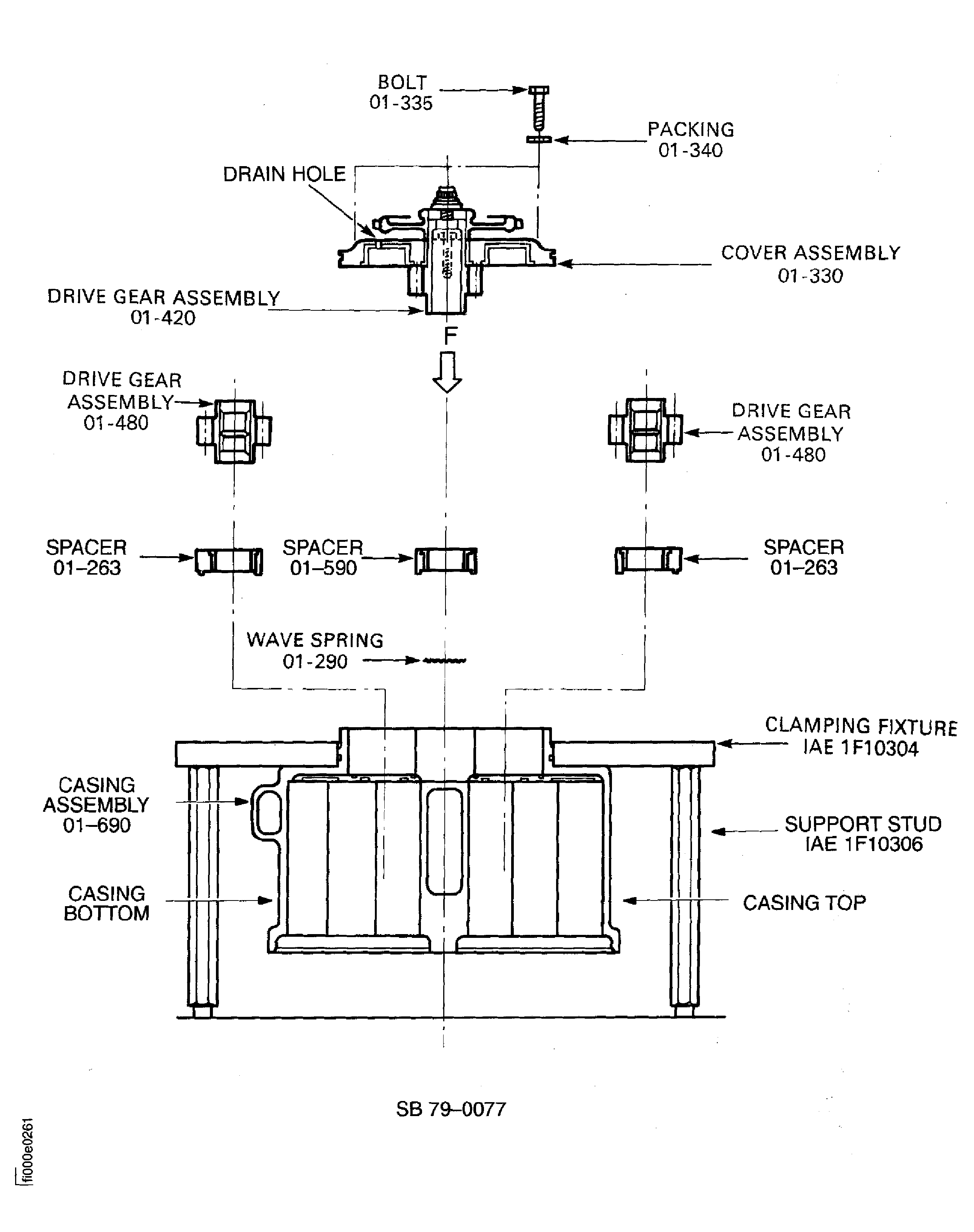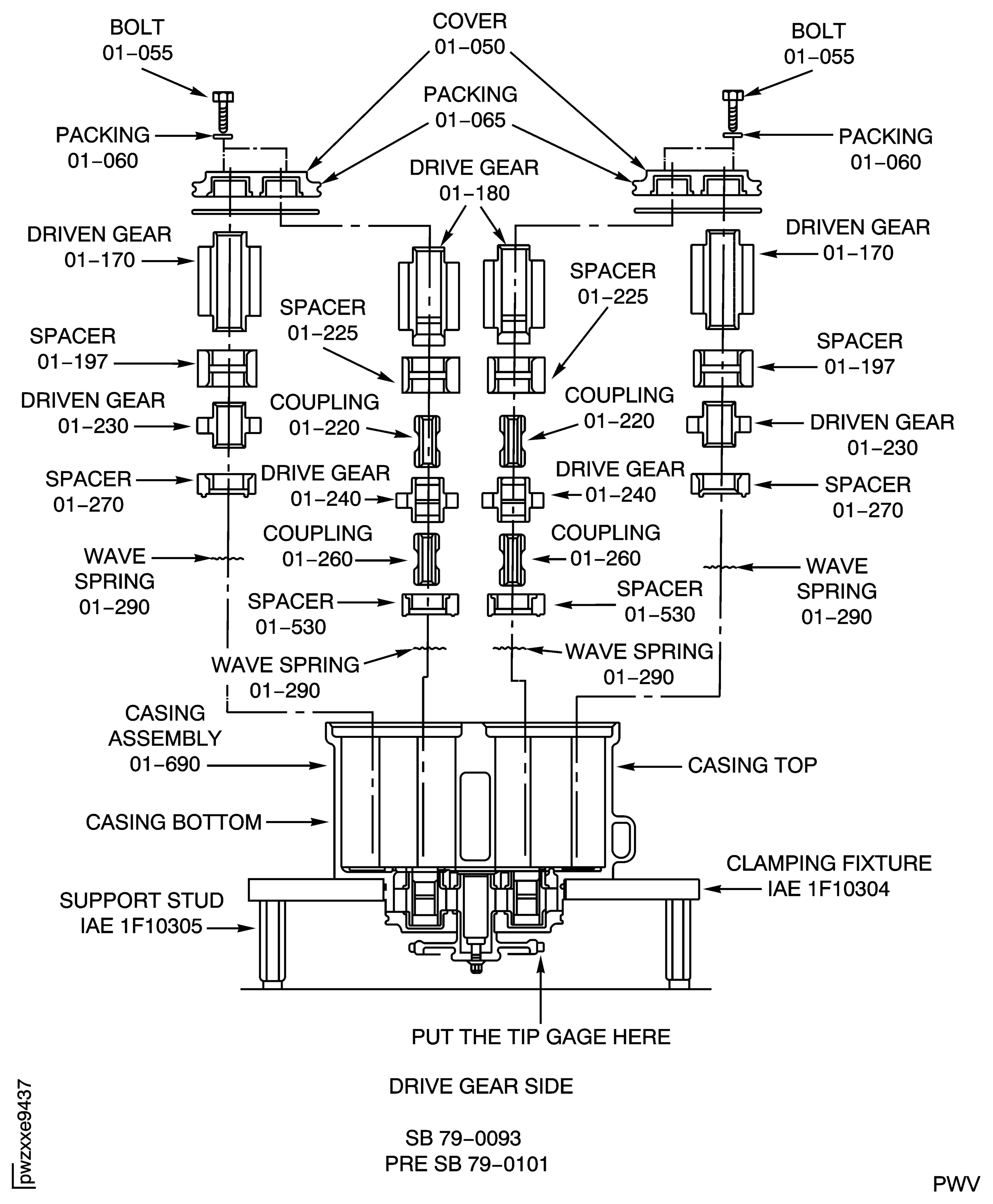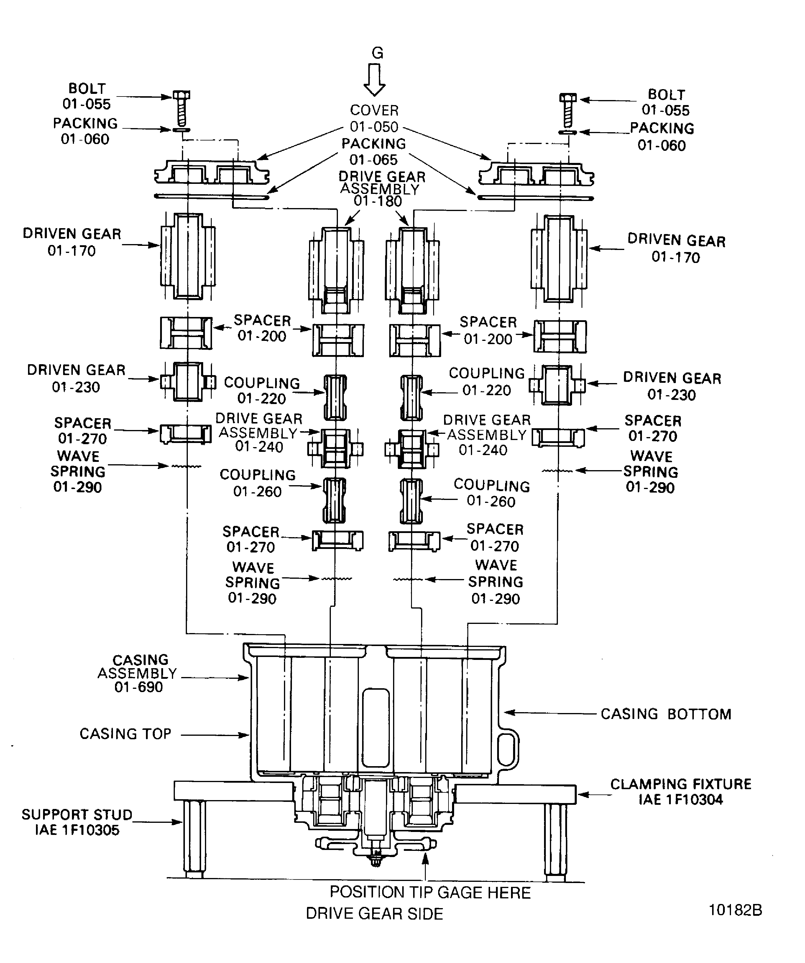 Install the (01-690) casing assembly to the IAE 1F10304 Clamping fixture, put the drive gear side turned to the top.