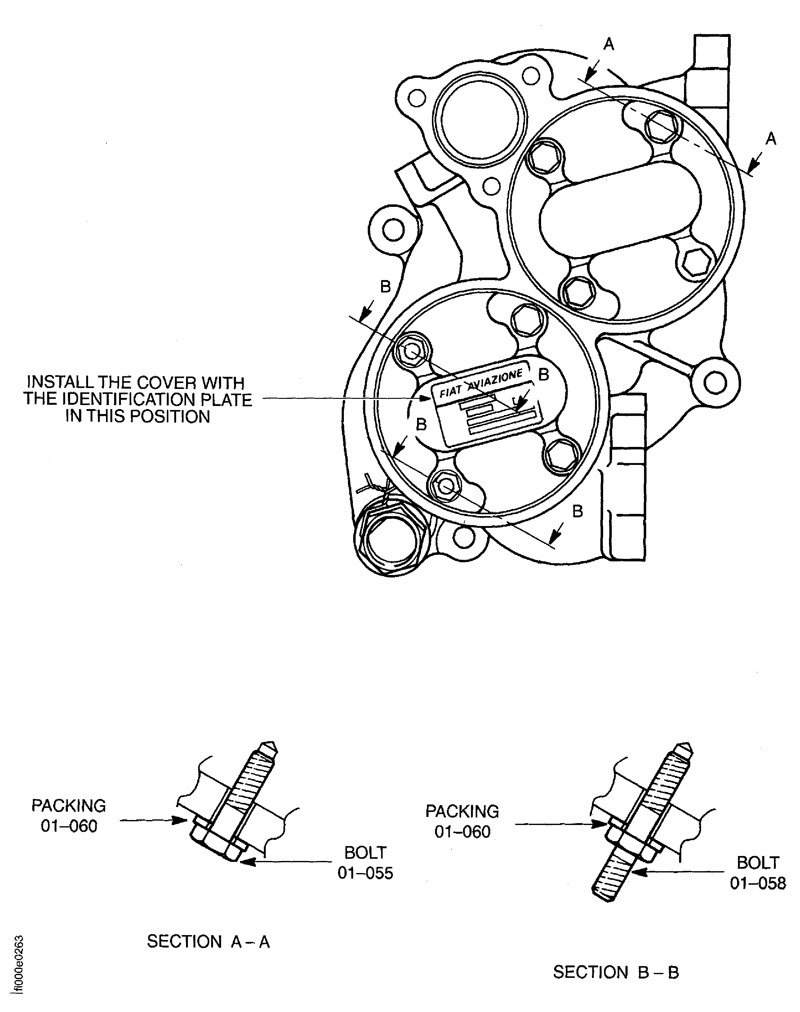Install the (01-340) packings 4 off and (01-335) bolts 4 off on the cover assembly.