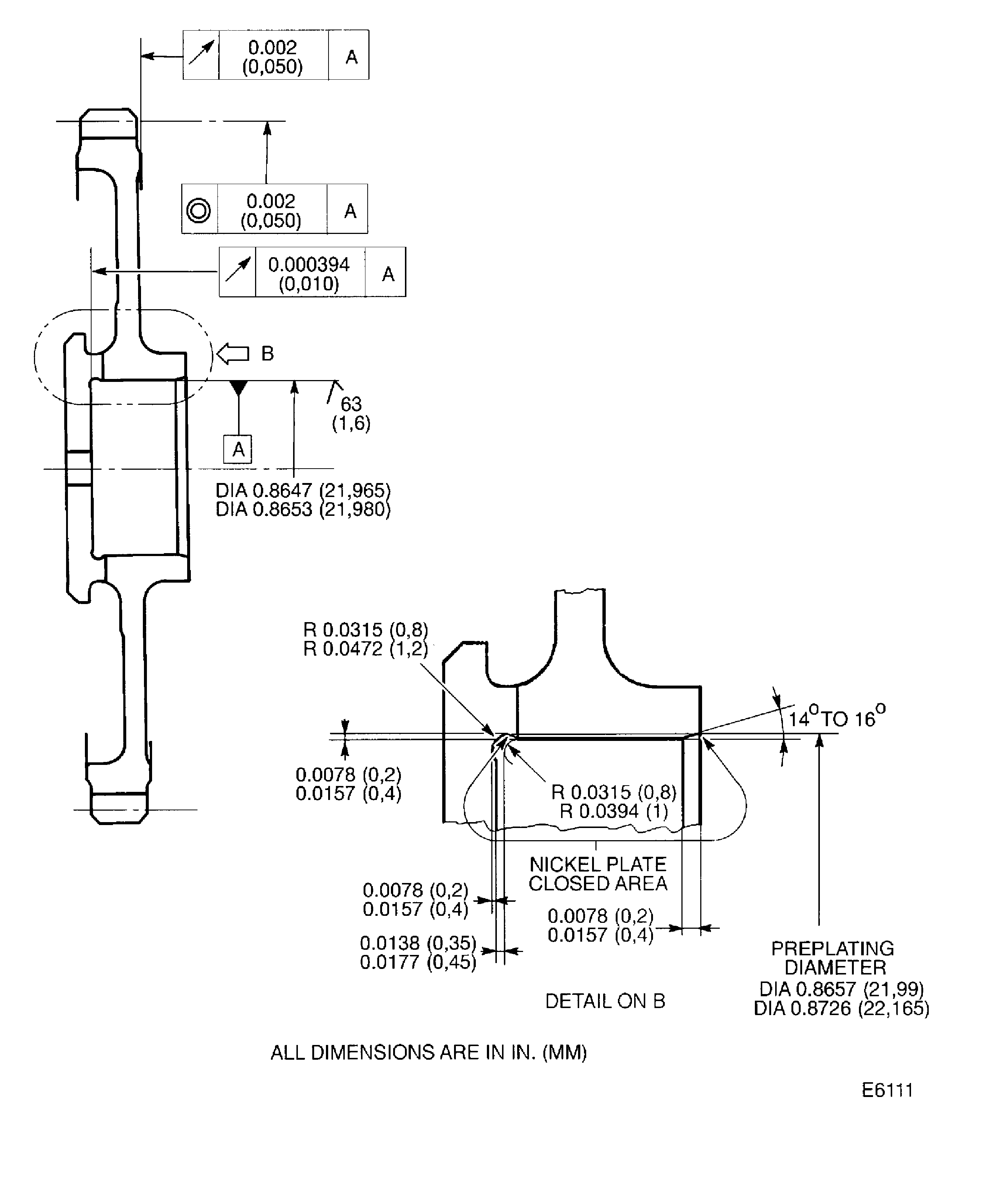 Remove all damage and wear. The inner diameter must be between 0.8657 and 0.8726 in. (21.990 and 22.165 mm) after the removal of the damage.