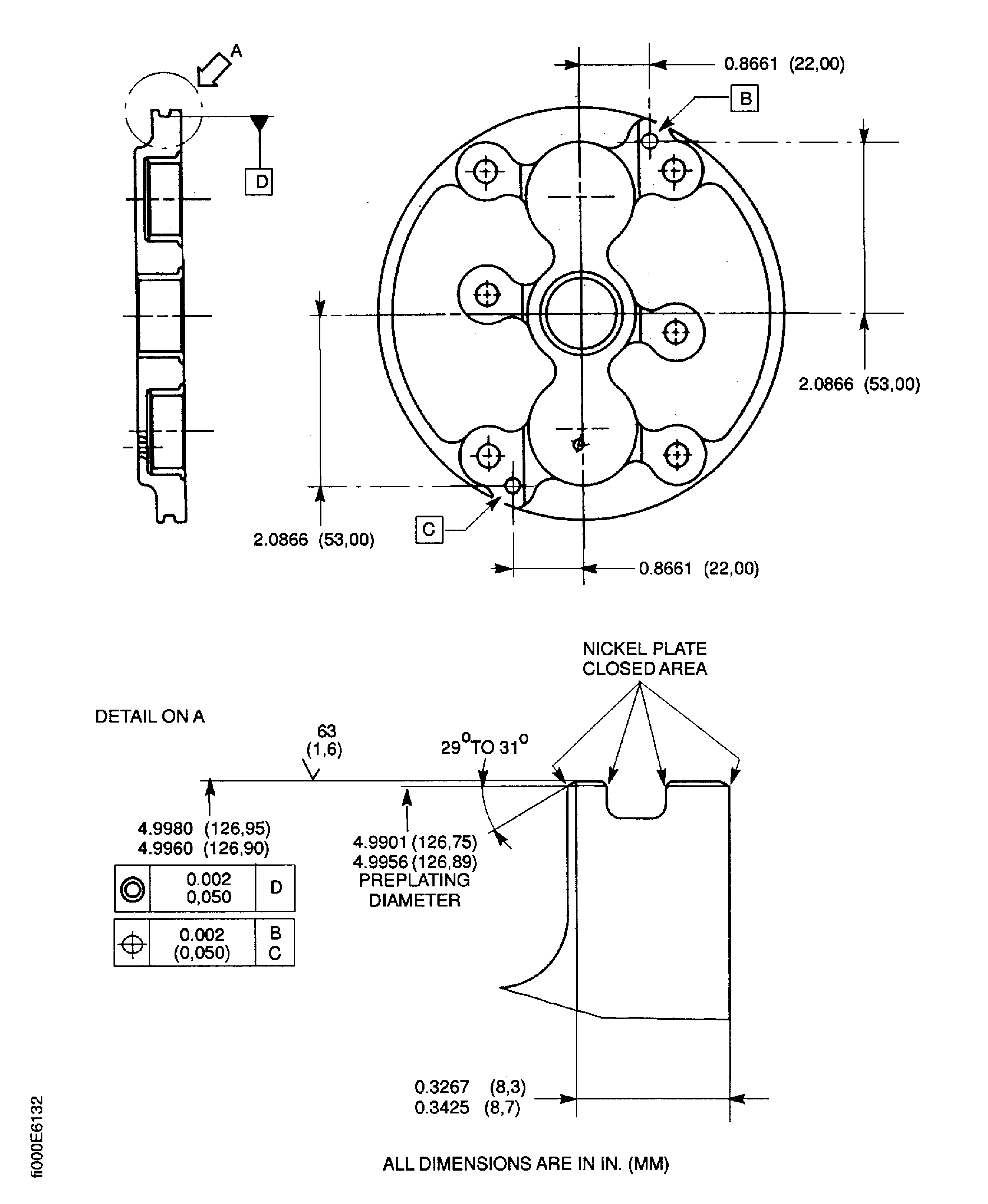 Machine the piloting diameter, the dimension must be between 4.9980 to 4.9960 in. (126.950 to 126.900 mm).