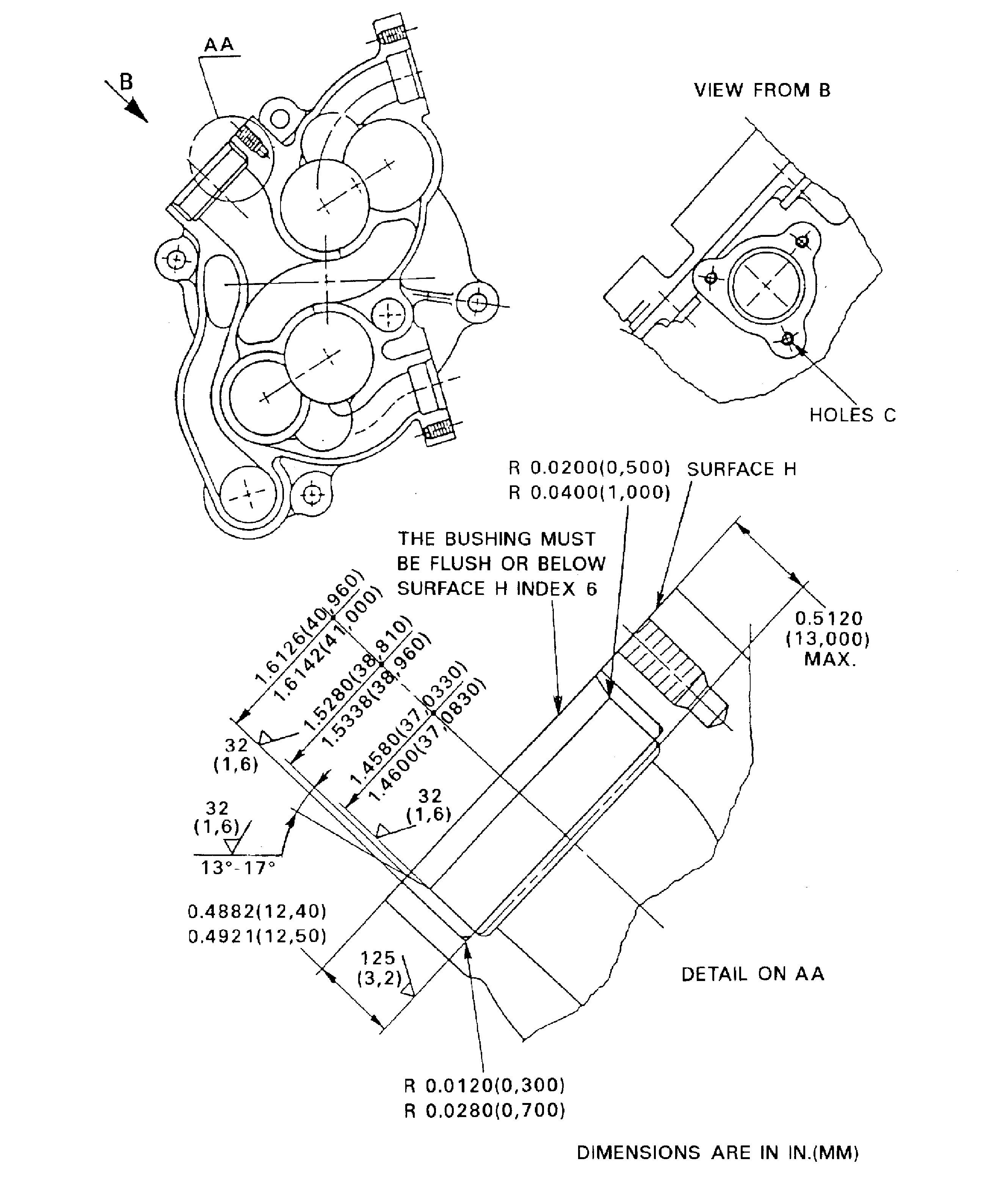 The true position of the bore must be within 0.0200 in. (0.500 mm) FIR in relation to holes C index 1.