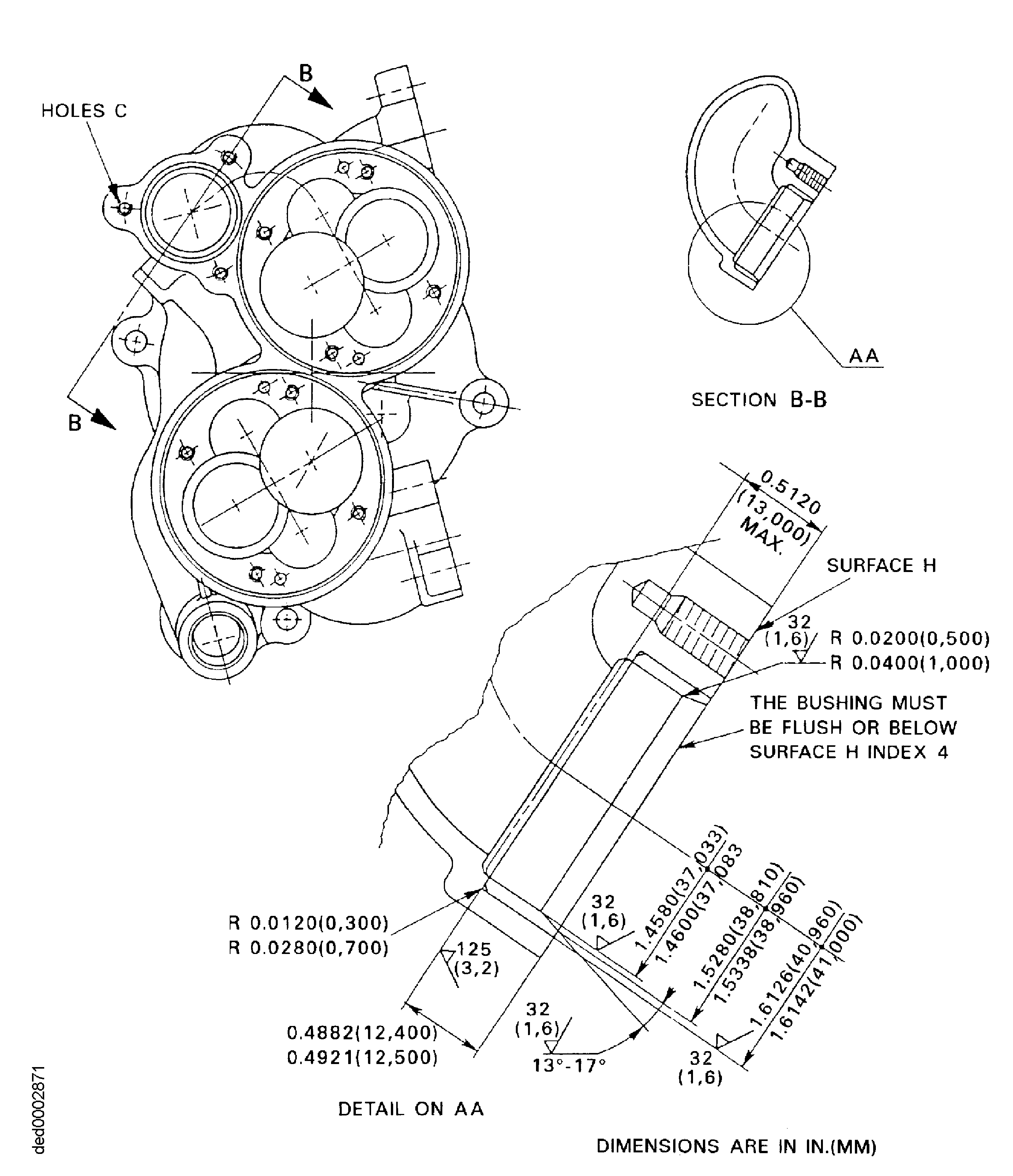 The diameter of the bore must be between 1.6126 and 1.6142 in. (40.960 and 41.000 mm) after removal of the damage.