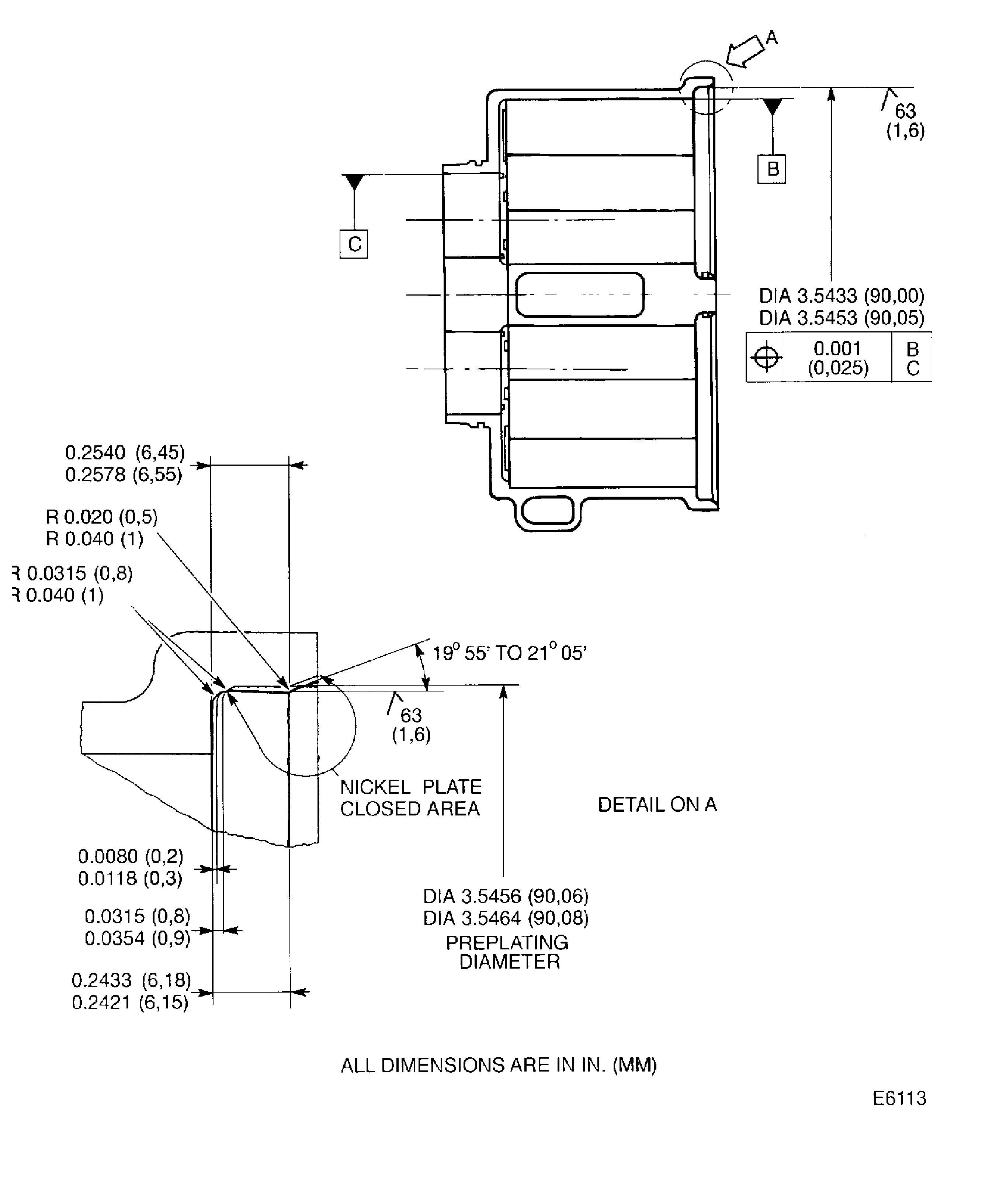 The cover seat must be between 3.5456 to 3.5464 in. (90.060 to 90.080 mm) after the removal of the damage.