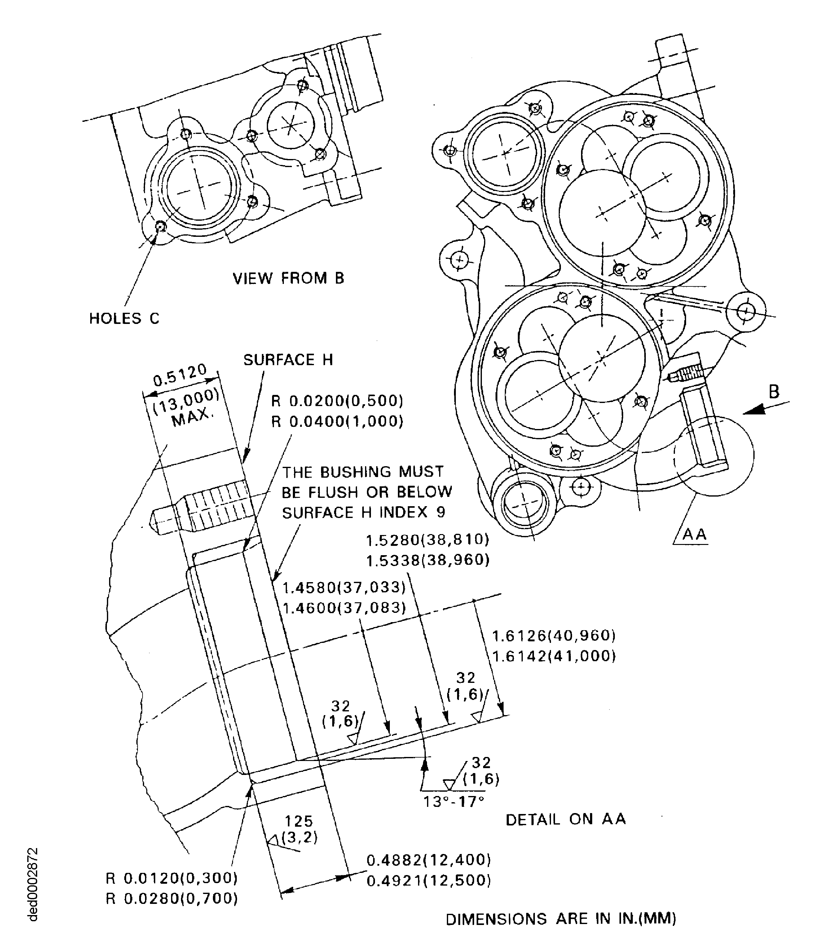 The true position of the bore must be within 0.0200 in. (0.500 mm) FIR in relation to holes C index 1.