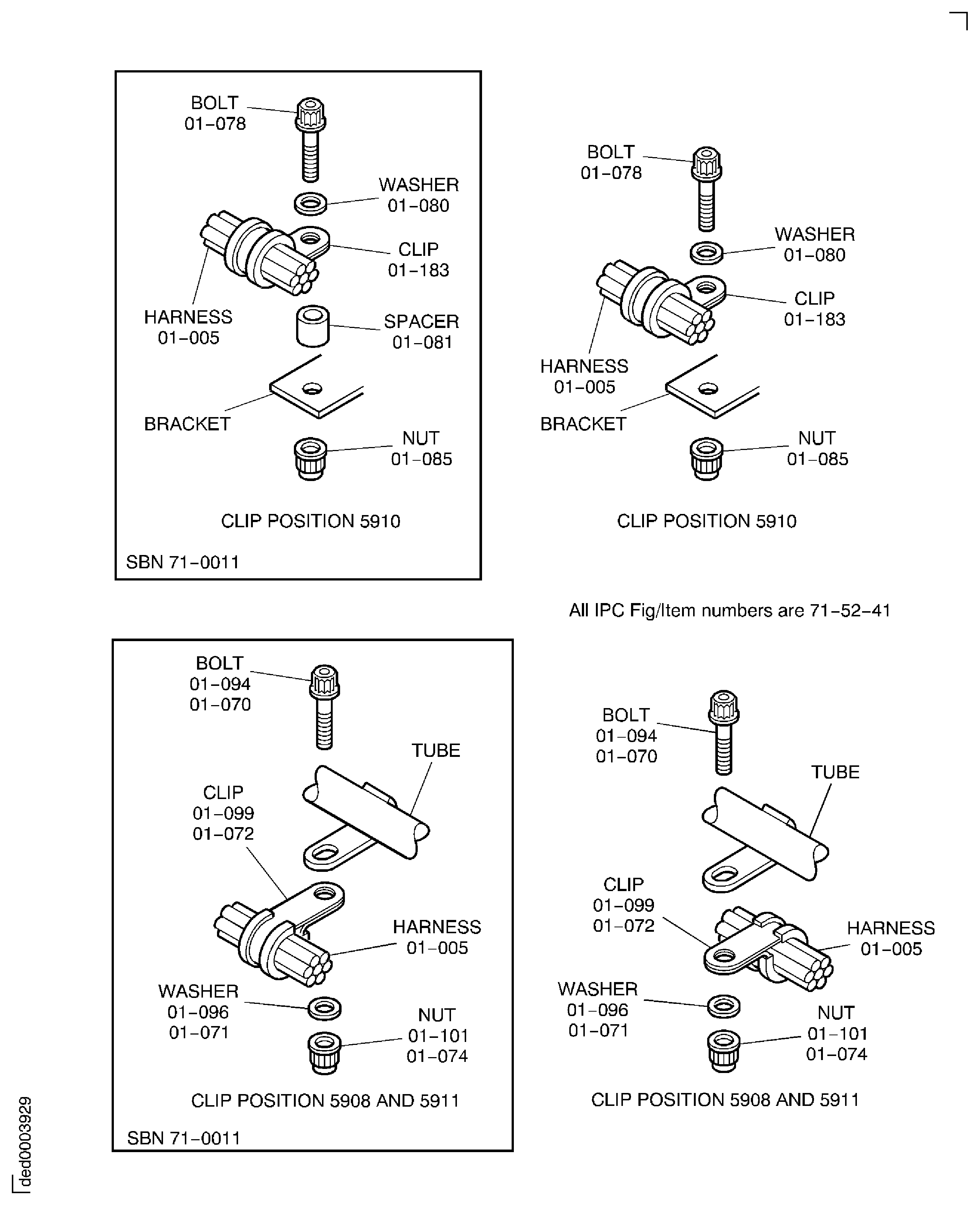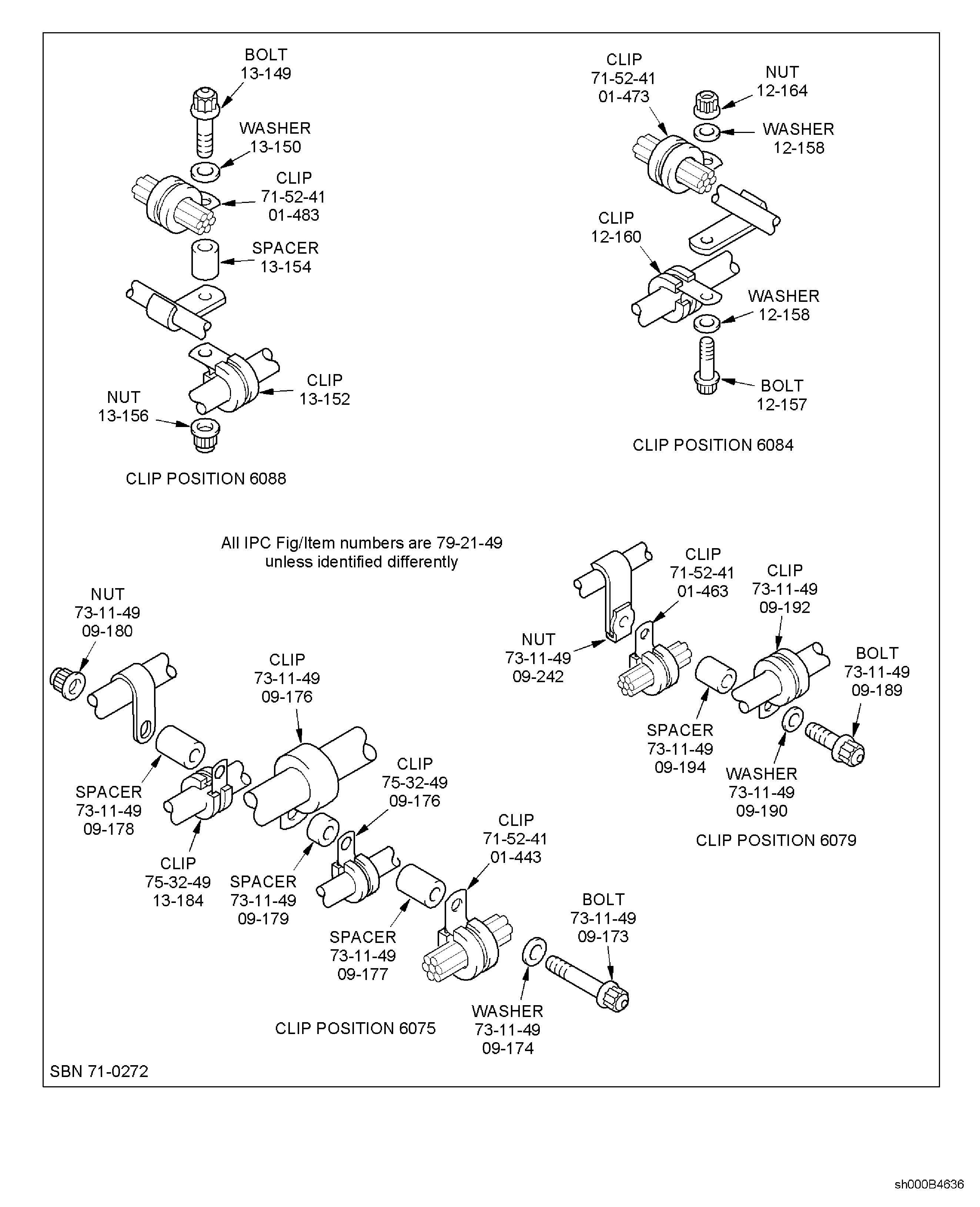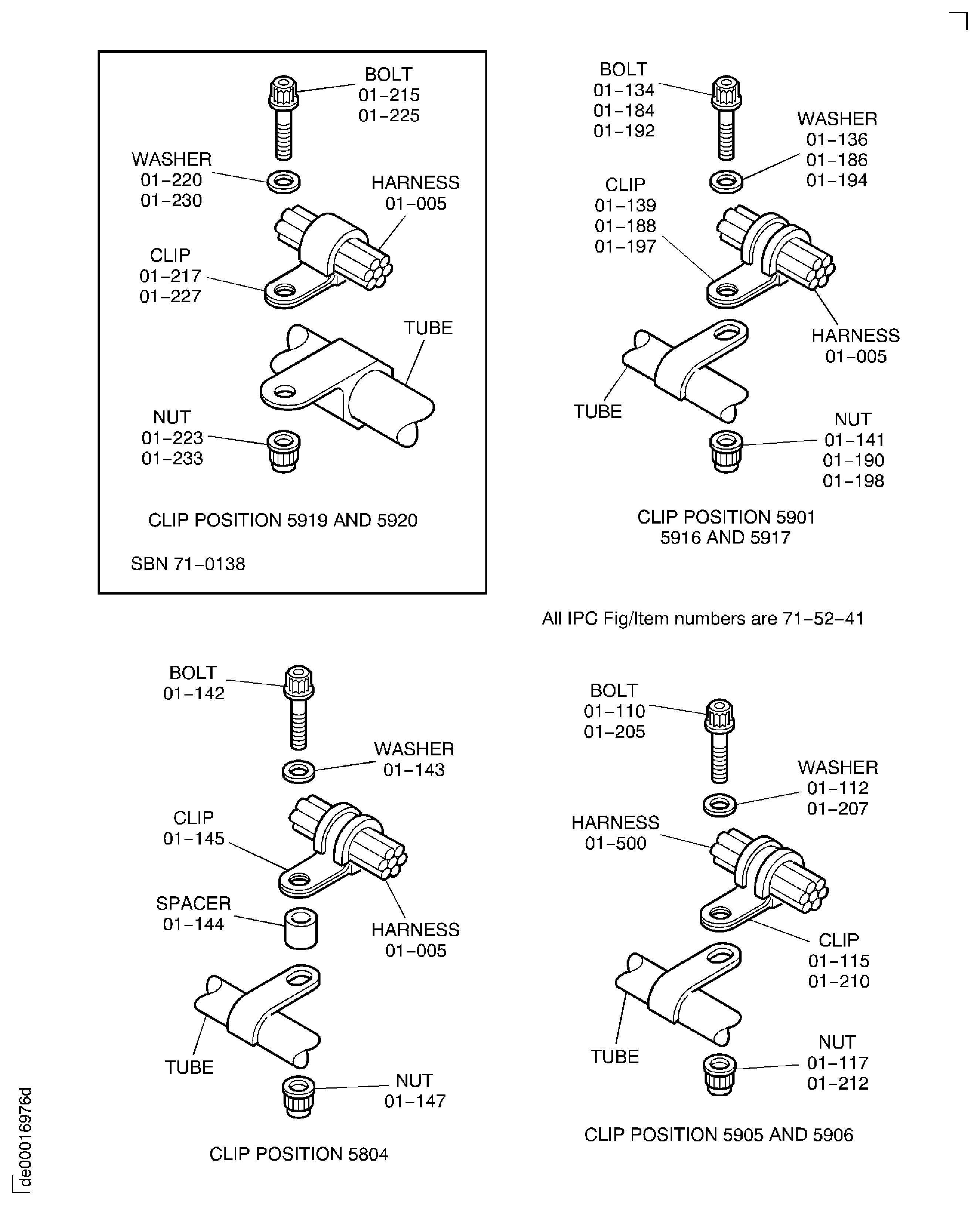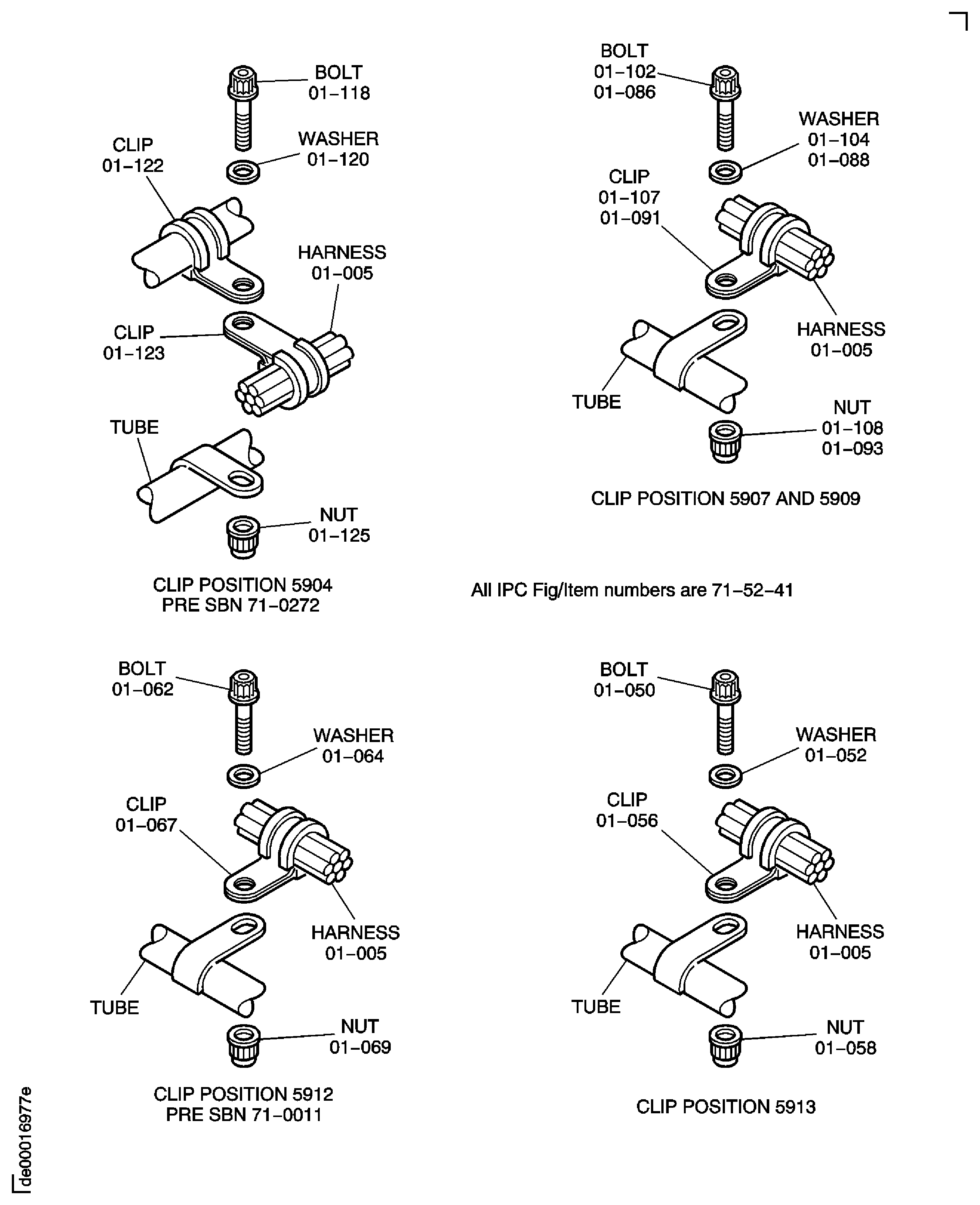 Because of the differences between the harness diameters, the specified clip could be too large or too small. You can use a clip from a range of six clips that have the same part numbers. If the harness diameter is between two of the clips in the range, use the larger clip. When you do this use CoMat 02-148 ADHESIVE TAPE (ELECTRICAL) to increase the harness diameter.