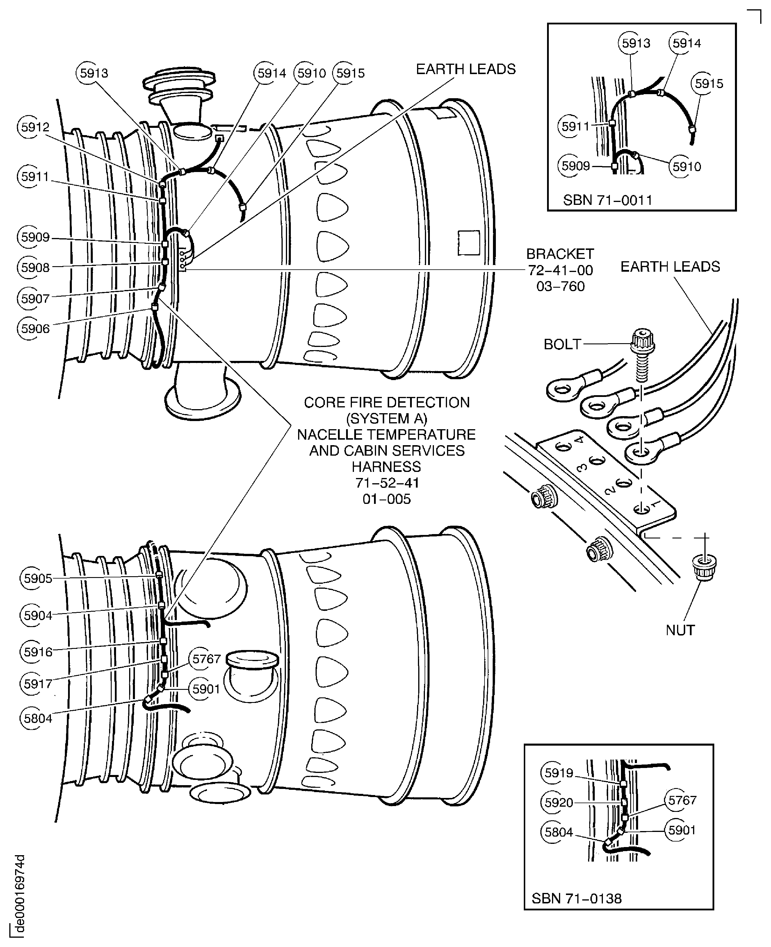 Figure: Pre SBN 71-0011 and Pre SBN 71-0272: Install the Fire Detection Harnesses, the Nacelle Temperature and Cabin Services Harness