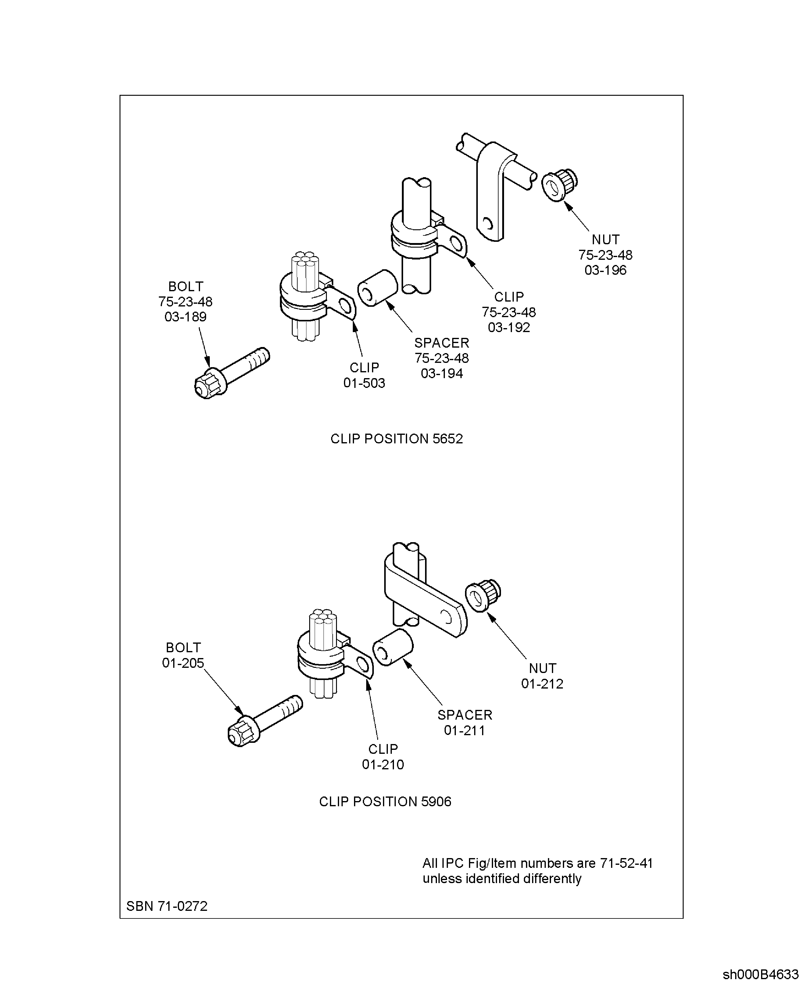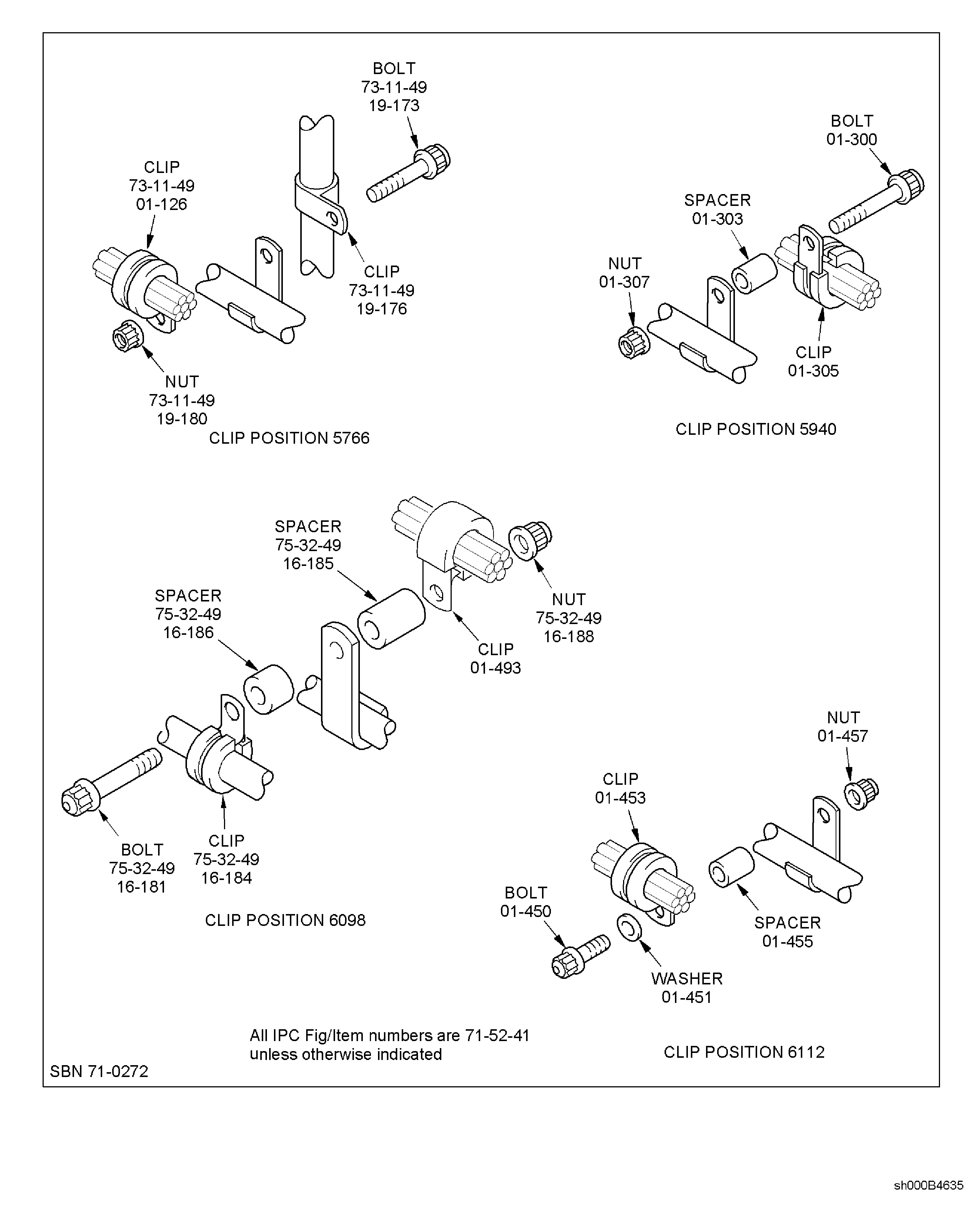 Install the clip, the clipnut, the spacer, the washer and the bolt at the clip position 5641. Torque the bolt to 36 to 45 lbfin (4 to 5 Nm). Refer to Figure.