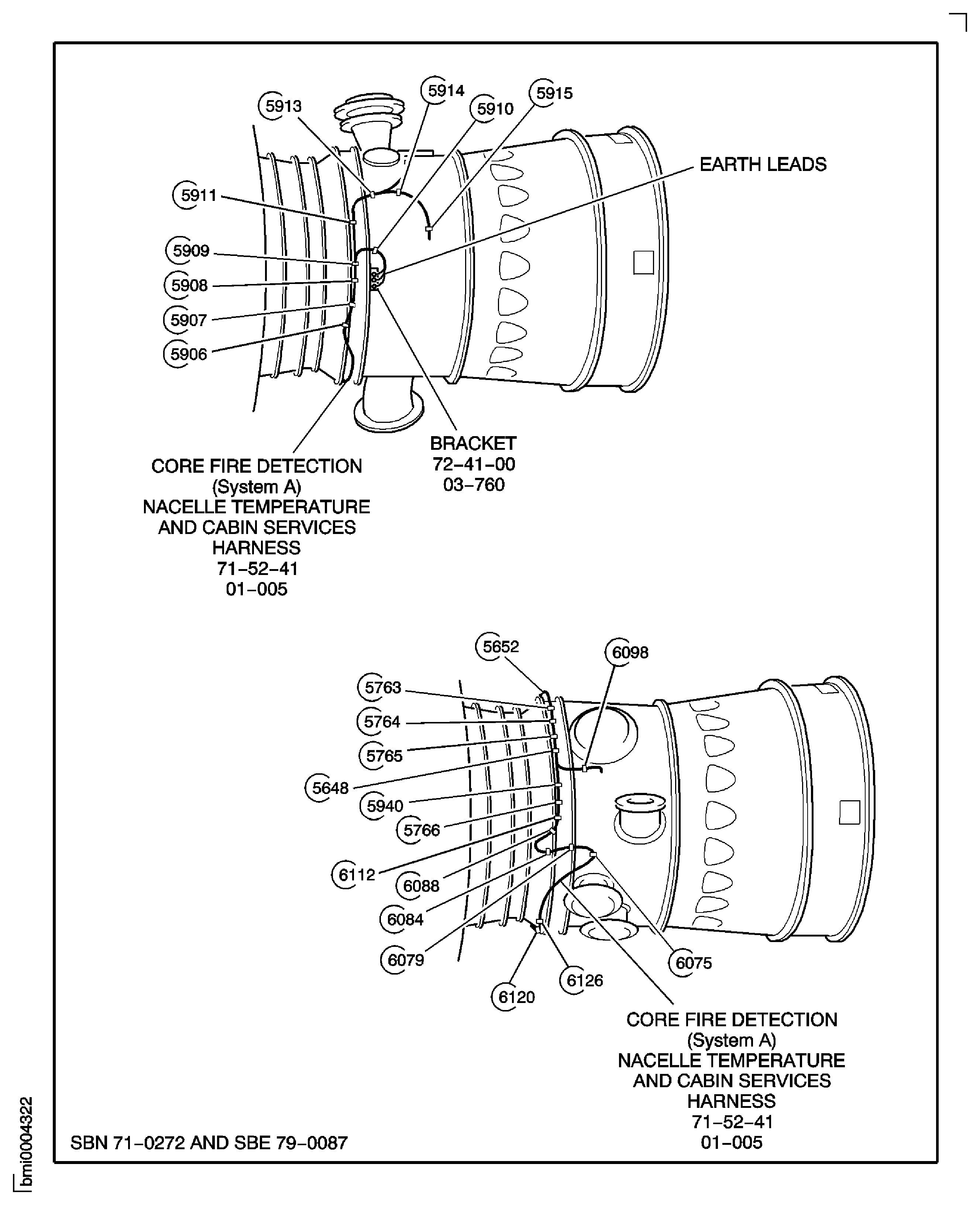 Figure: Pre SBN 71-0272 and Pre SBE 79-0087: Install the Fire Detection Harnesses, the Nacelle Temperature and Cabin Services Harness
