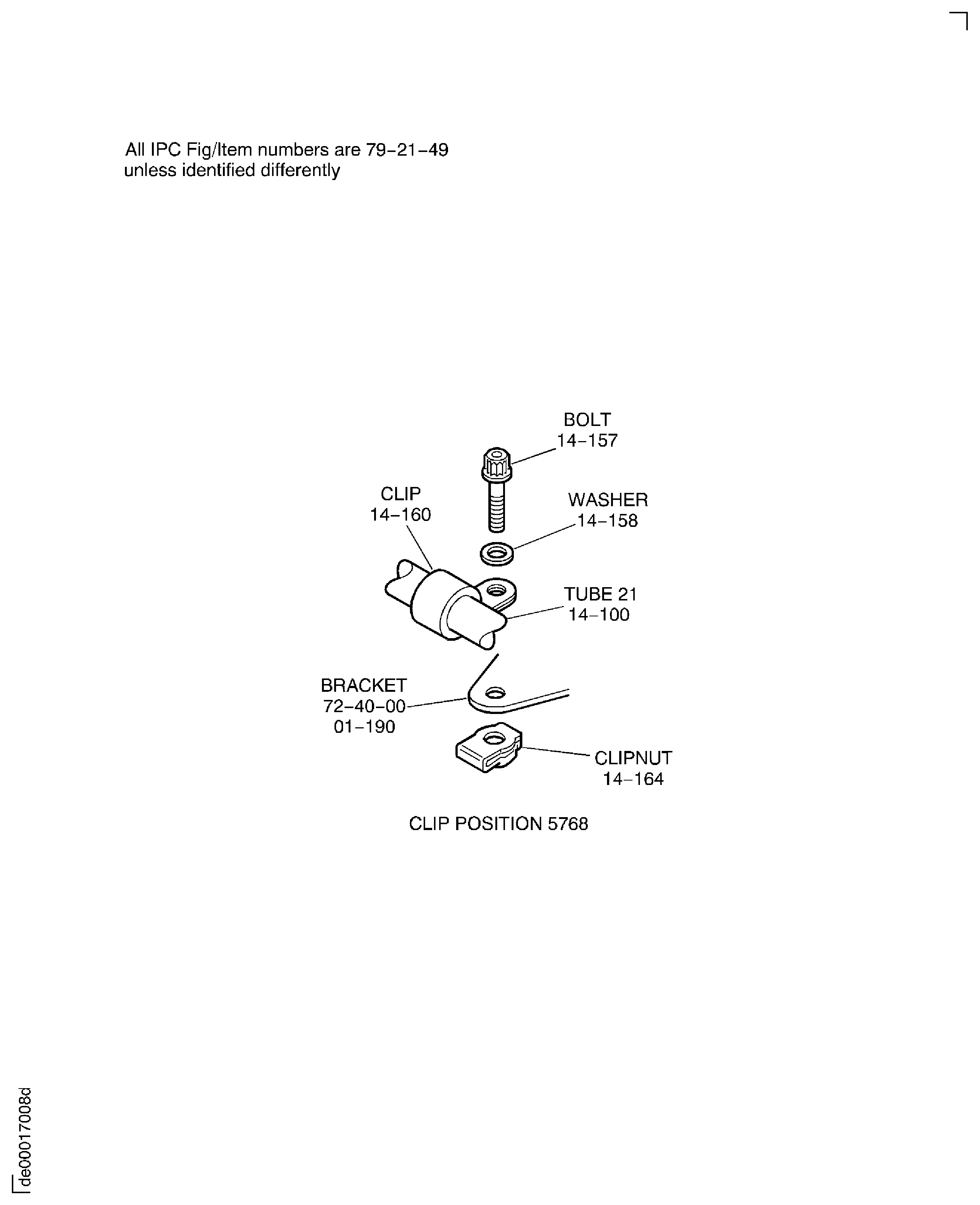 Connect the tube PNEUMATIC-PRESSURE INDICATING TUBES (36-21-49, 01-500) to the bracket ENGINE-SECURING FEATURES-HP COMPRESSOR CASES (72-41-00, 01-740) at clip position 5495 with the bolt PNEUMATIC-PRESSURE INDICATING TUBES (36-21-49, 01-525) clip PNEUMATIC-PRESSURE INDICATING TUBES (36-21-49, 01-529) spacer and clipnut PNEUMATIC-PRESSURE INDICATING TUBES (36-21-49, 01-532).