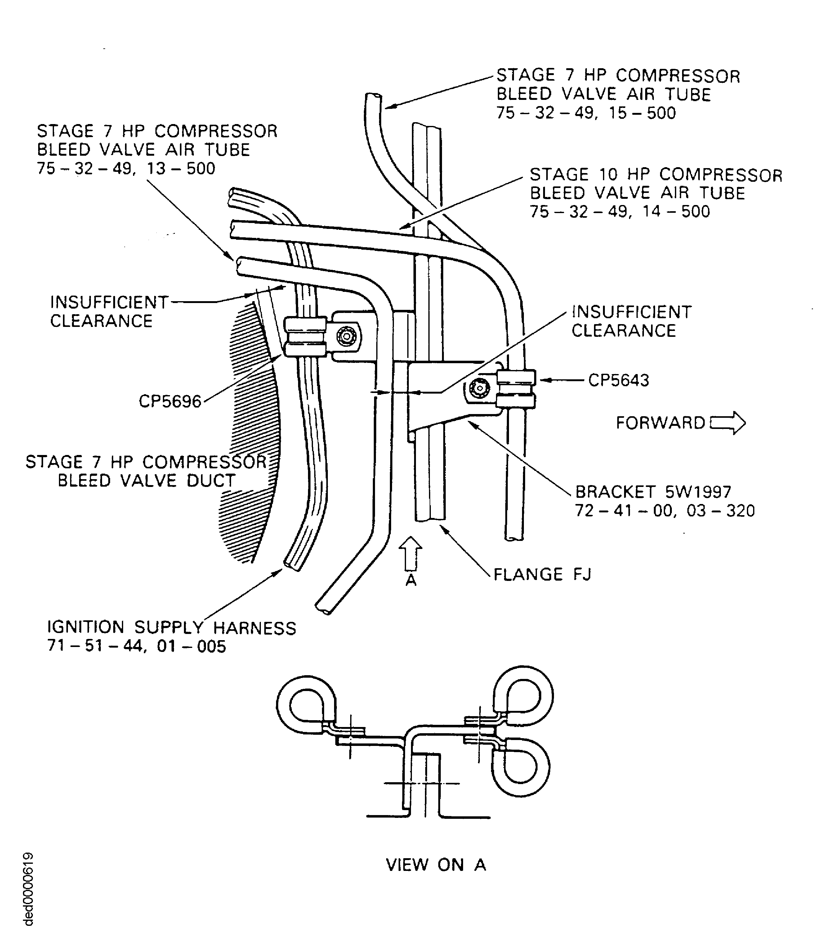 Figure: Install the Electrical Harnesses Pre SBE 72-0080: Check the Clearances at Clip Position 5696/5643