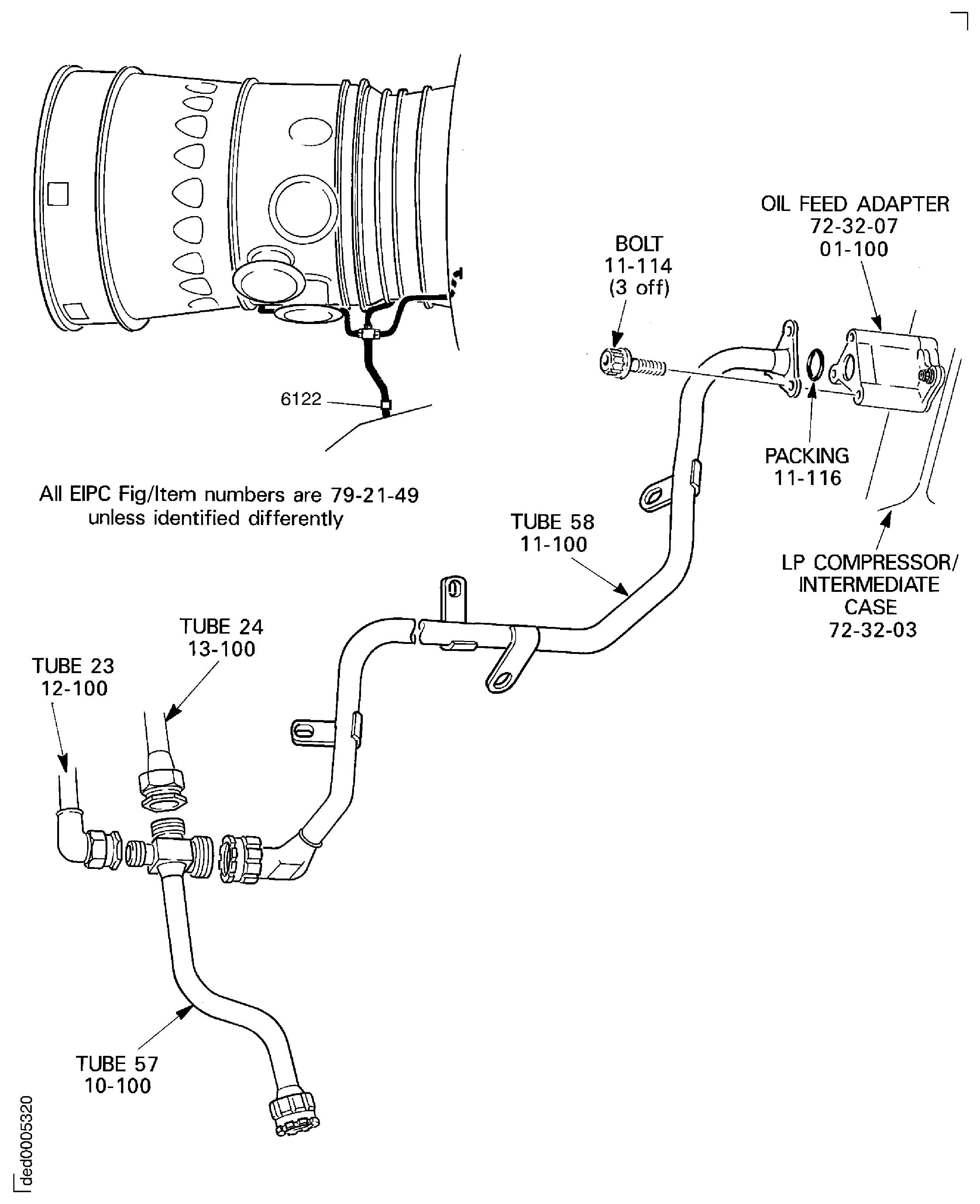 Connect the tube 53 to the tube 138 and torque the tube connector to 159 to 177 lbf.in (18 to 20 Nm). Safety with CoMat 02-126 LOCKWIRE.