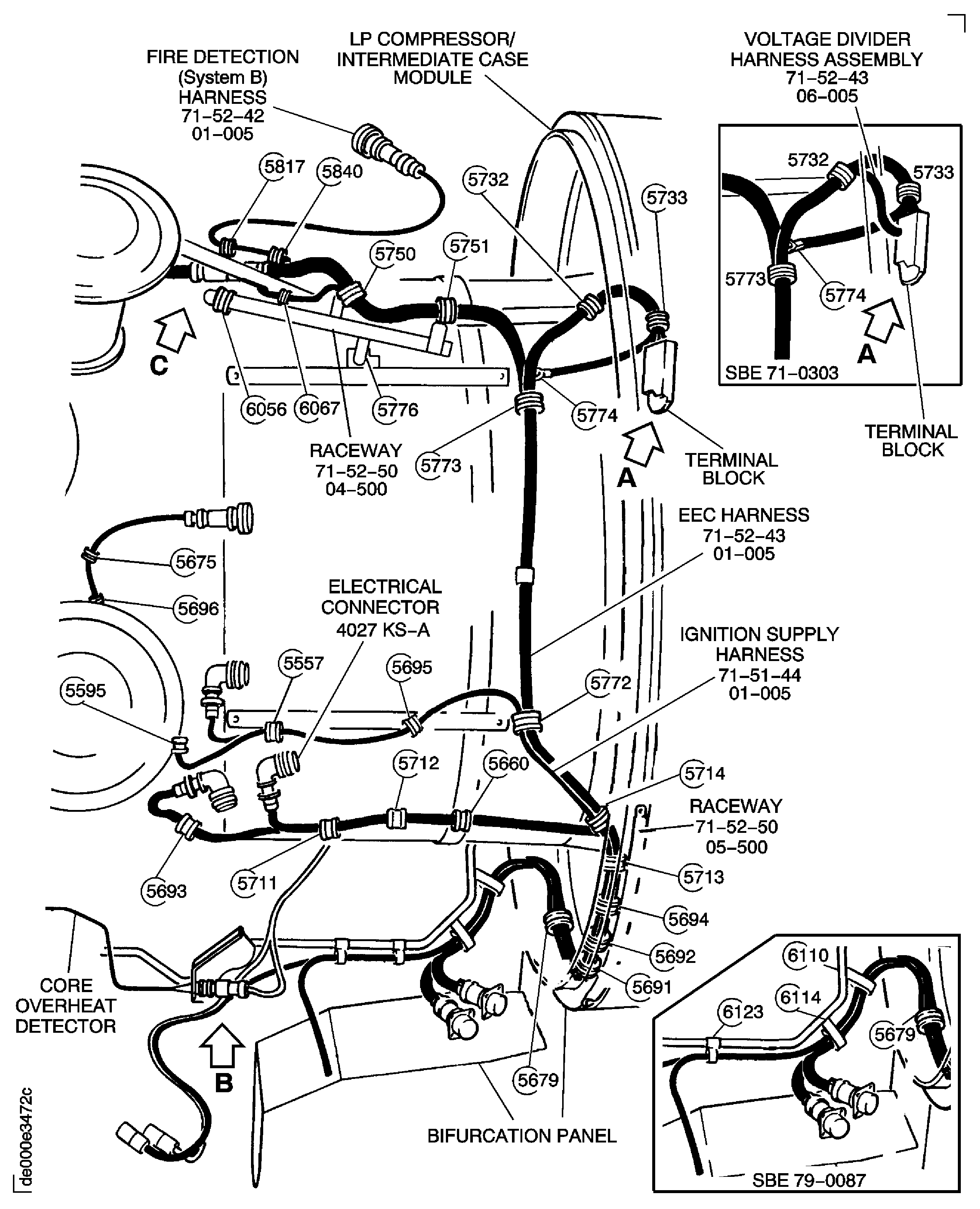 SBE 71-0109 : Route and Attach the Right Hand Side and Left Hand Side EEC Harness Looms Together at the Bifurcation Panel