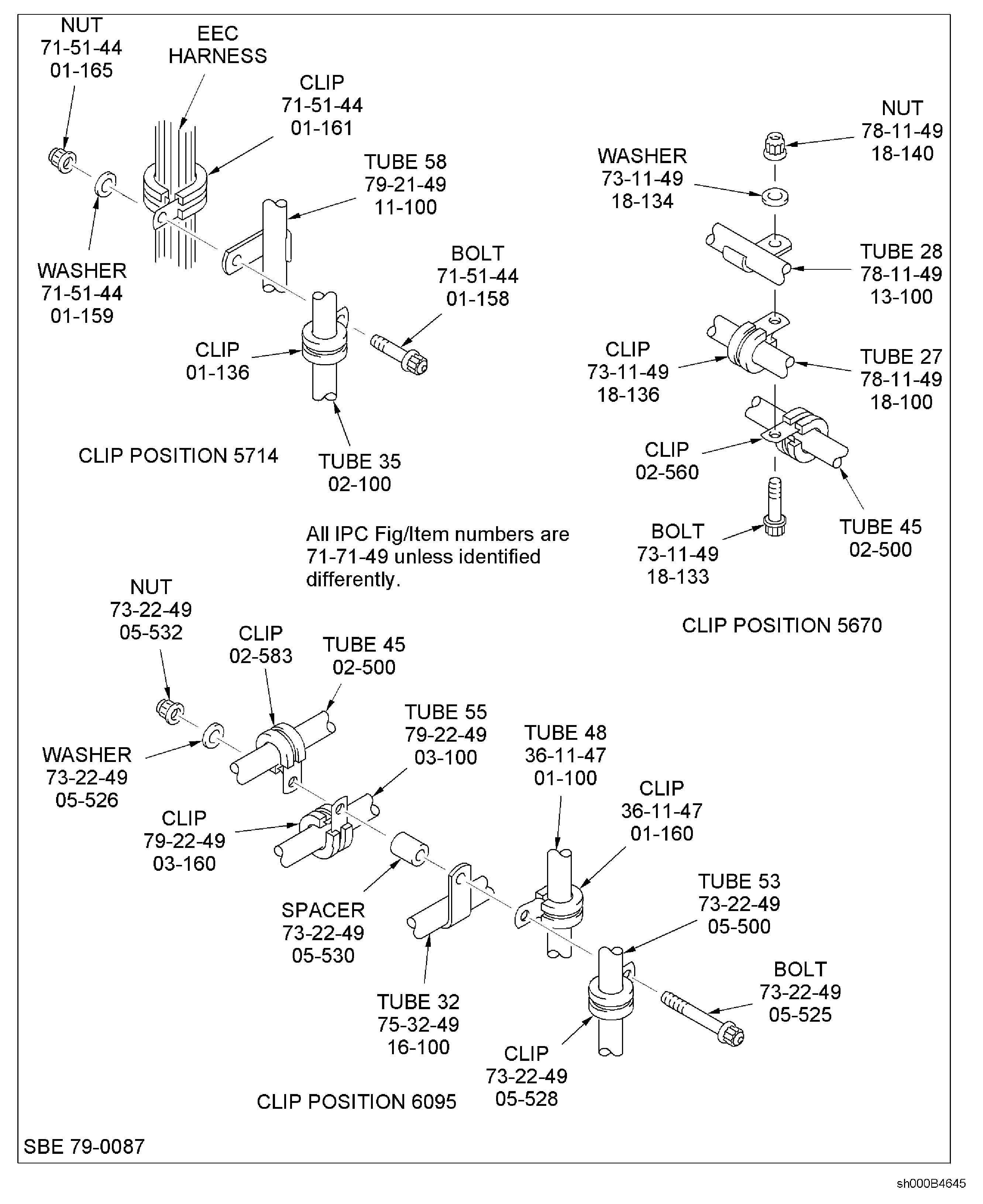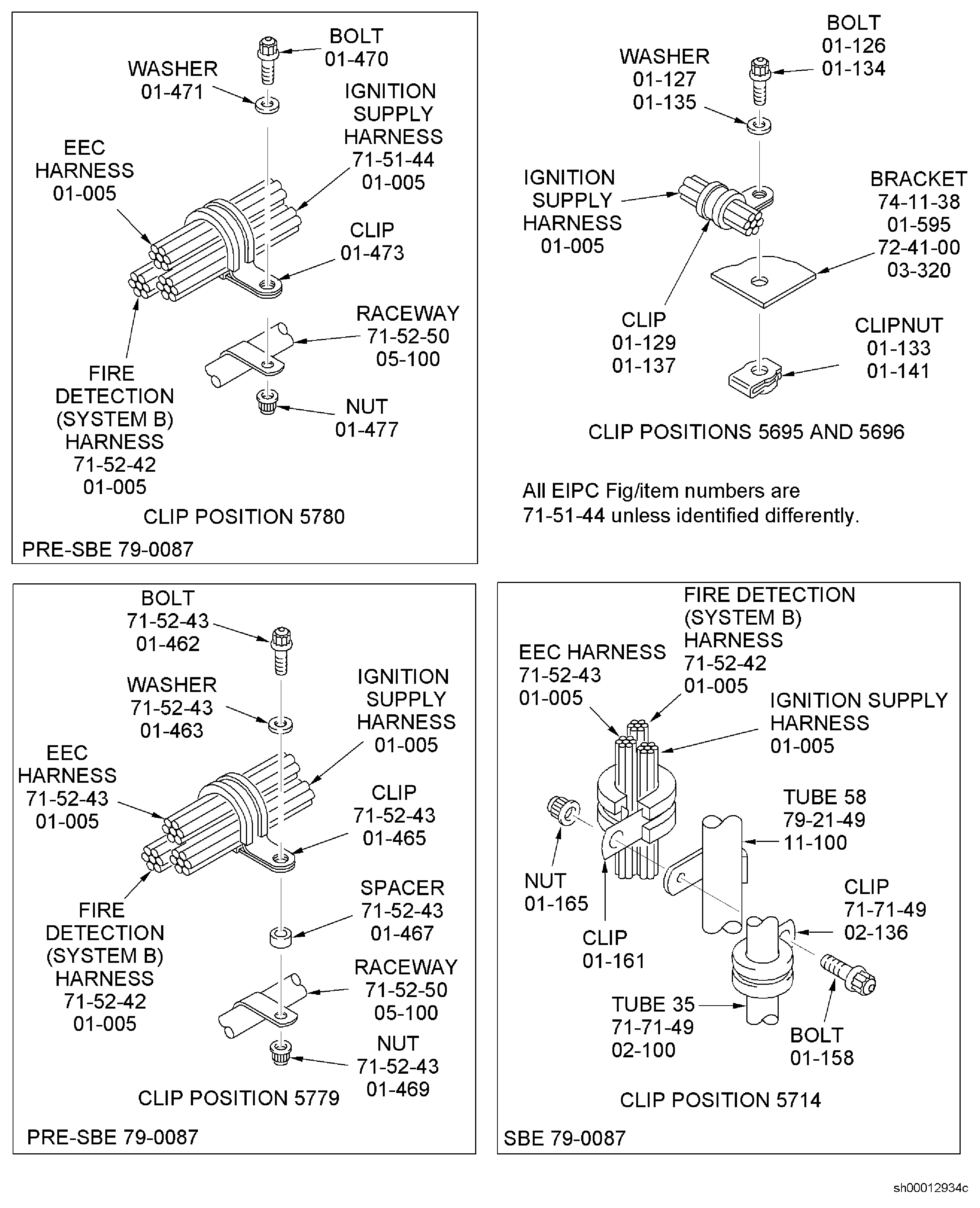 Figure: Pre SBE 72-0132, Pre SBE 79-0087, SBE 79-0087, Pre SBE 71-0303, SBE 71-0303, Pre SBE 72-0553 and SBE 72-0553: Install the Electrical Harnesses