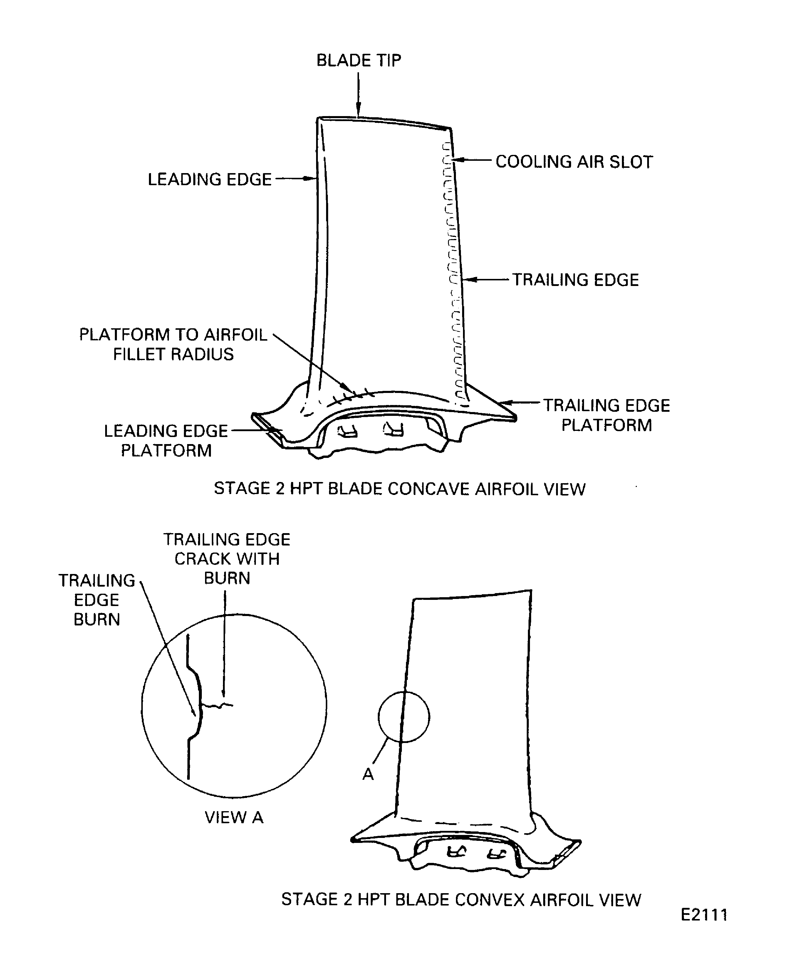 If the erosion or burn on the airfoil or platform shows internal areas. The internal areas are where the air goes that cools the blade