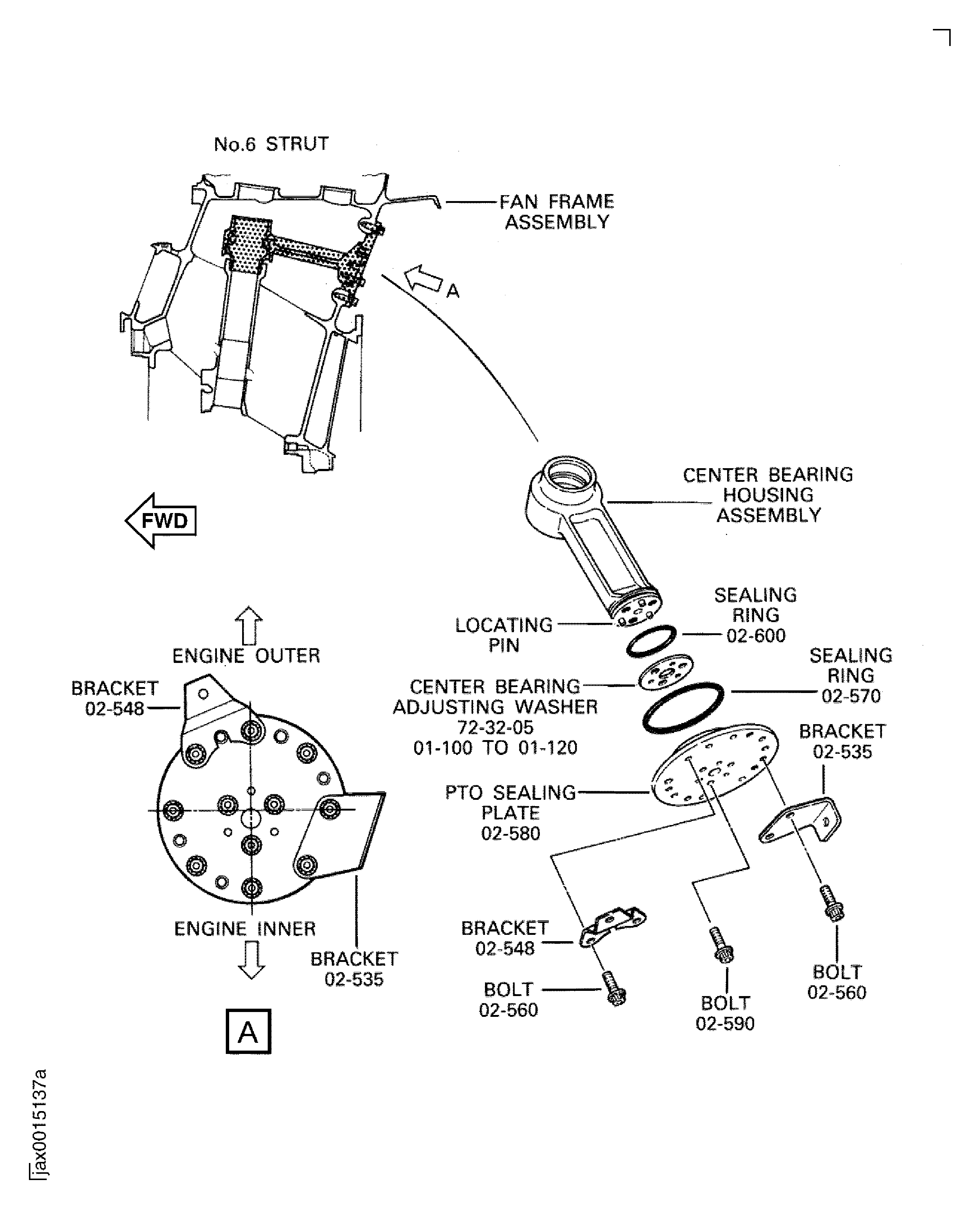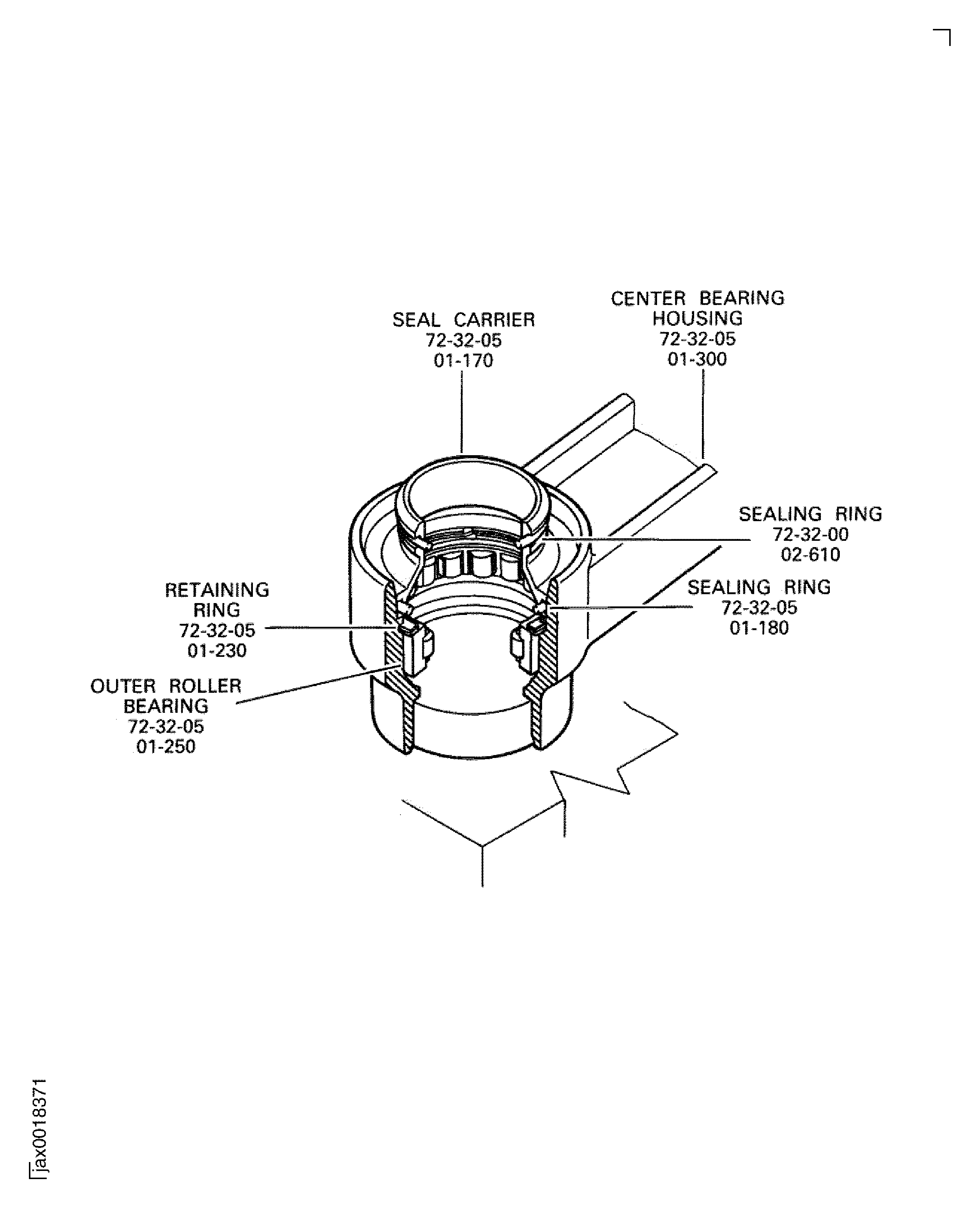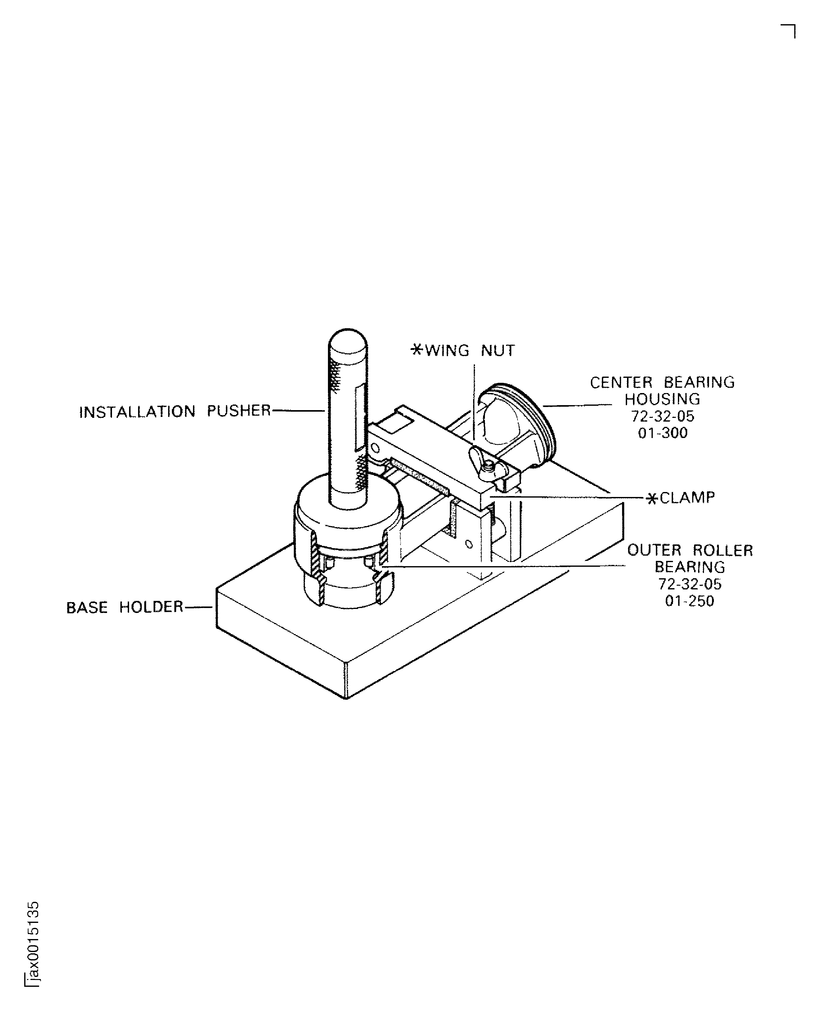 Install the center bearing housing ENGINE-PTO DRIVE SHAFT BEARING AND SUPPORT (72-32-05, 01-300) to IAE 1J12432 Base holder base holder 1 off.
