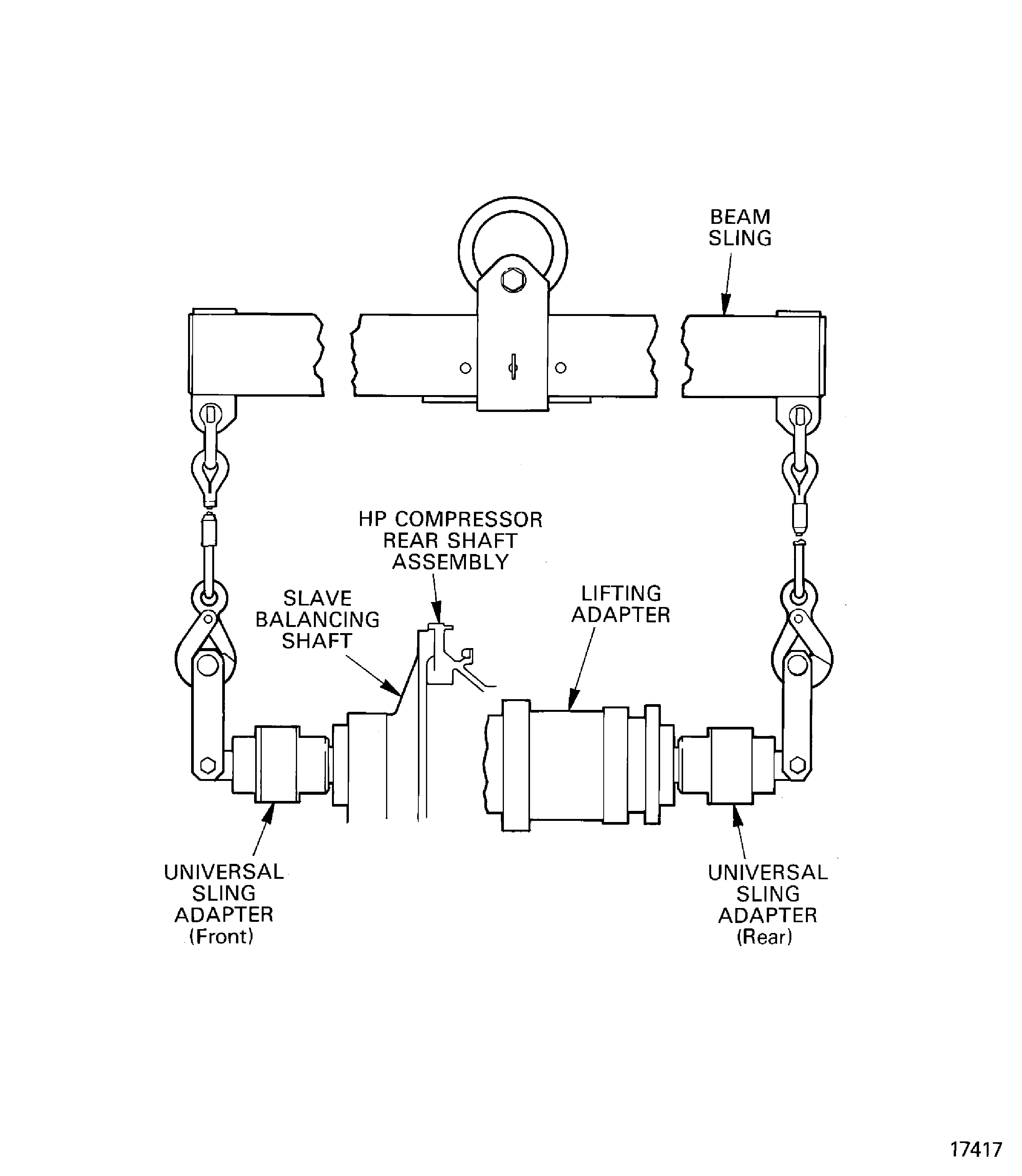 Install IAE 1R18647 Beam sling 1 off on to the HP compressor rear shaft assembly. Refer to Figure.
