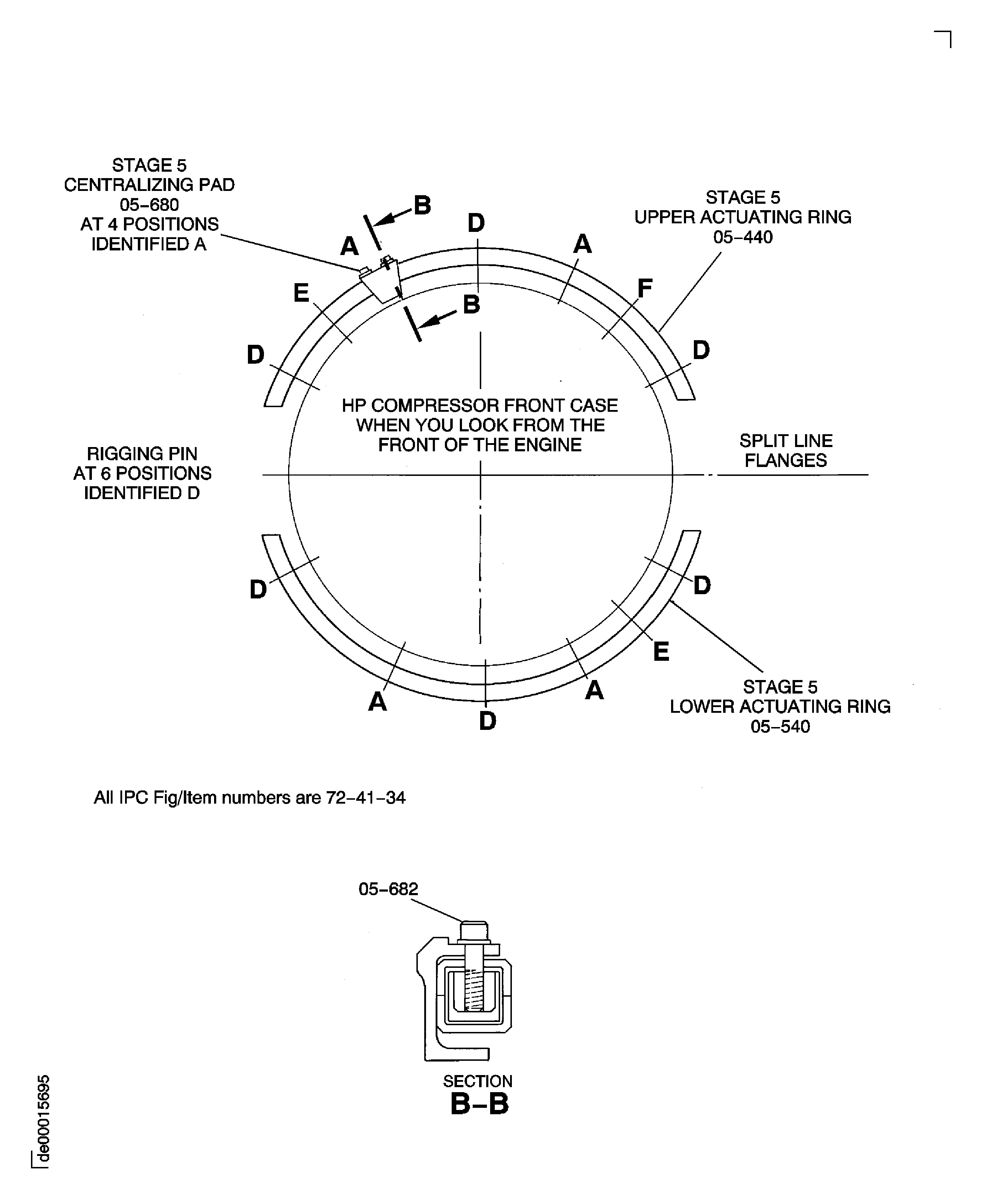 Figure: SBE 72-0084 Install the stage 5 actuating ring centralizing pad and rigging pin brackets