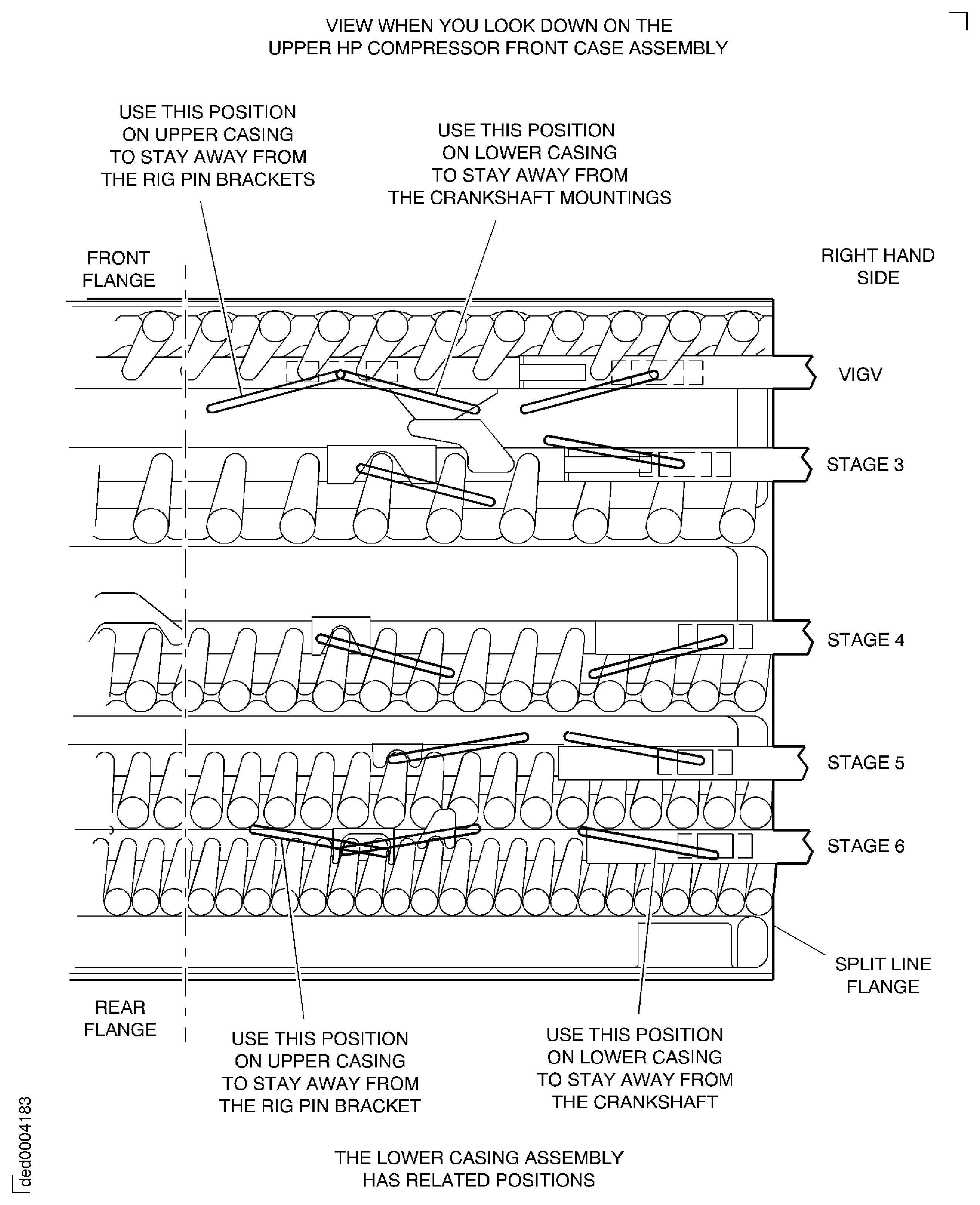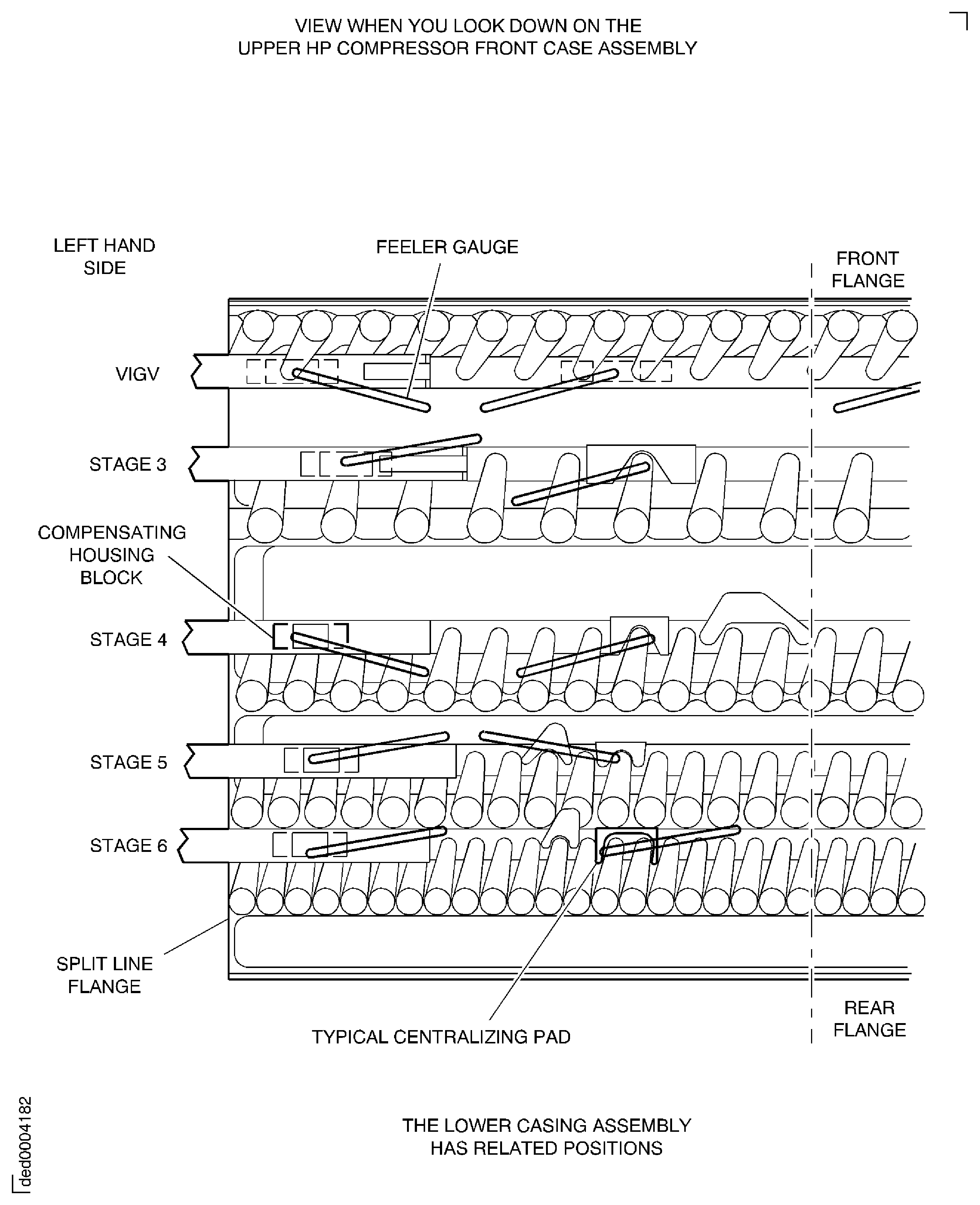 This TASK gives the general procedure to check and set the clearances between the HP compressor front cases (VIGV stage and stages 3 to 6) and the VSV upper and lower actuating ring assemblies, refer to Figure. Do this procedure when instructed to do so from the applicable build procedures during the assembly of the HP compressor front case. Refer to the following procedures.
