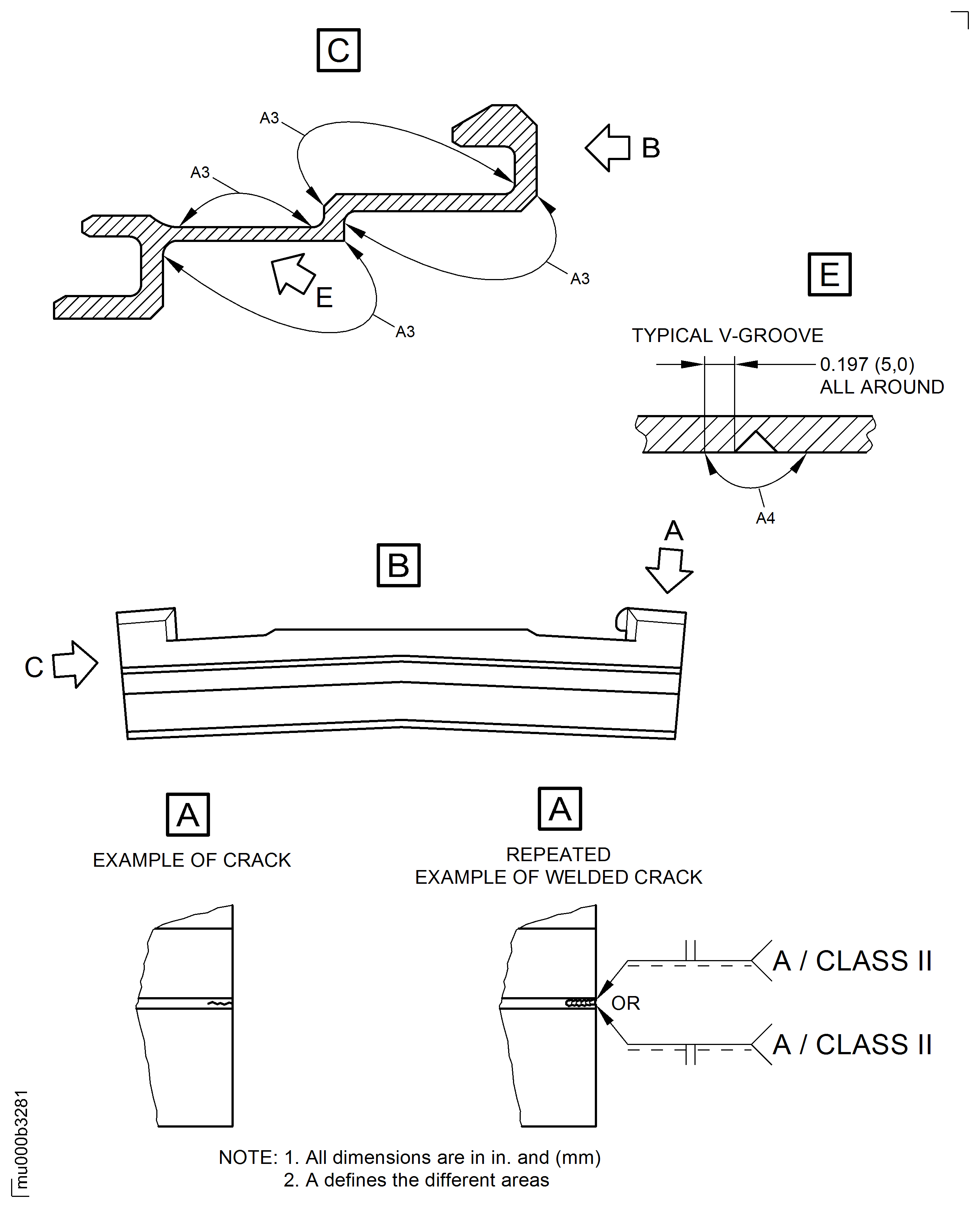 Keep material removal to a minimum to remove cracks. Remove all braze material from area A4.