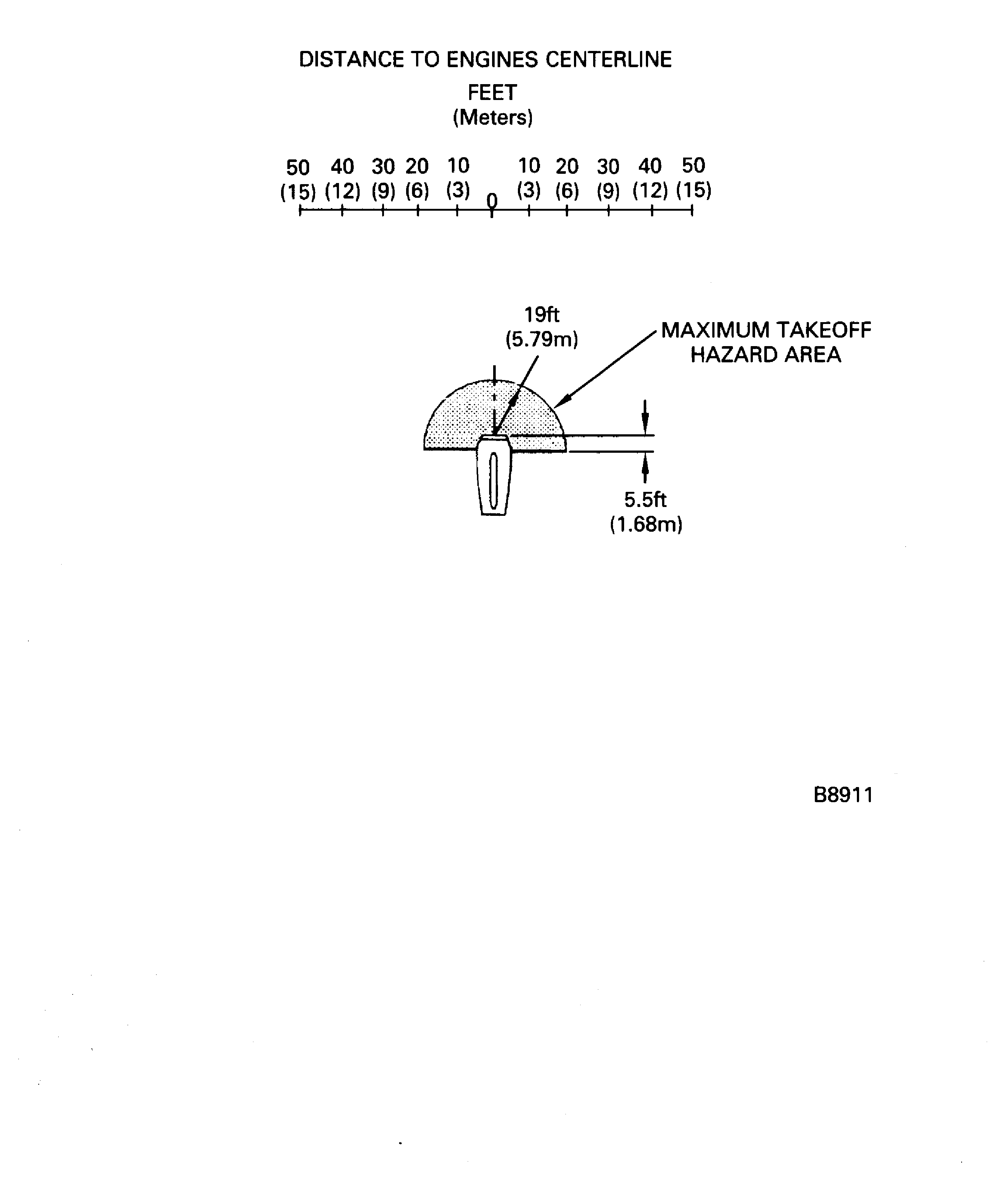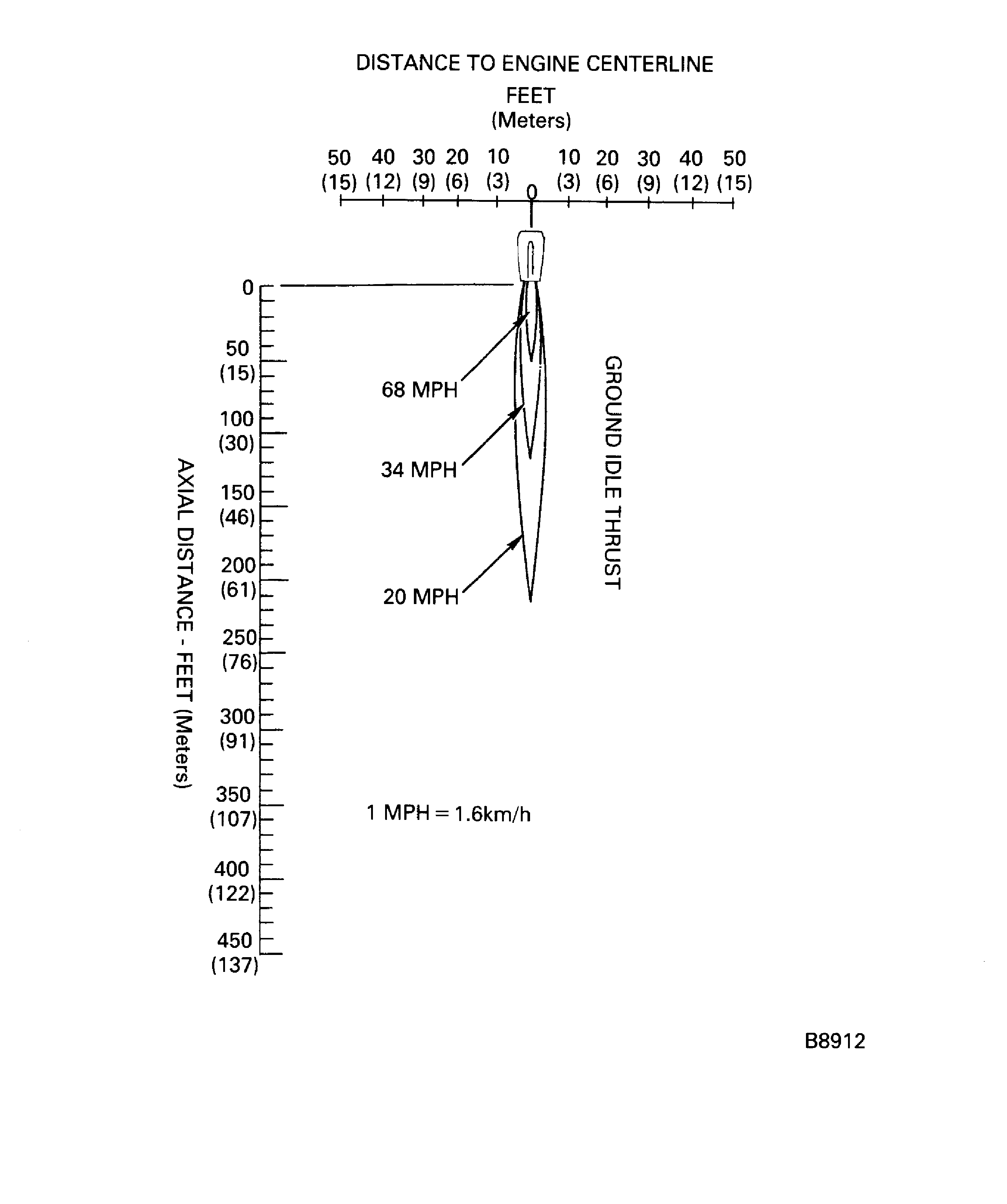 Jet wake velocity contour air intake (maximum takeoff thrust)