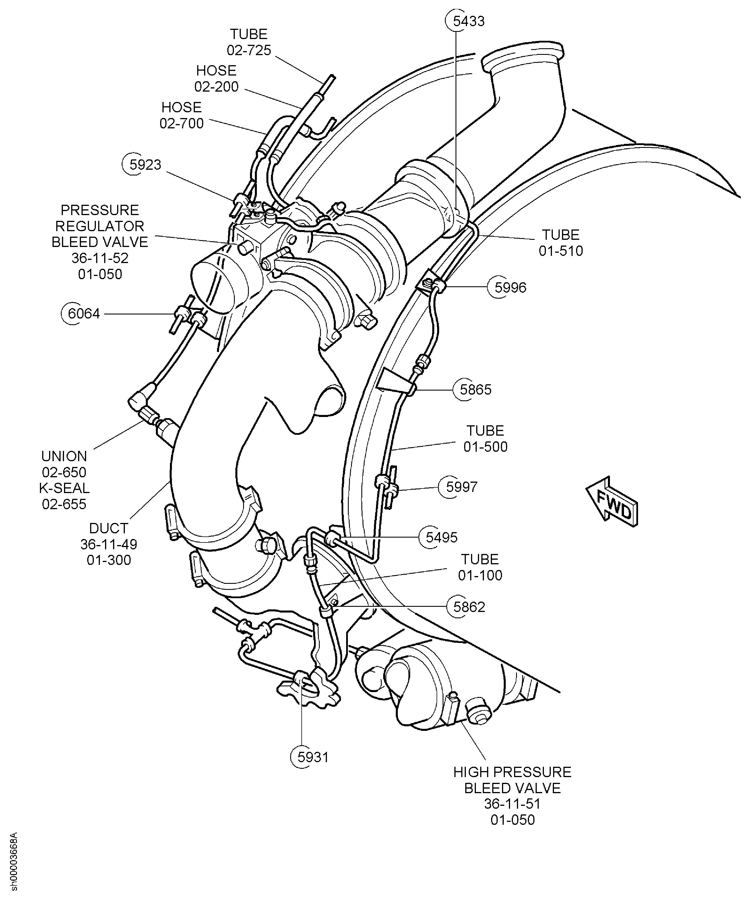 Figure: Pre SBE 36-0007: Install the Cabin Bleed Air System Sense Tubes