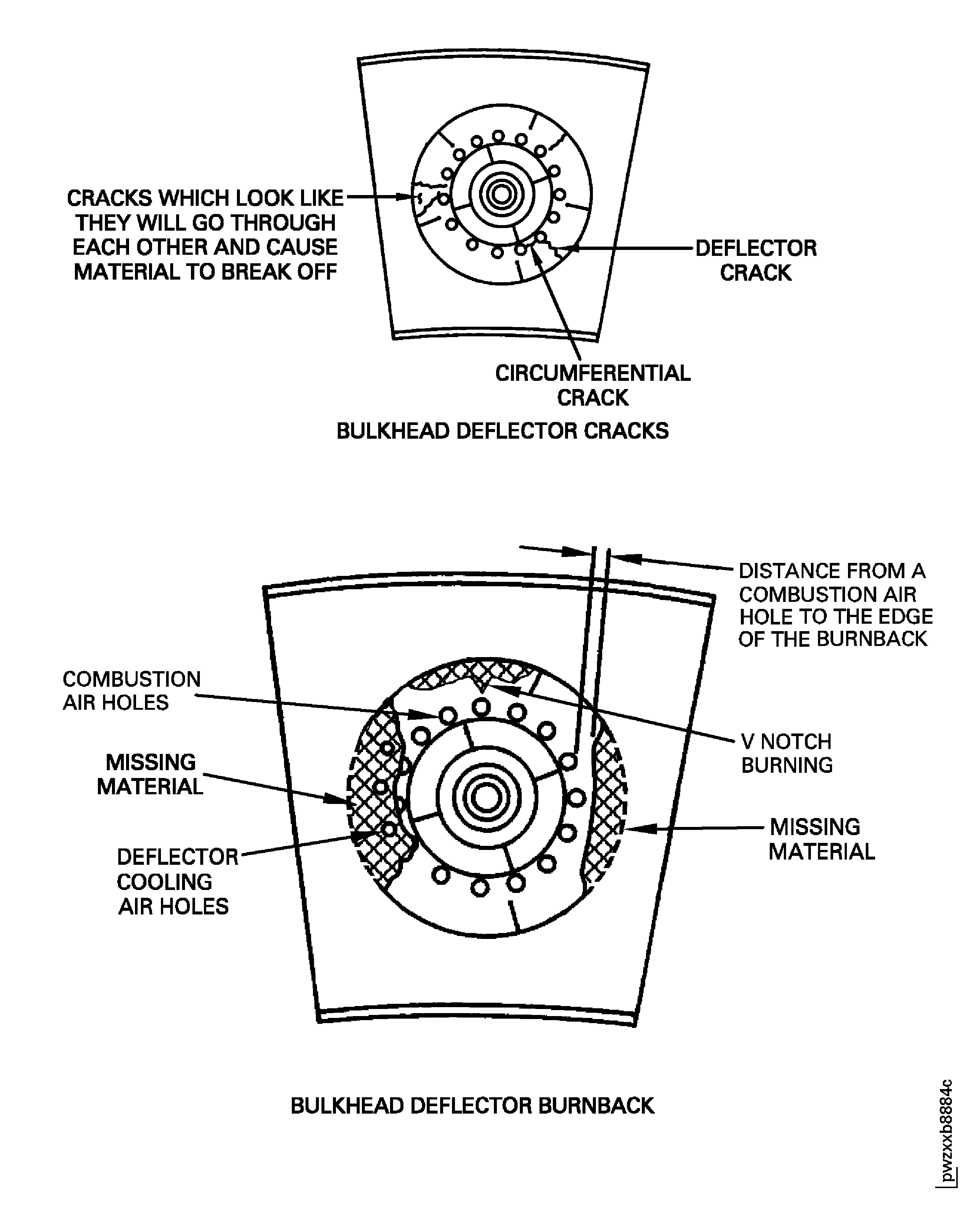 Combustion Chamber Bulkhead Deflector Cracks and Burnback