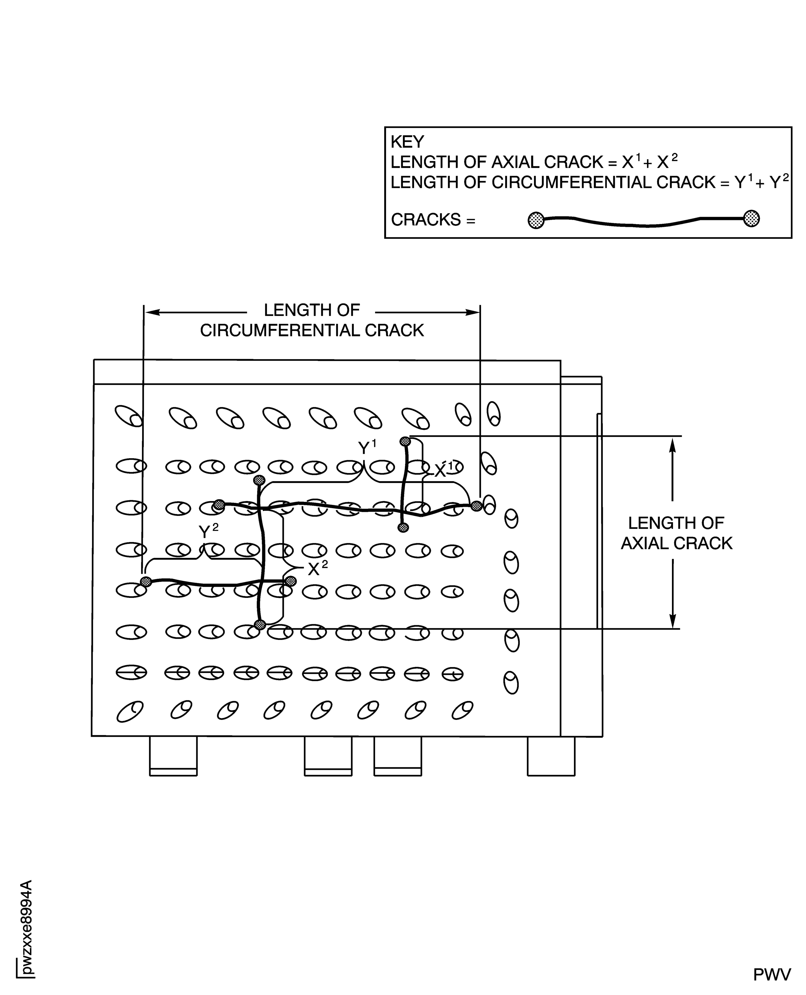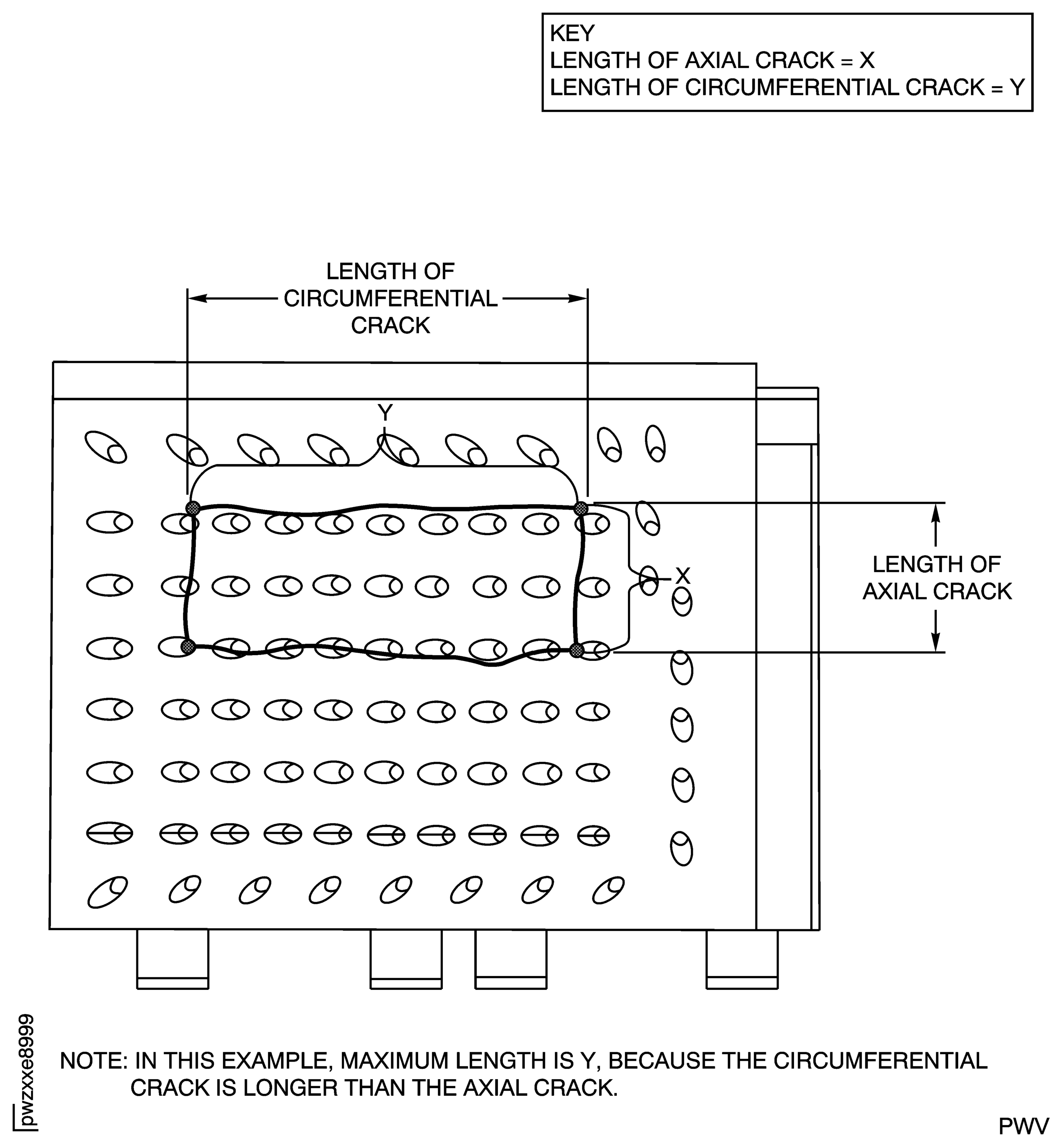 A combined crack that is longer than or equal to 1.20 in. (30.48 mm) axially or 1.500 in. (38.10 mm) circumferentially.