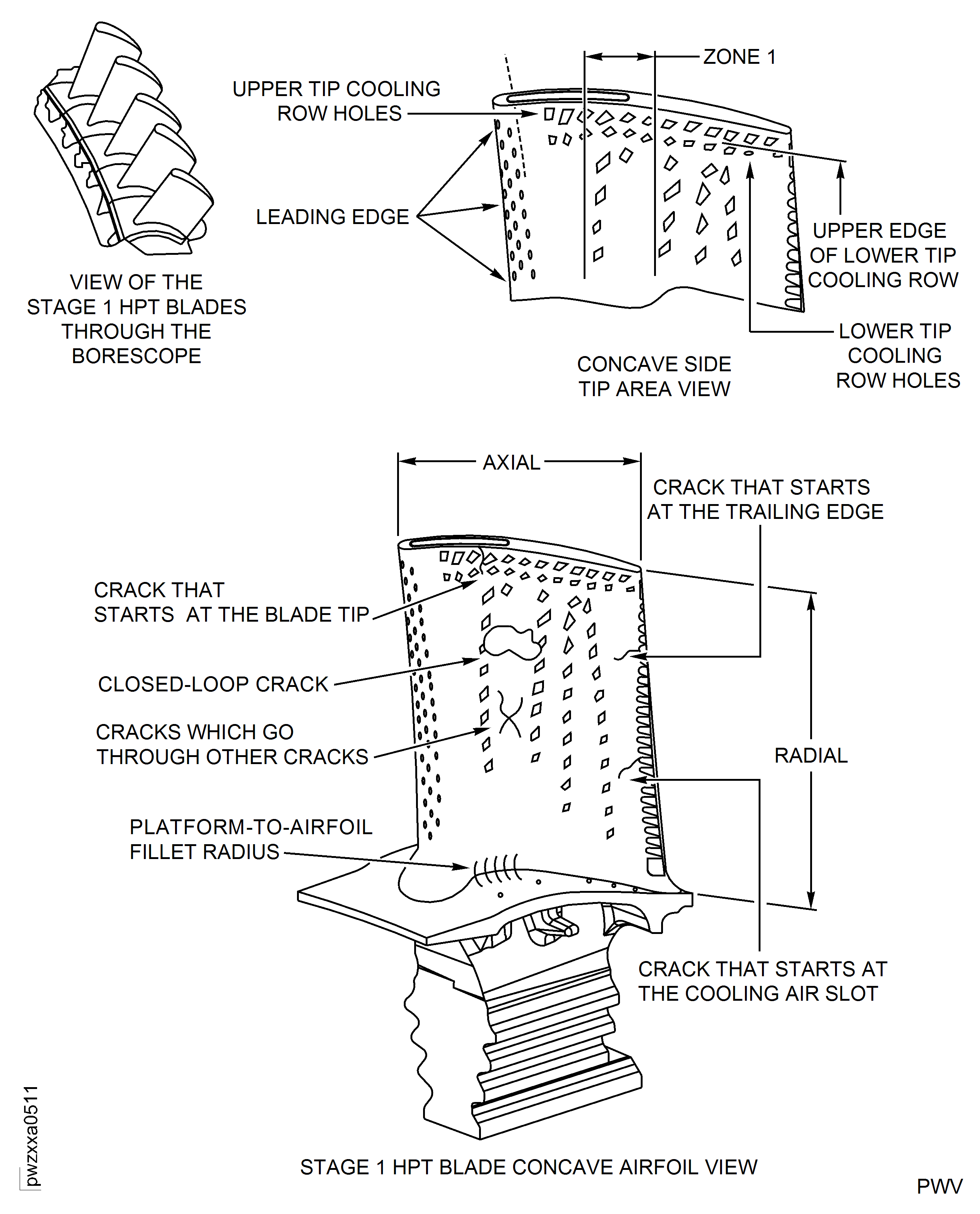 SUBTASK 72-00-00-220-120 Examine the Stage 1 HPT Blades for Cracks on the Airfoil