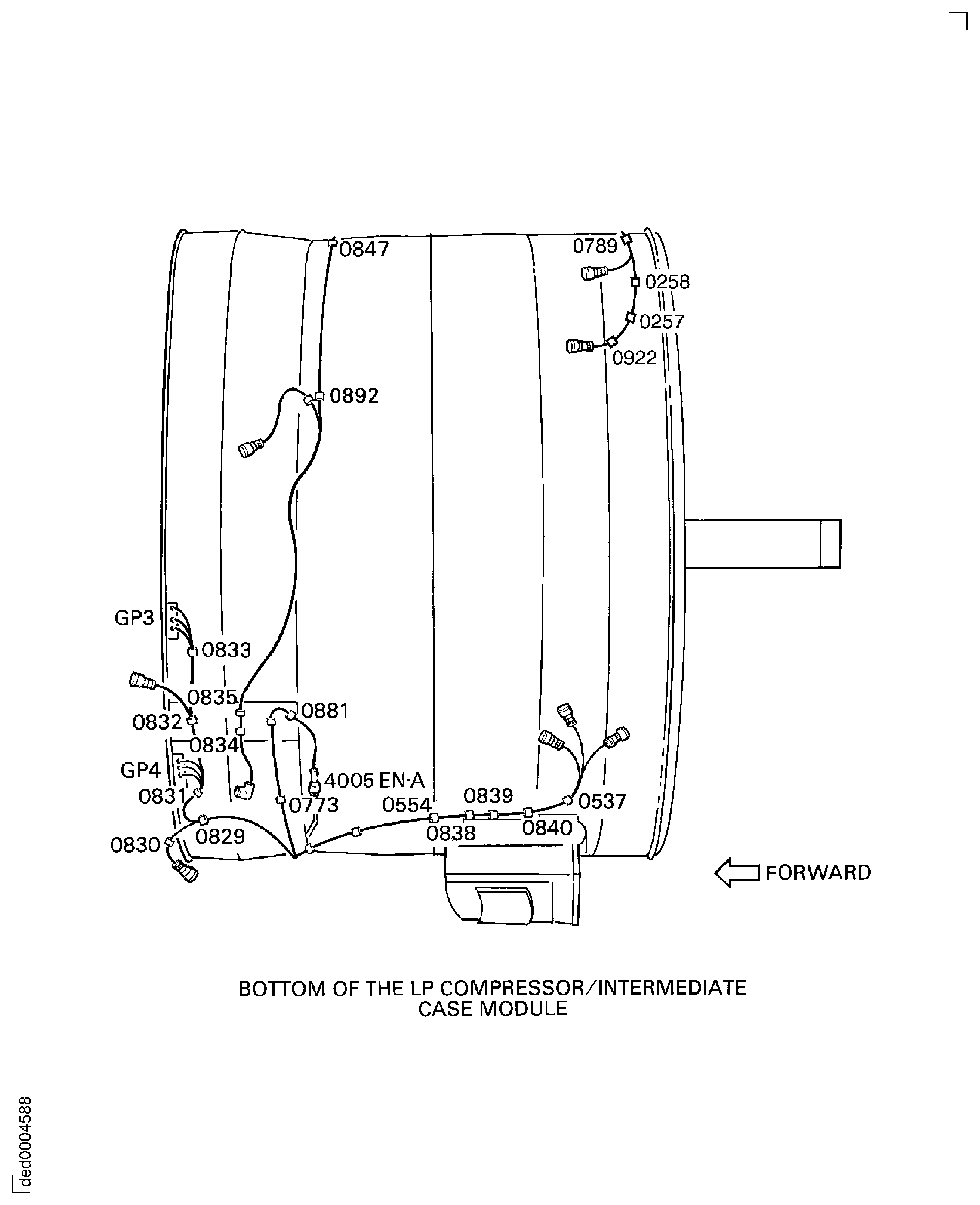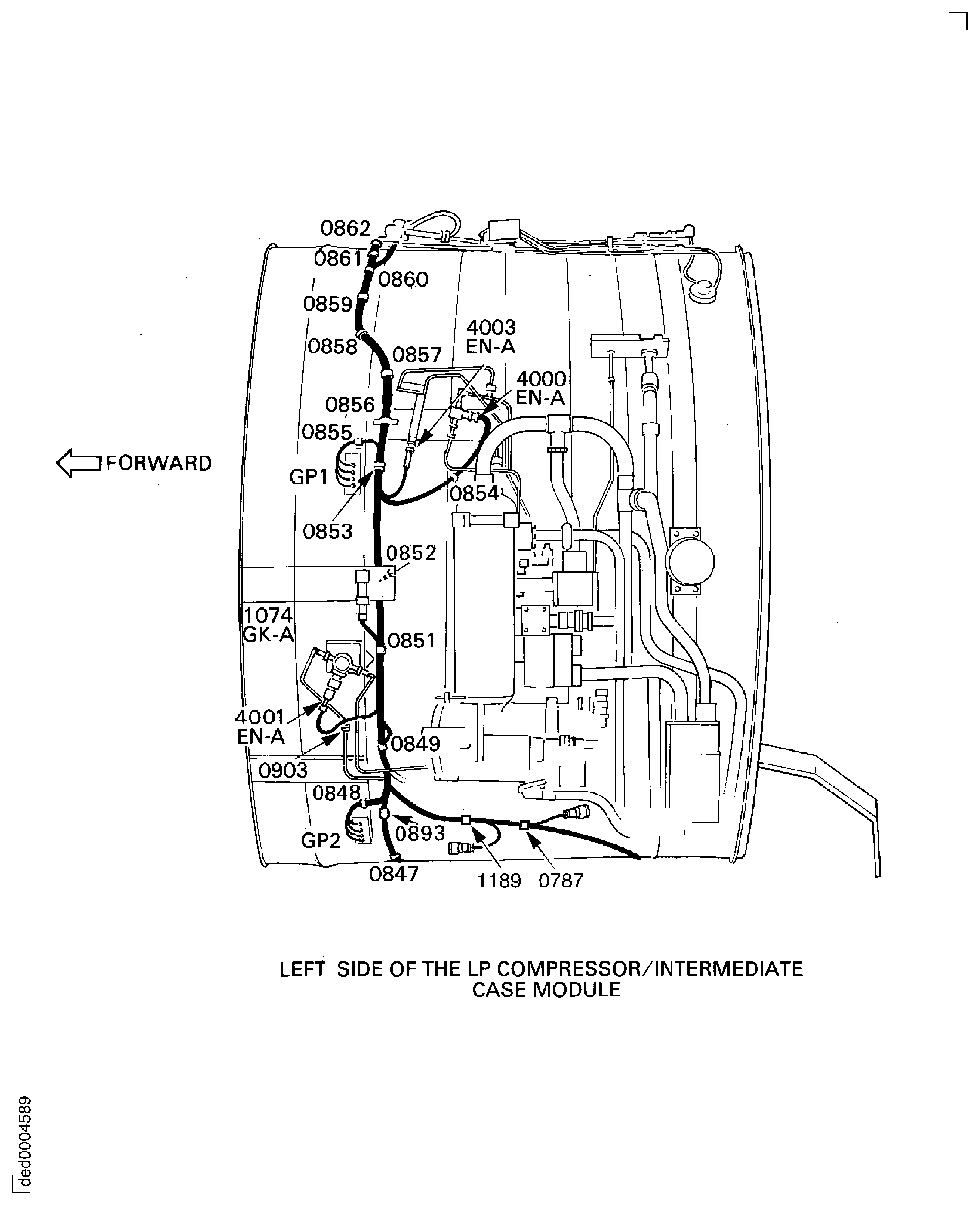 During this procedure do not disconnect the electrical harness receptacles from the LP compressor/intermediate case EEC harness.Disconnect the electrical harness receptacles.