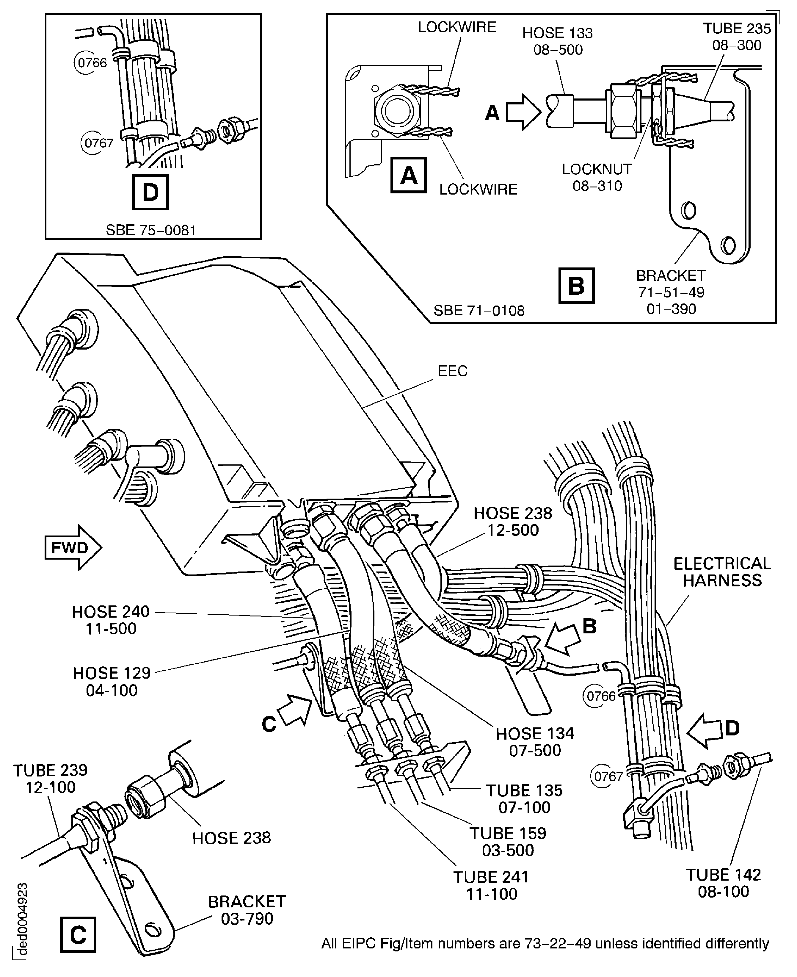 SBE 75-0081: Remove the EEC flexible hoses and the tube 235