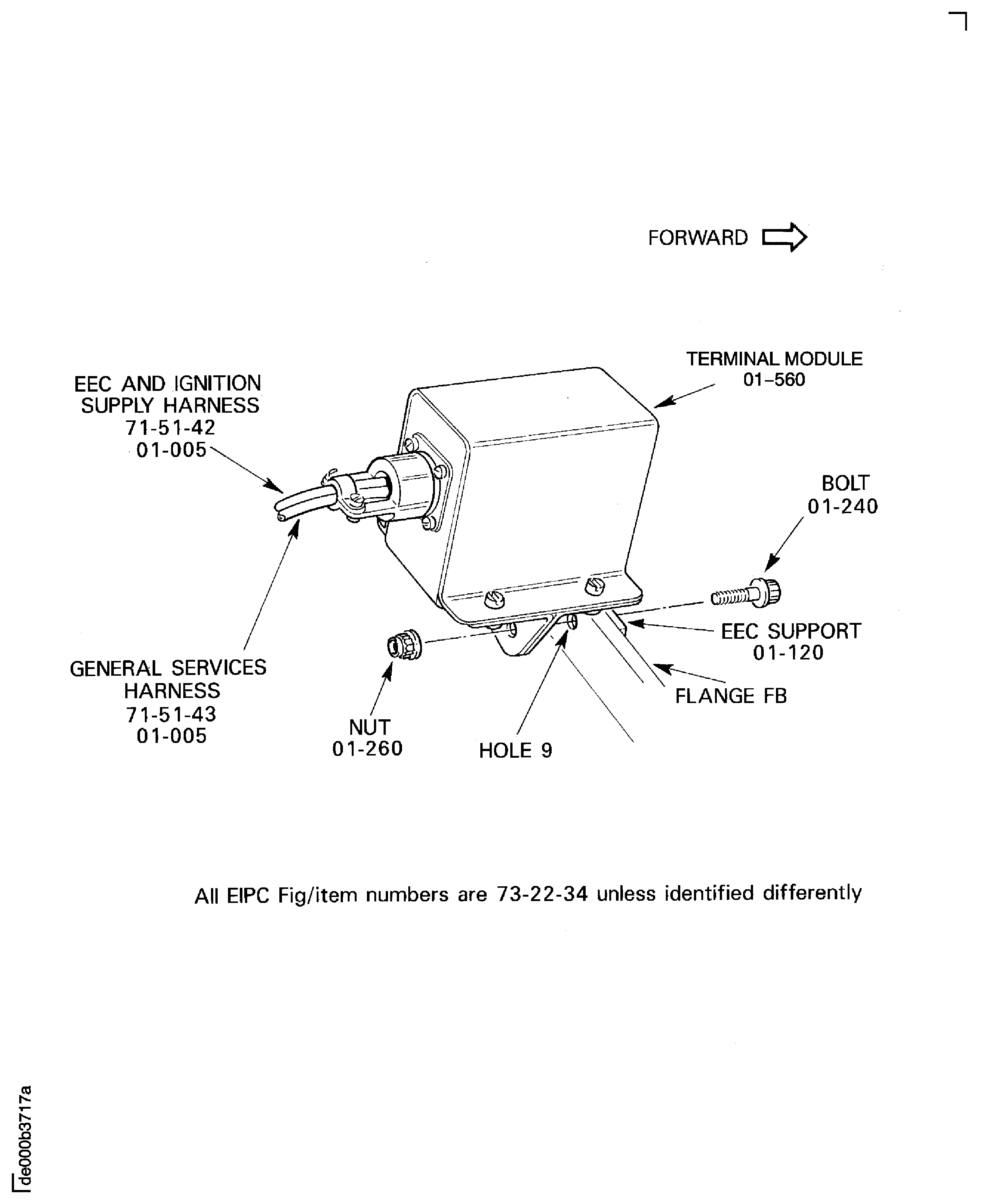 Hole No. 1 is at 12.5 degrees from the engine top position on the flange FB when you look from the rear of the engine.Remove the bolt and the nut which attaches the terminal module to the flange FB at the hole 9, Figure.