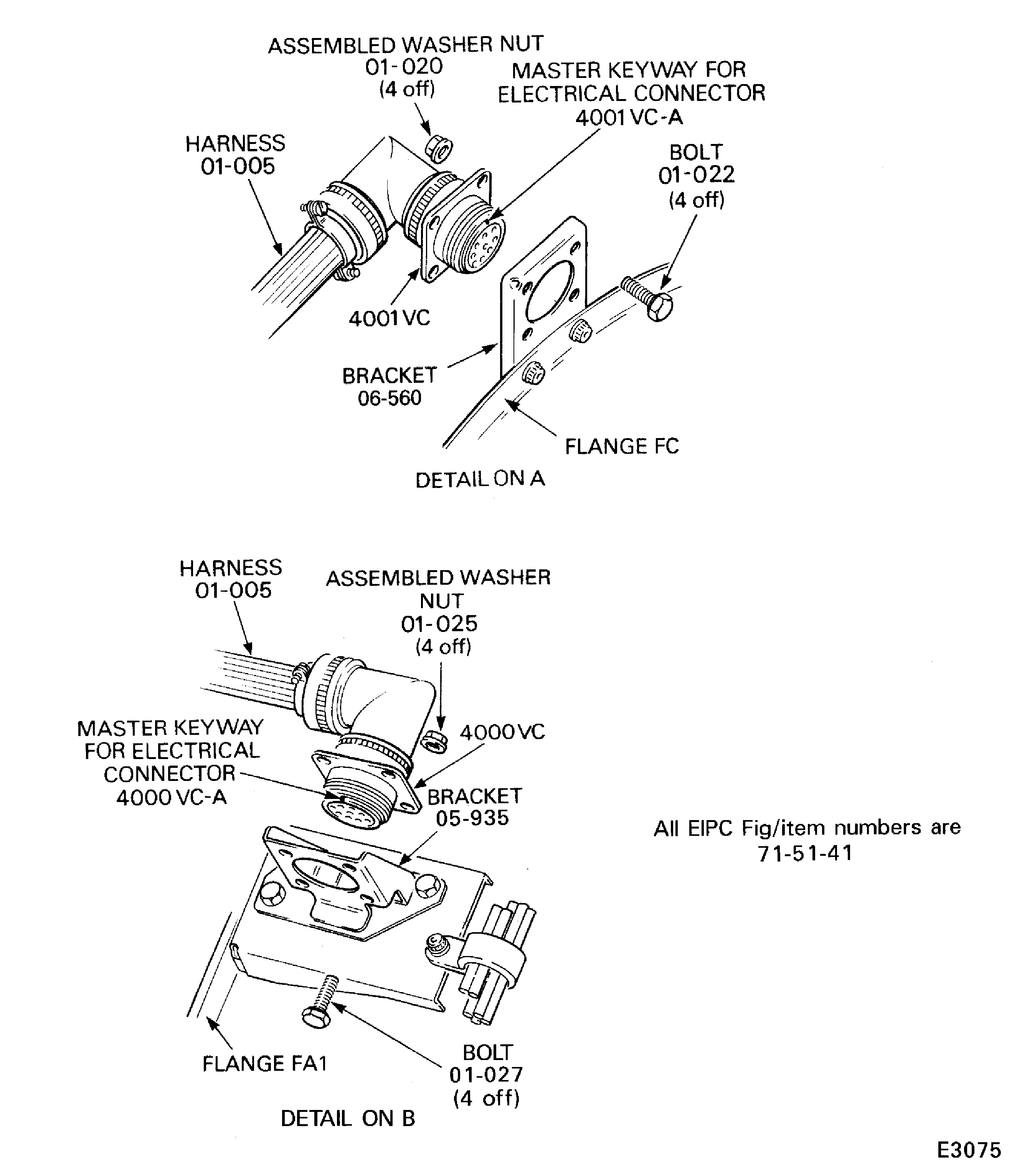 4000VC-A and 4001VC-A EEC Fan Harness And Ignition Supply Harness (71-51-42, 01-005) from the electrical harness receptacles attached to the flange brackets, refer to Figure.