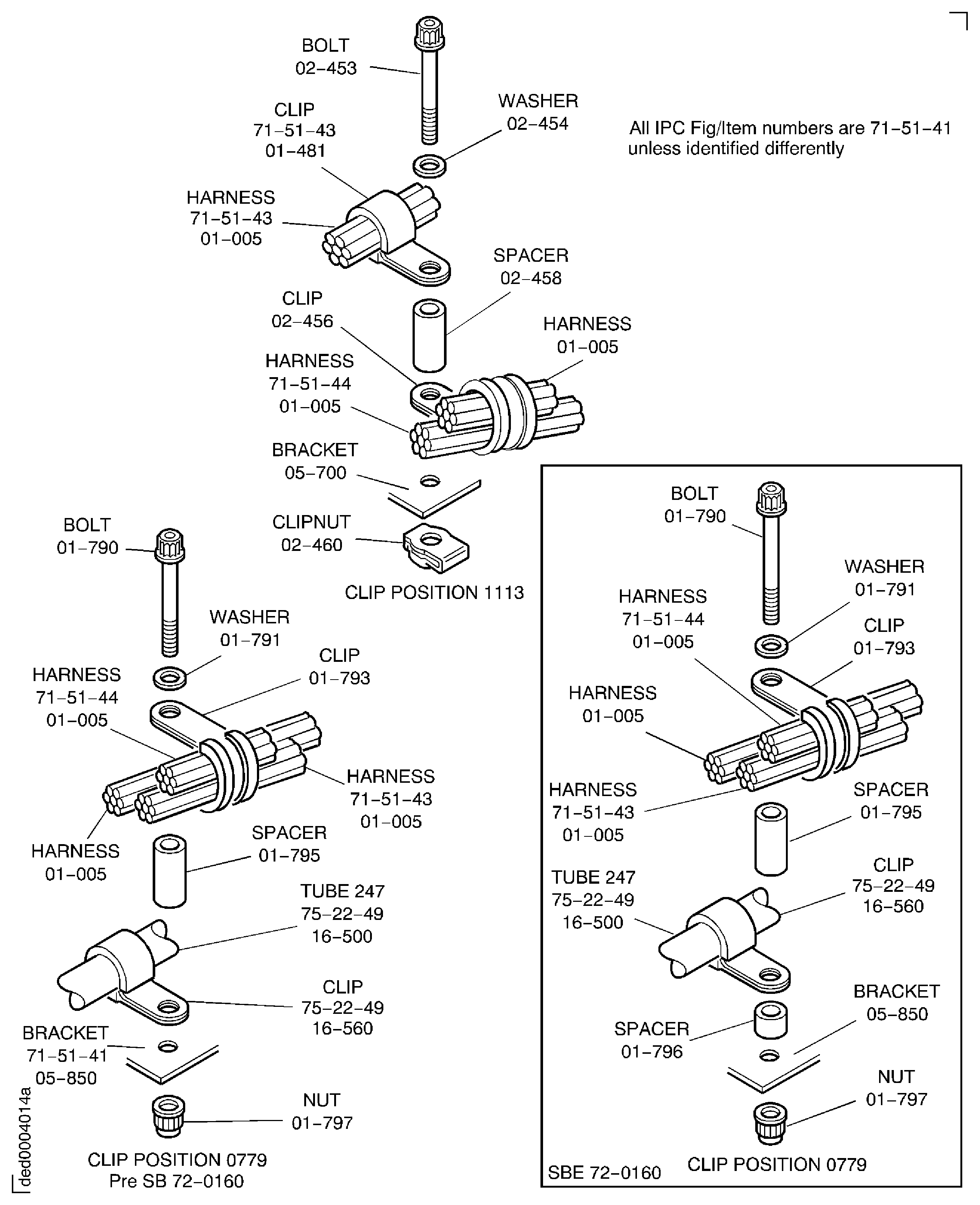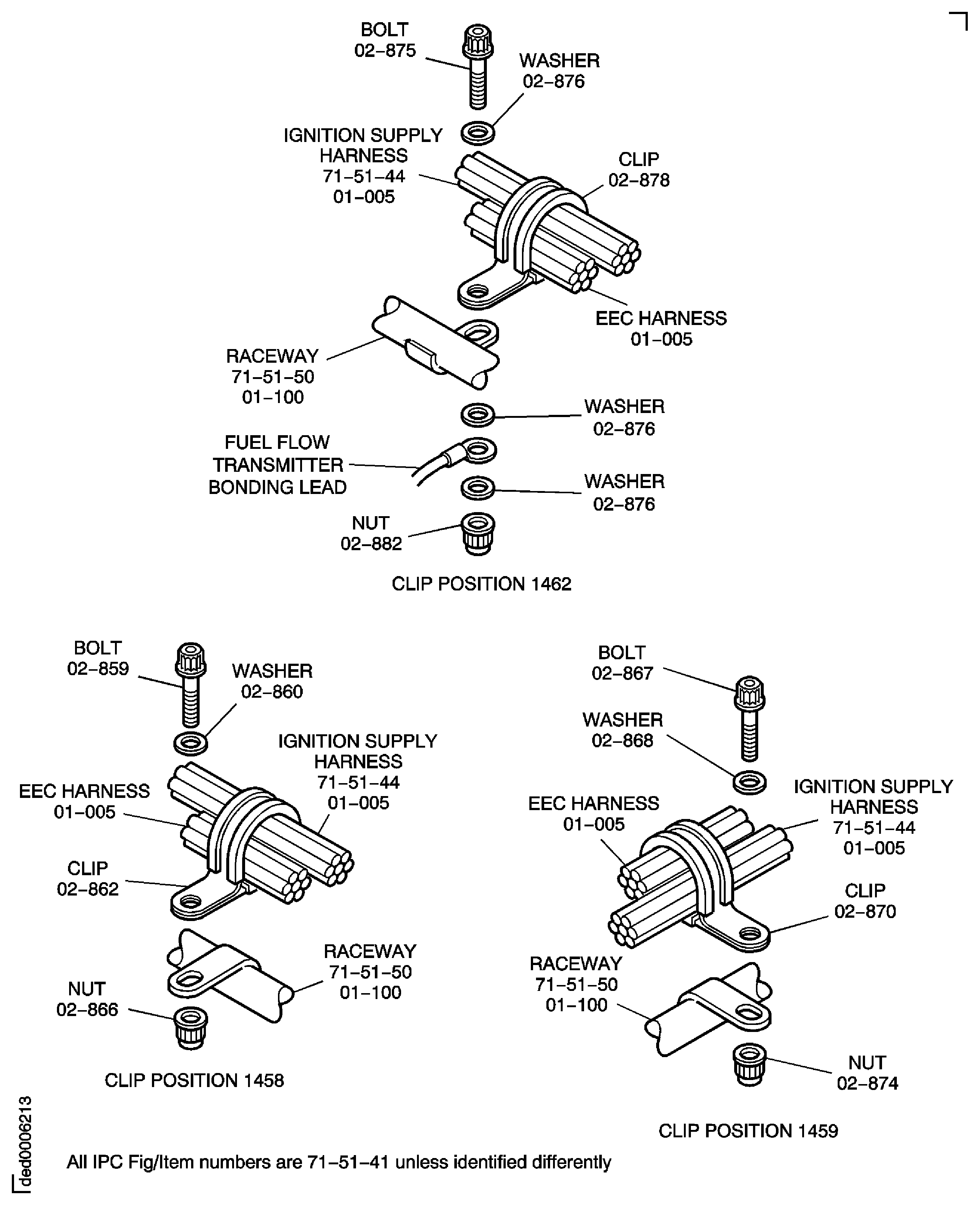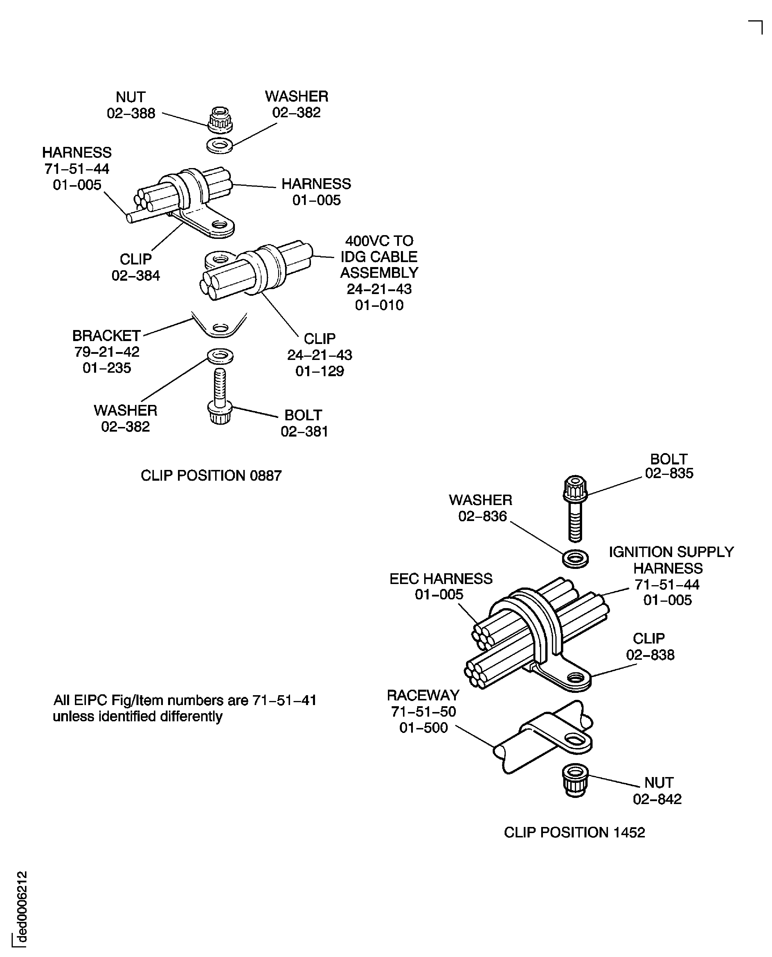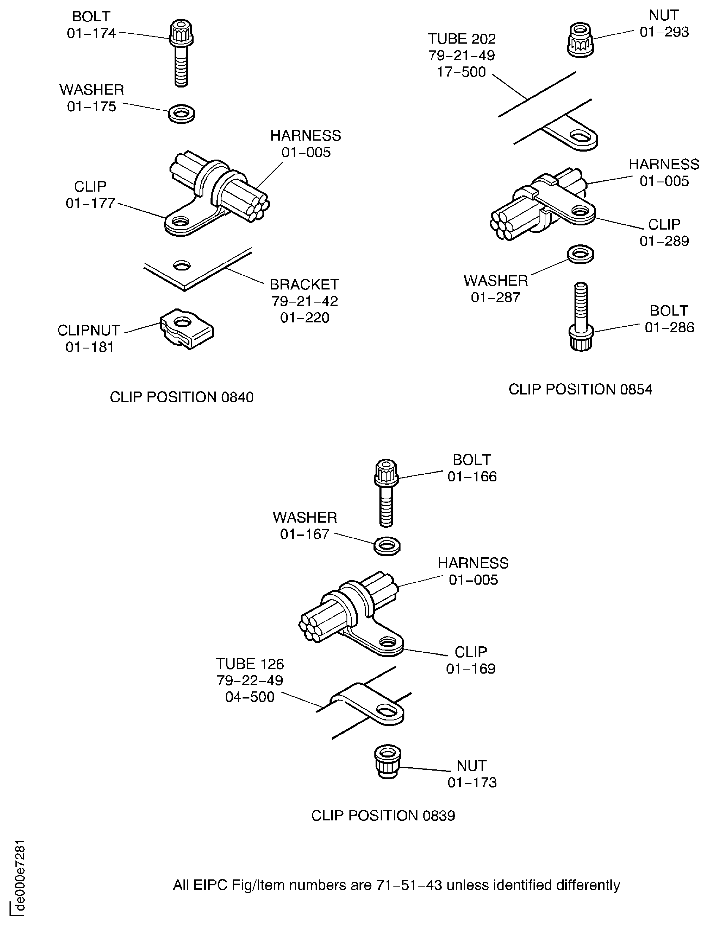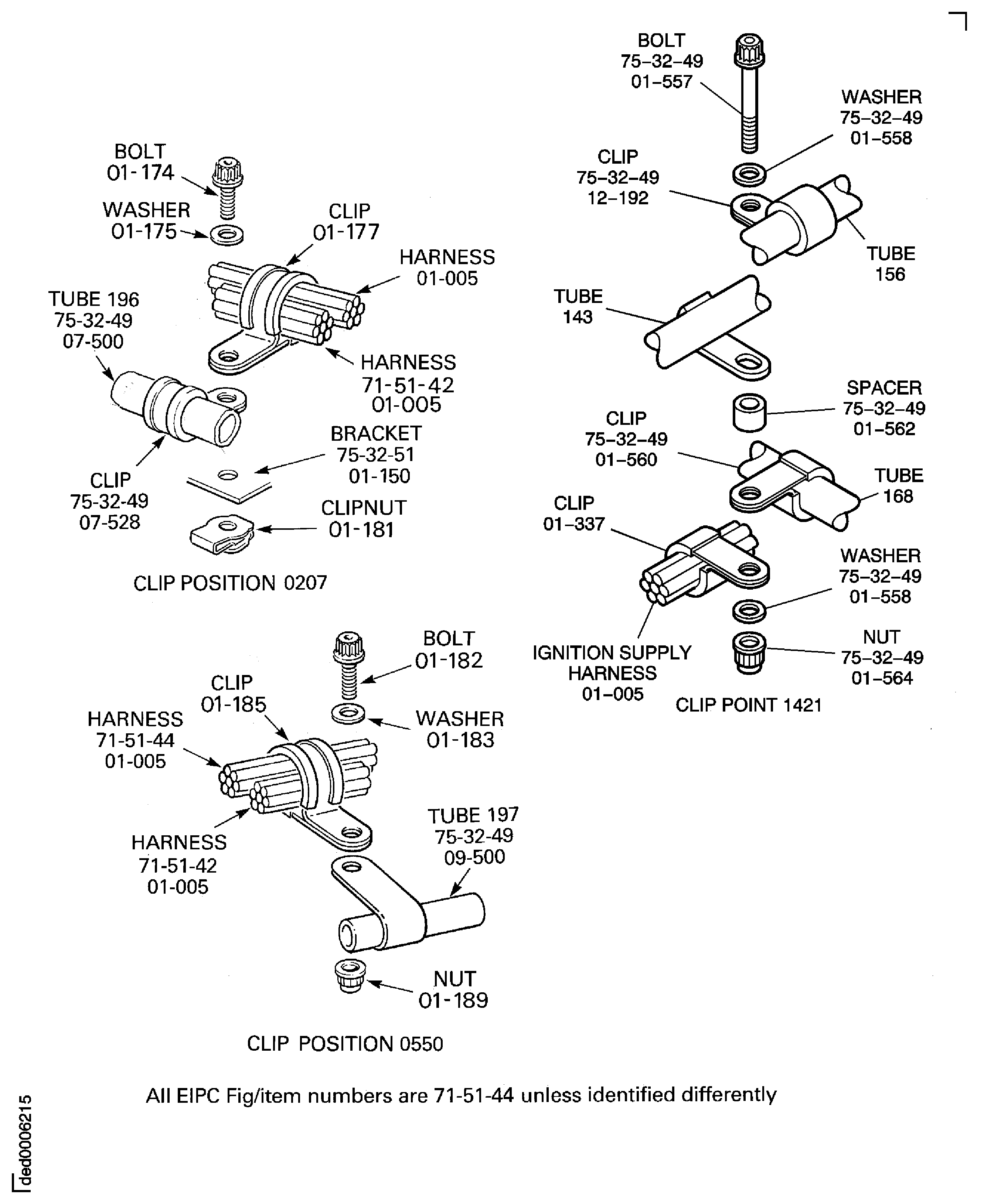 Because of the differences between the harness diameters, the specified clip could be too large or too small. You can use a clip from a range of six clips (that have the same part numbers) refer to the IPC (70-40-10). If the harness diameter is between two of the clips in the range, use the larger clip. When you do this use CoMat 02-148 ADHESIVE TAPE (ELECTRICAL) to increase the harness diameter.