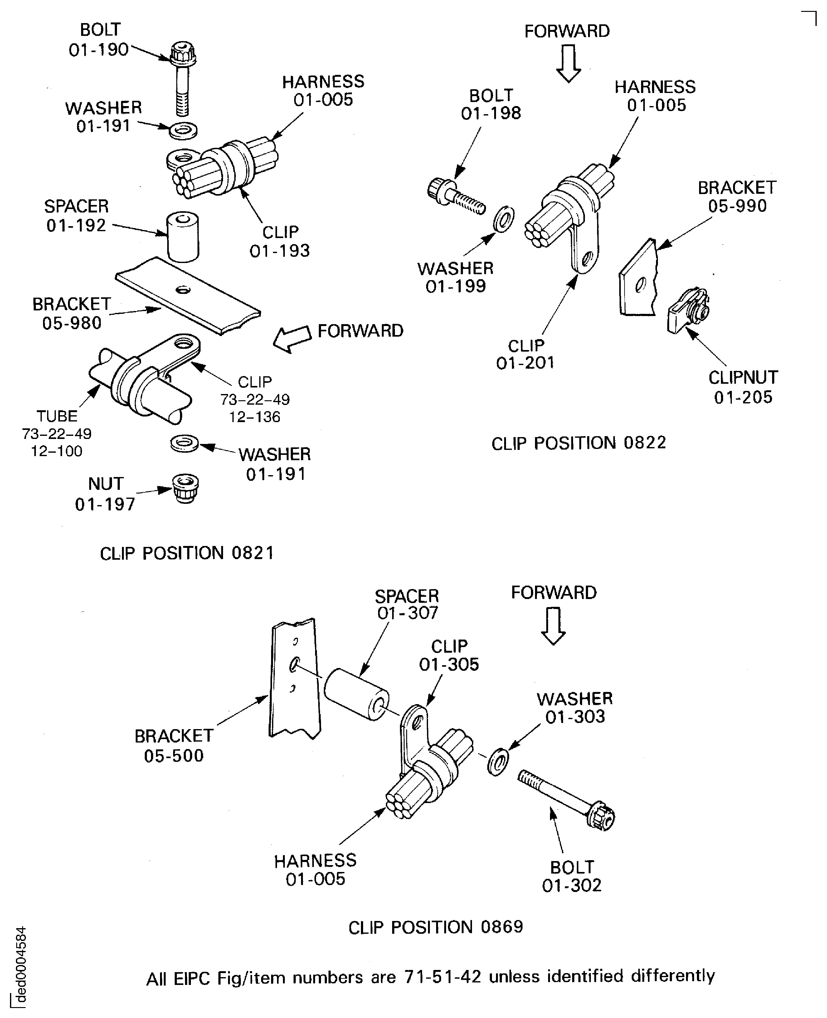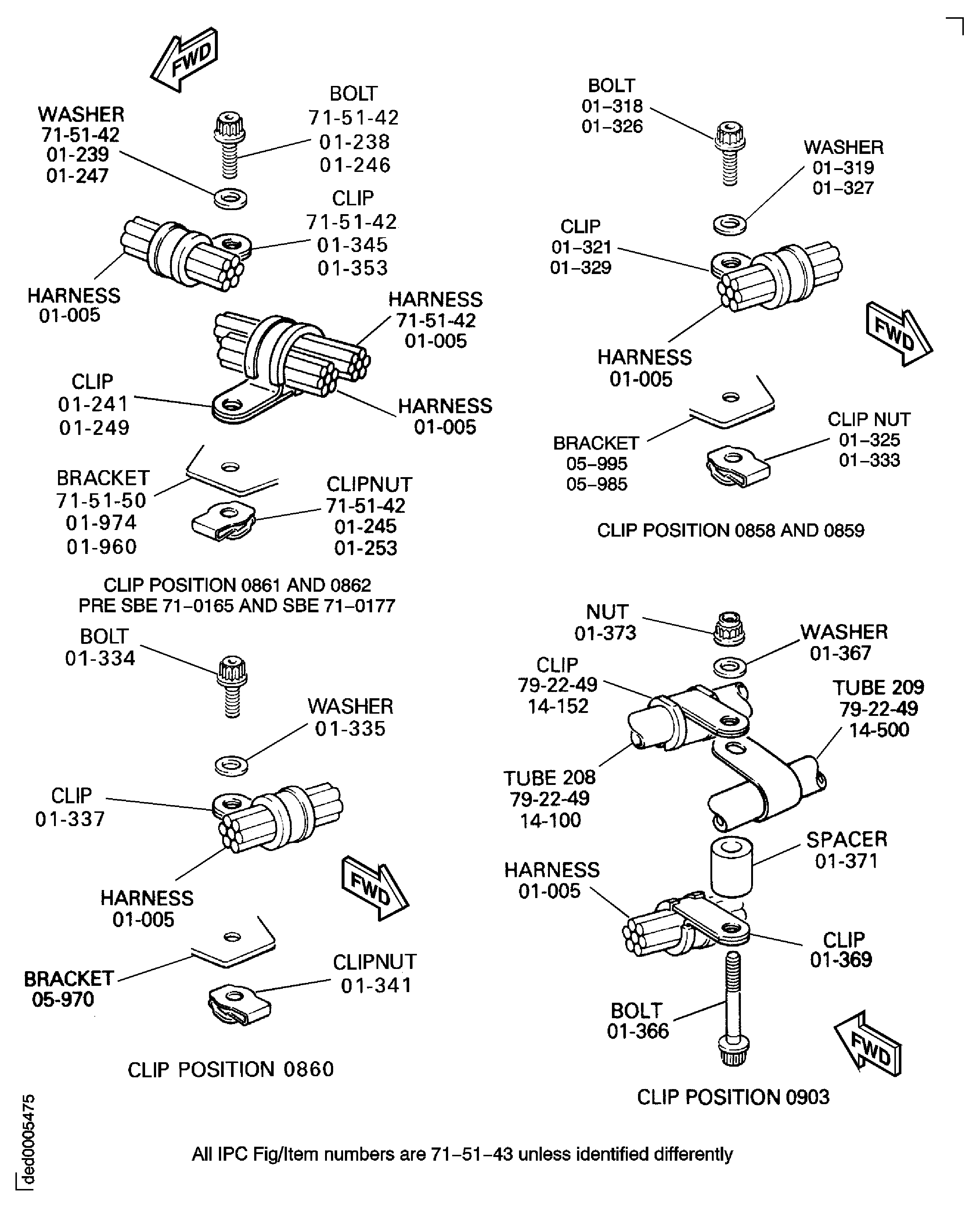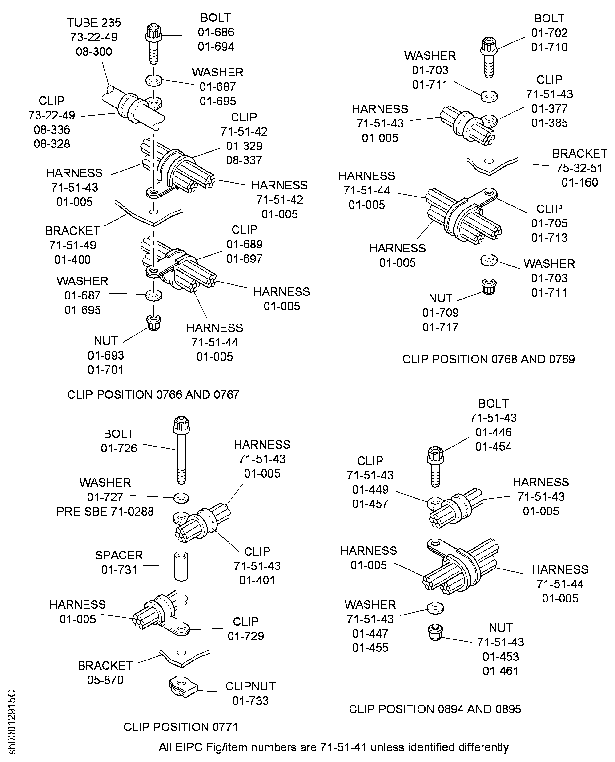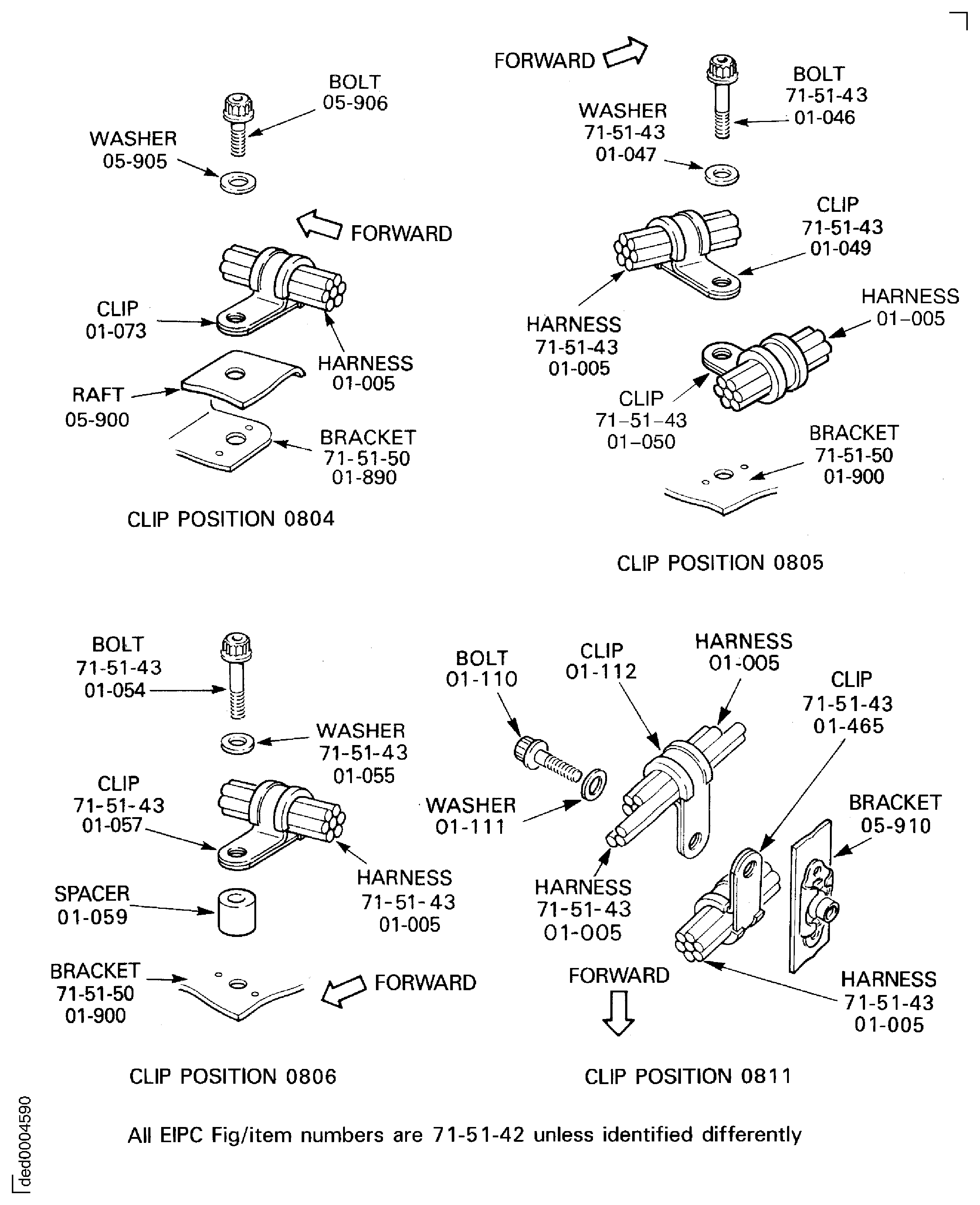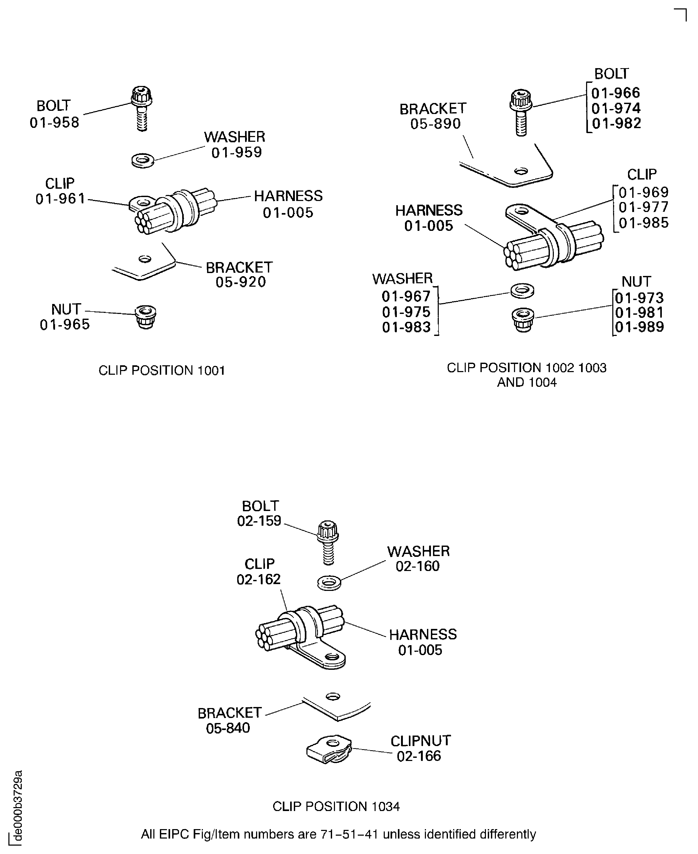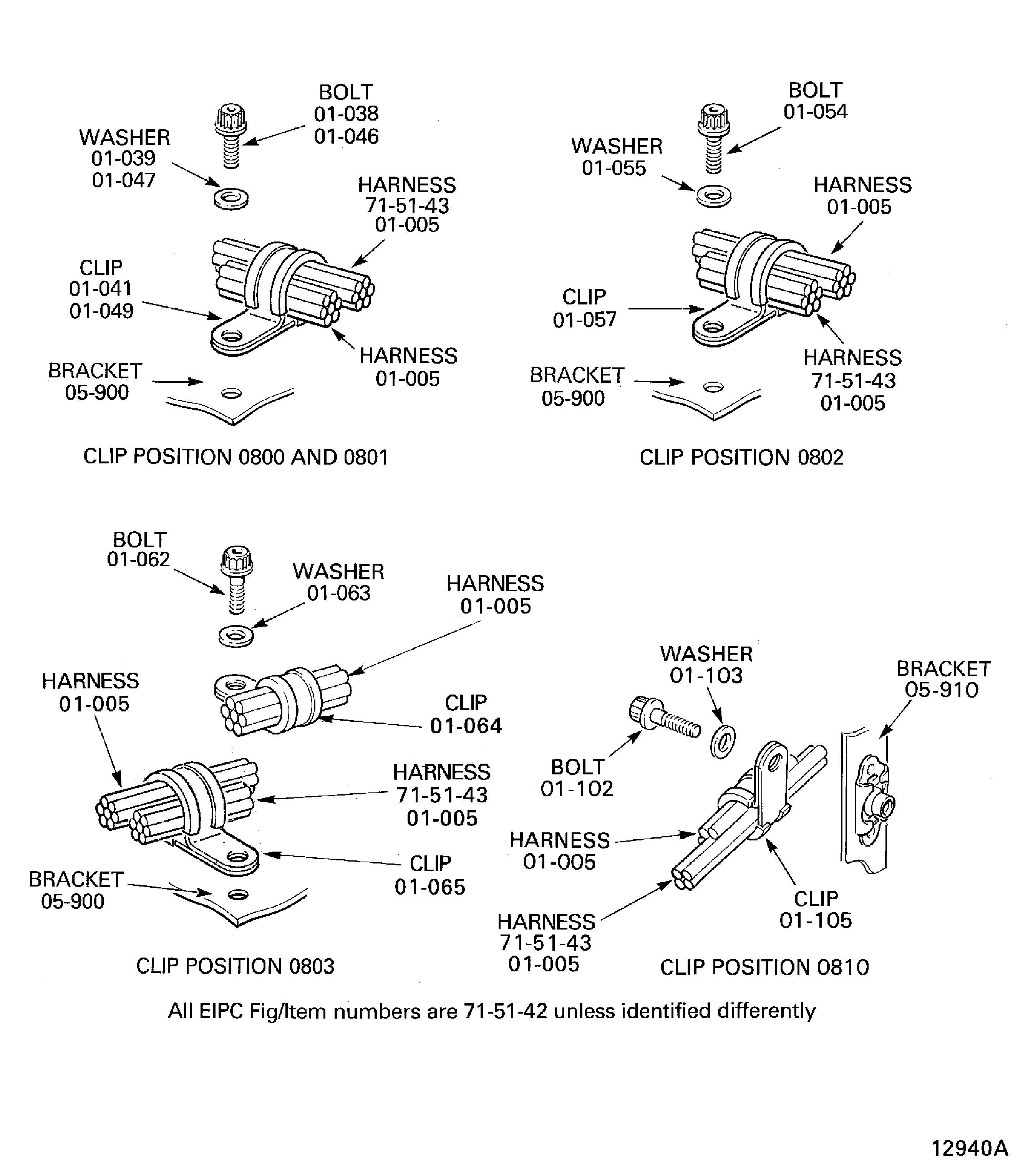 Because of the differences between the harness diameters, the specified clip could be too large or too small. You can use a clip from a range of six clips (that have the same part numbers) refer to the IPC (70-40-10). If the harness diameter is between two of the clips in the range, use the larger clip. When you do this use CoMat 02-148 ADHESIVE TAPE (ELECTRICAL) to increase the harness diameter.