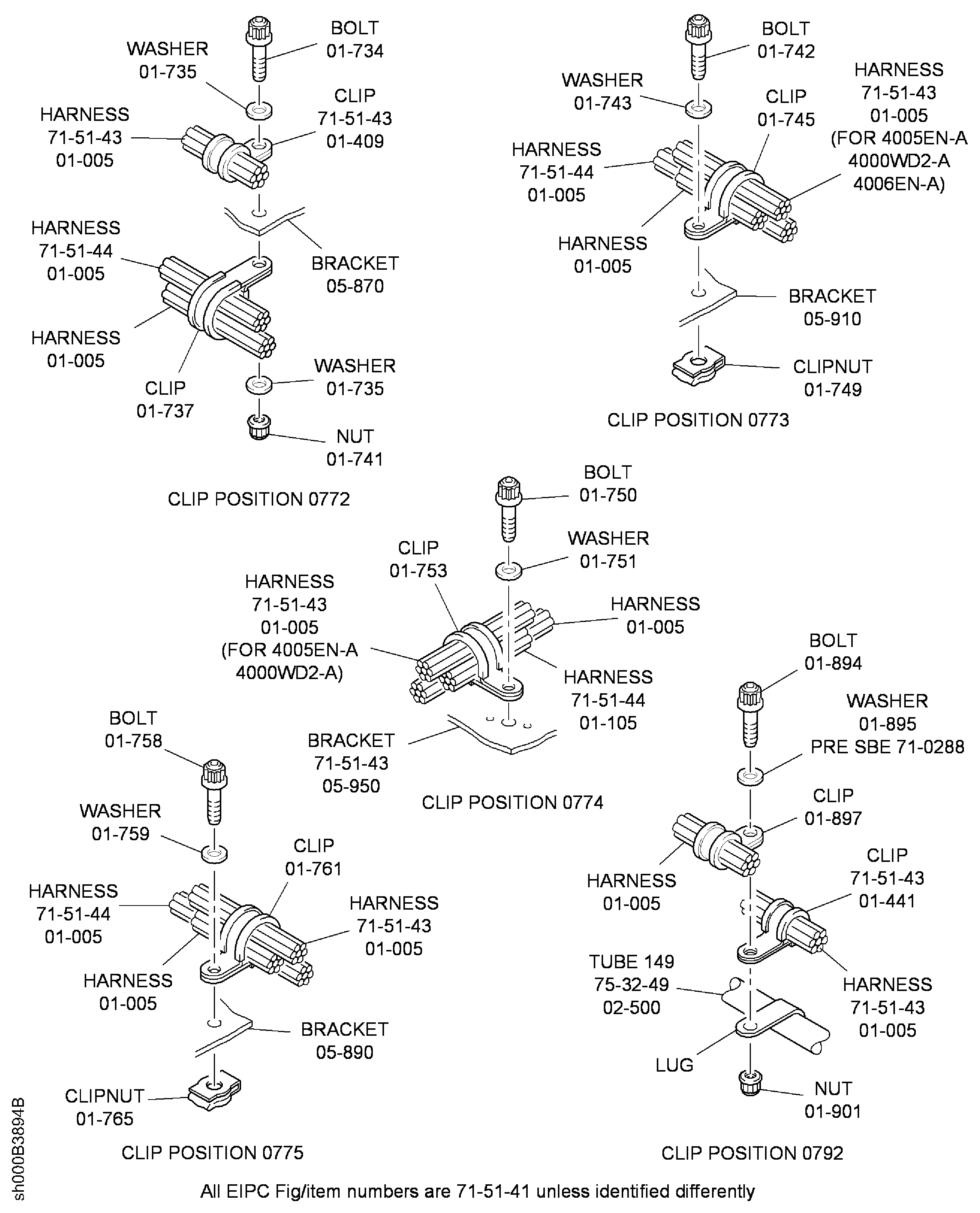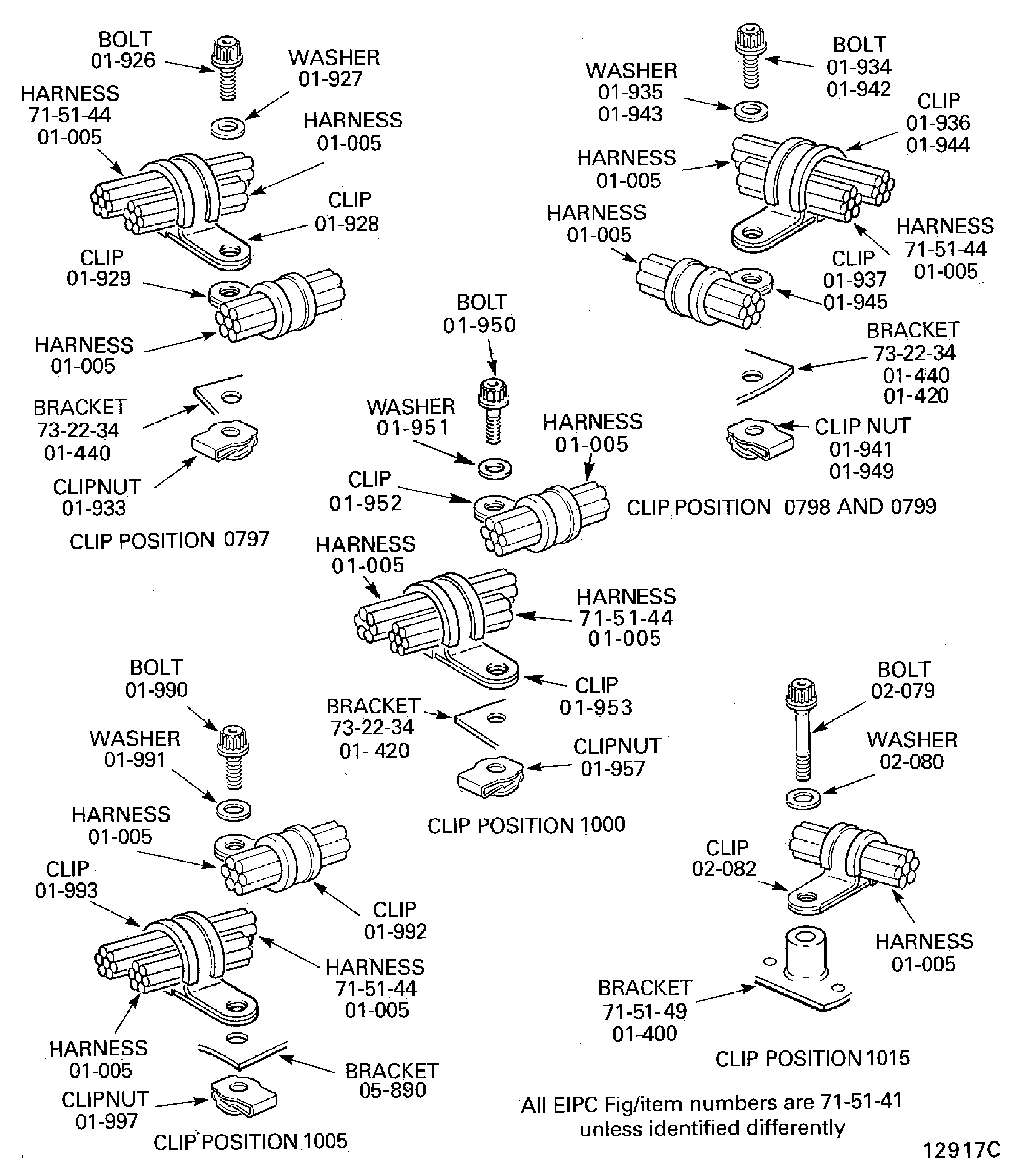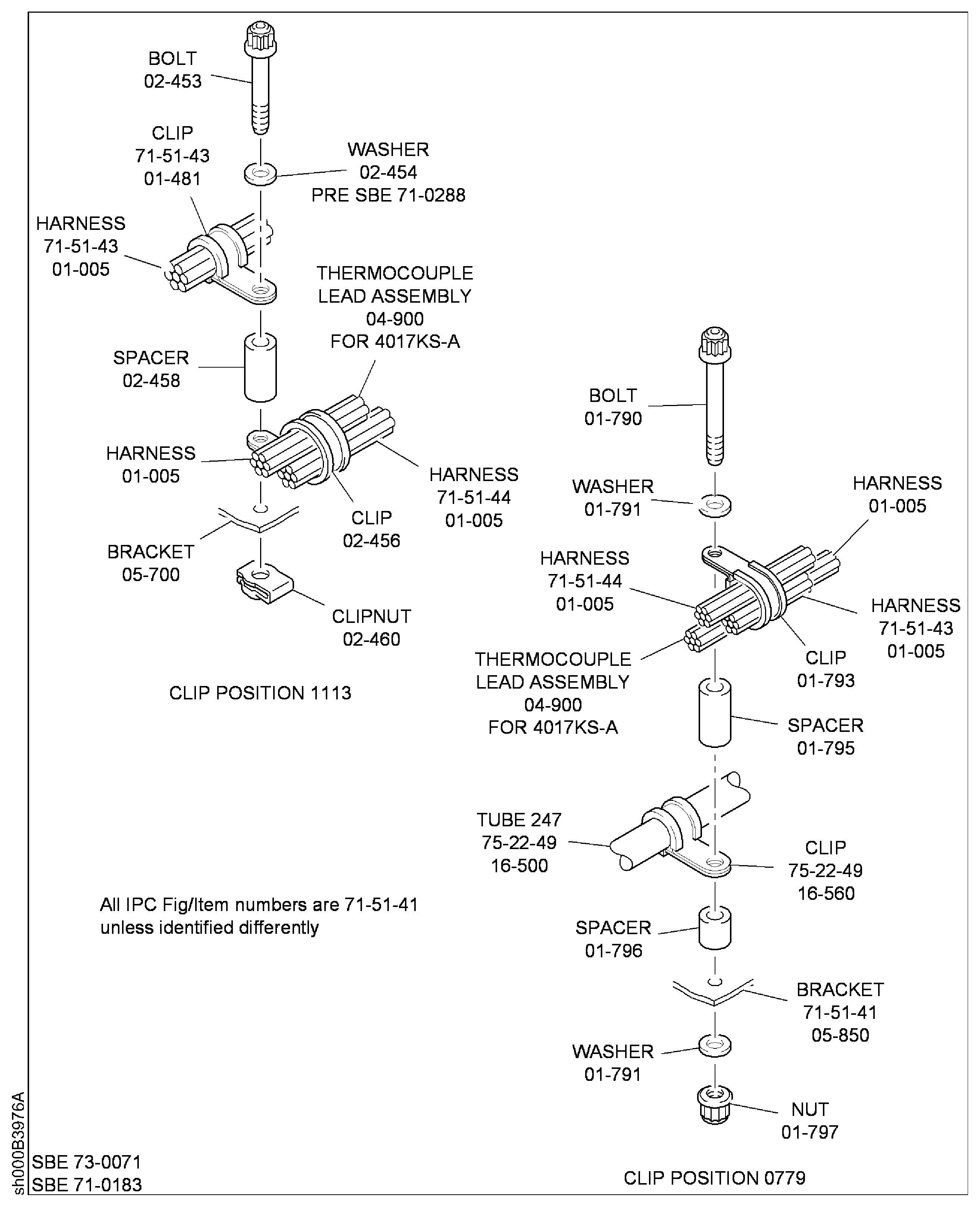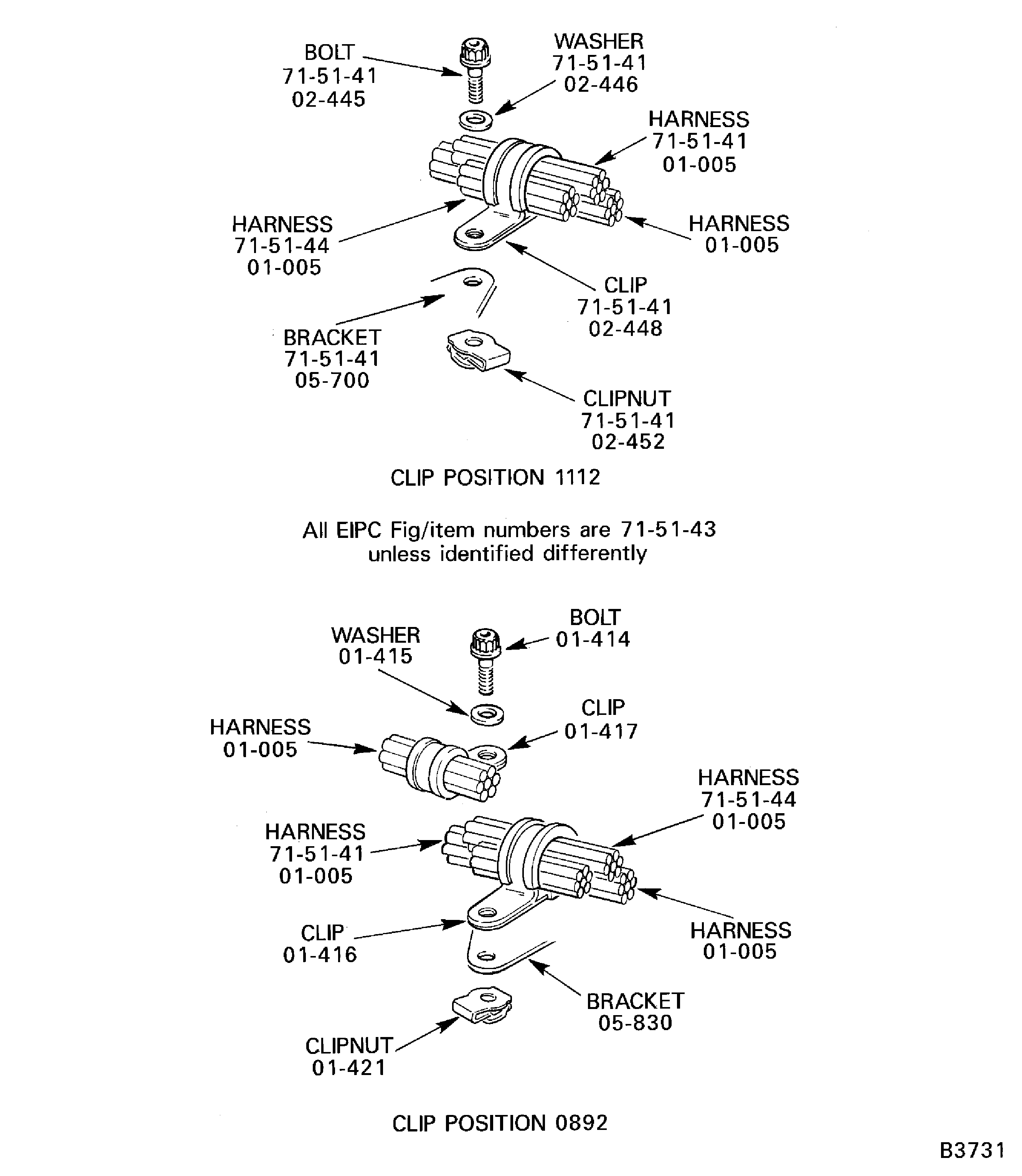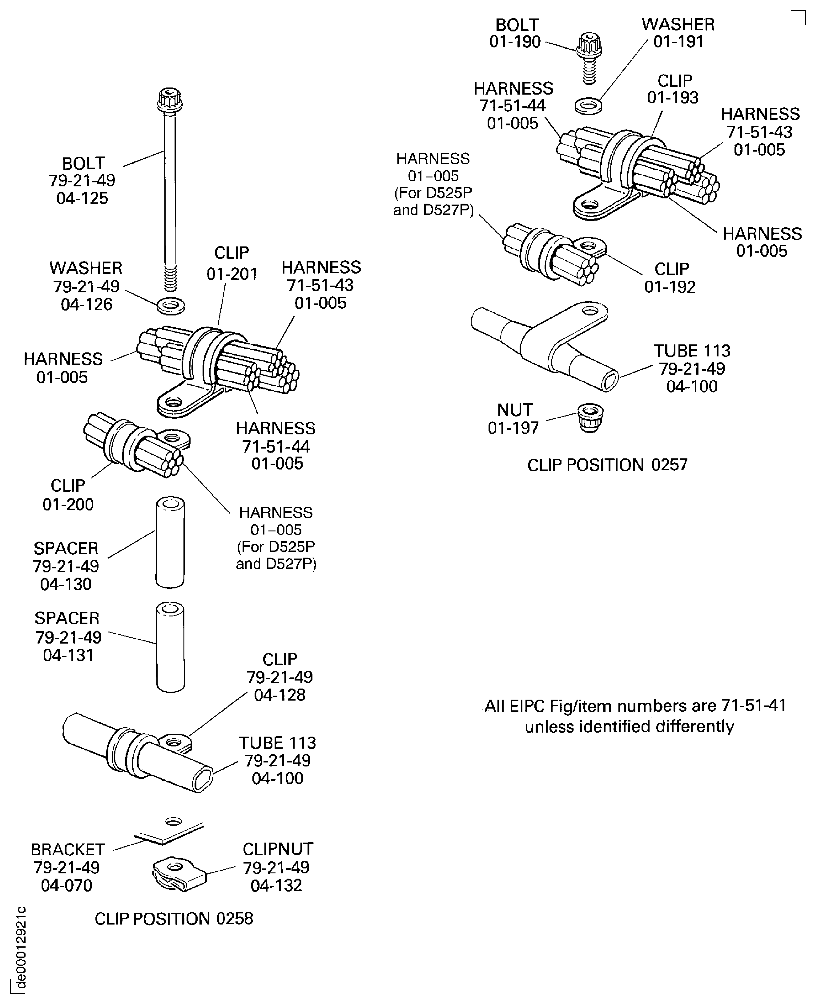 Because of the differences between the harness diameters, the specified clip could be too large or too small. You can use a clip from a range of six clips (that have the same part numbers) refer to the IPC (70-40-10). If the harness diameter is between two of the clips in the range, use the larger clip. When you do this use CoMat 02-148 ADHESIVE TAPE (ELECTRICAL) to increase the harness diameter.